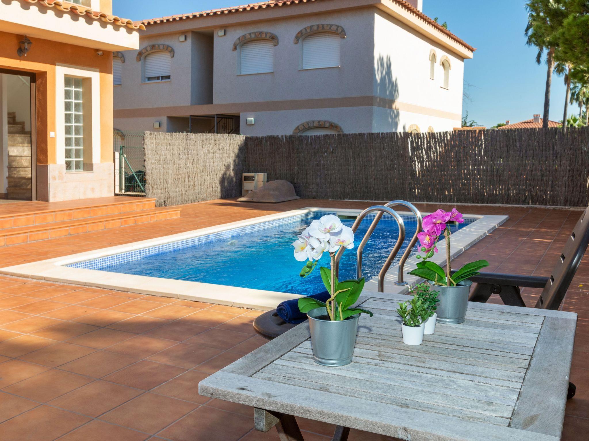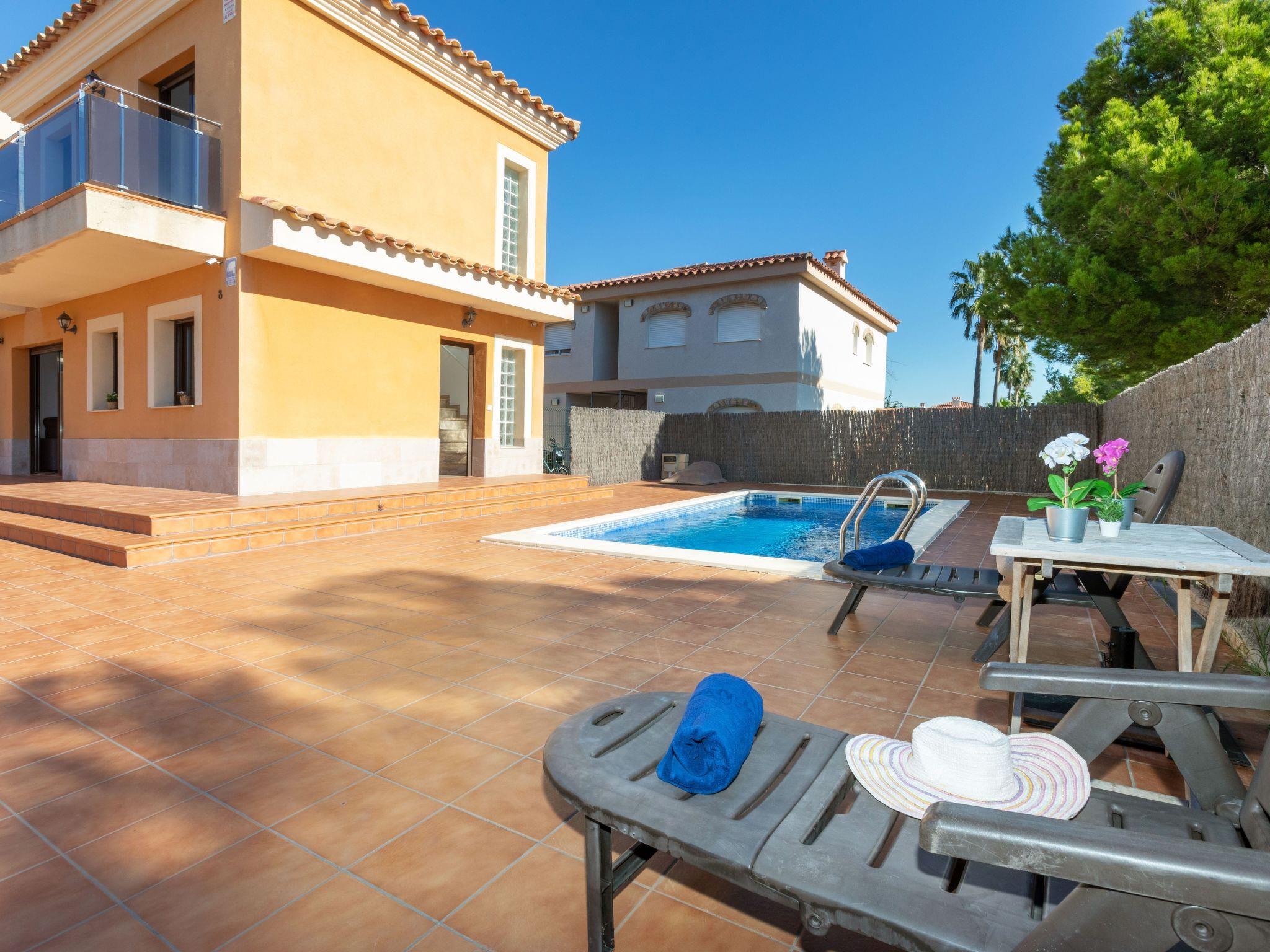 Urb El Casalot: Beautiful, comfortable house "Paloma 2/3", 2 storeys. 3 km from the centre of Miami-Platja, 3.5 km from the sea, 3.5 km from the beach. Private: property (fenced), swimming pool angular (6 x 3 m, depth 80 - 190 cm, seasonal availability: 01.Jun. - 01.Oct.). Terrace, garden furniture, barbecue, pool maintenance by the owner/gardener. In the house: WiFi, air conditioning, washing machine. Single garage. Grocery 150 m, supermarket 1.5 km, restaurant, bar 150 m, bus stop 2.7 km, railway station "Hospitalet Infant" 5 km. Nearby attractions: Parque Portaventura 28 km, parque acuático Aquopolis 31 km, parque Natural del Delta del Ebro 53 km, Tarragona 37 km, Reus 30 km, Barcelona 132 km. Please note: car recommended. The owner does not accept any youth groups.