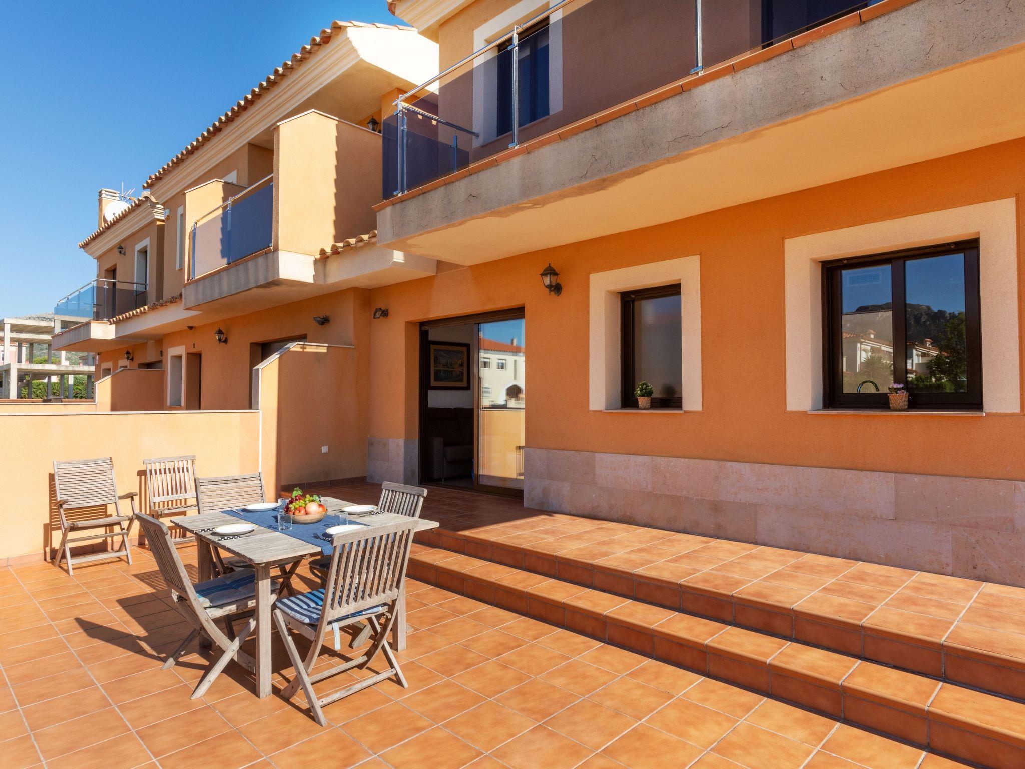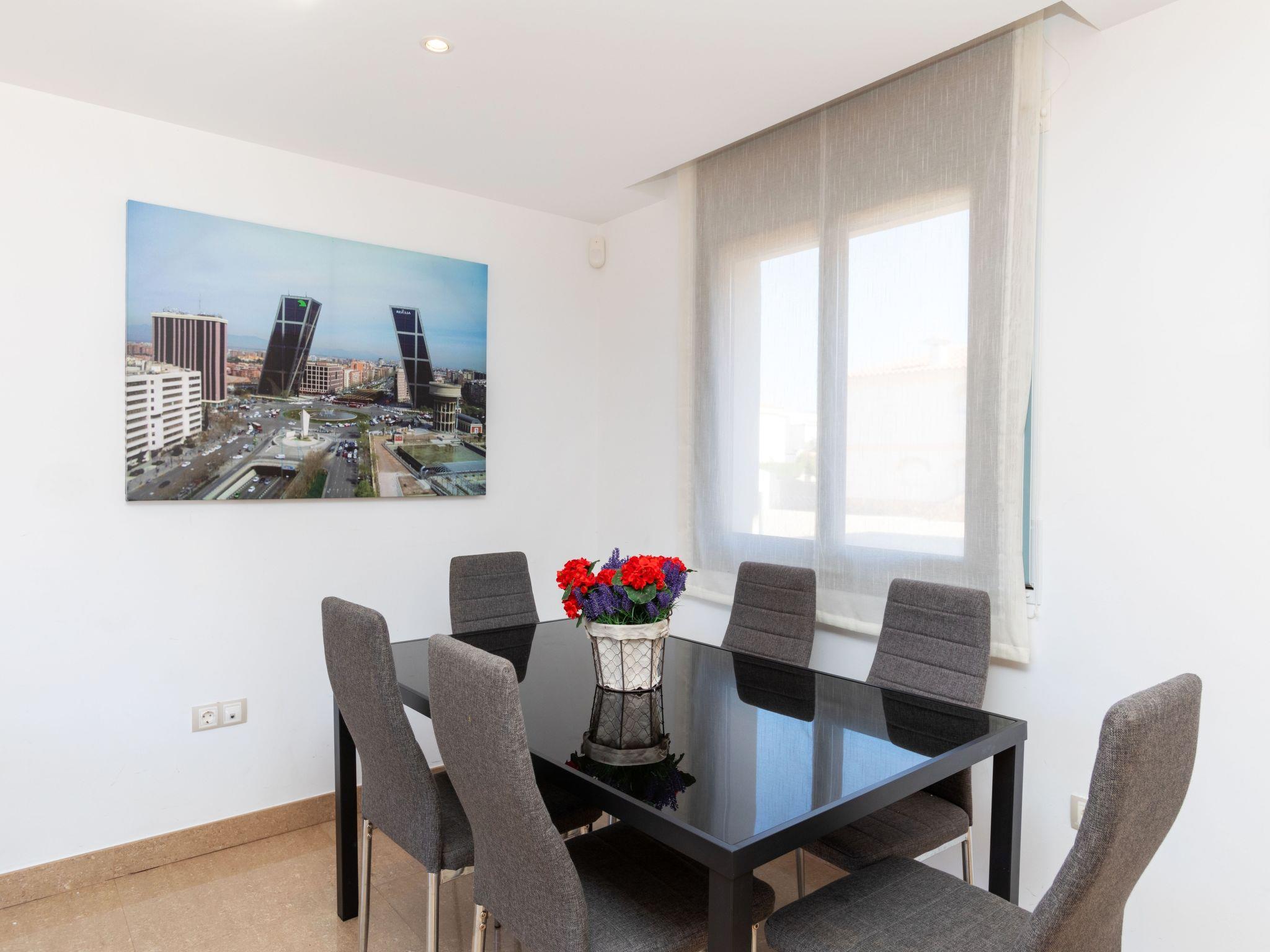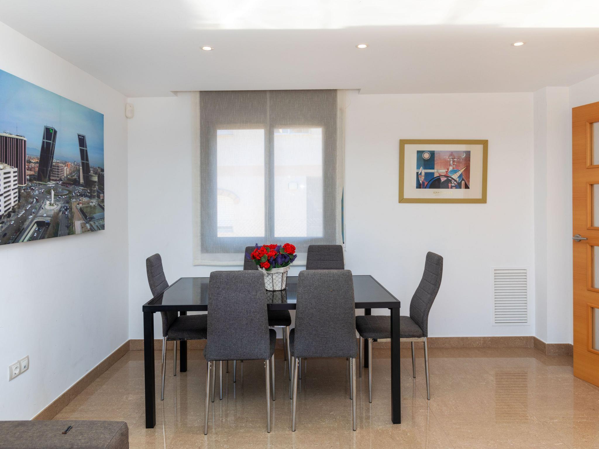 "Paloma 2/3", 6-room terraced house 240 m2 on 2 levels. Entrance hall with air conditioning. Living/dining room with 2 sofabeds (135 cm), dining table, satellite TV, digital TV and air conditioning. 2 rooms, each room with 1 french bed (135 cm), air conditioning. 2 rooms, each room with 2 beds (90 cm), air conditioning. Kitchen (oven, dishwasher, 4 ceramic glass hob hotplates, toaster, kettle, microwave, electric coffee machine) with air conditioning. 2 showers/bidet/WC, 2 sep. WC's. Air-conditioning. No heating option. Terrace. Terrace furniture, barbecue. Facilities: washing machine, iron, hair dryer. Internet (WiFi, free). Garage. Suitable for families. No internal connecting door between the separated properties. Property divided in 2 houses which are not connected from inside. Access and private terrace for each house. Each house with: 3 properties 120 m2 on 2 floors. Comfortable and nice furniture: living-dining room with 1 double sofá-bed, dining table and satellite TV. Exit terrace. Kitchen (oven, dishwasher, 4 vitroceramic hot plates, microwave, electric coffee maker). Separate WC. Upstairs: 1 bedroom with 1 double bed (150 cm). Exit balcony. 1 bedroom with 1 hideaway bed (2x90 cm). Shower/bidet/WC. HUTT-3692015 // Reg. Nr.: ESFCTU0000430320002770710000000000000000HUTT-36920158
