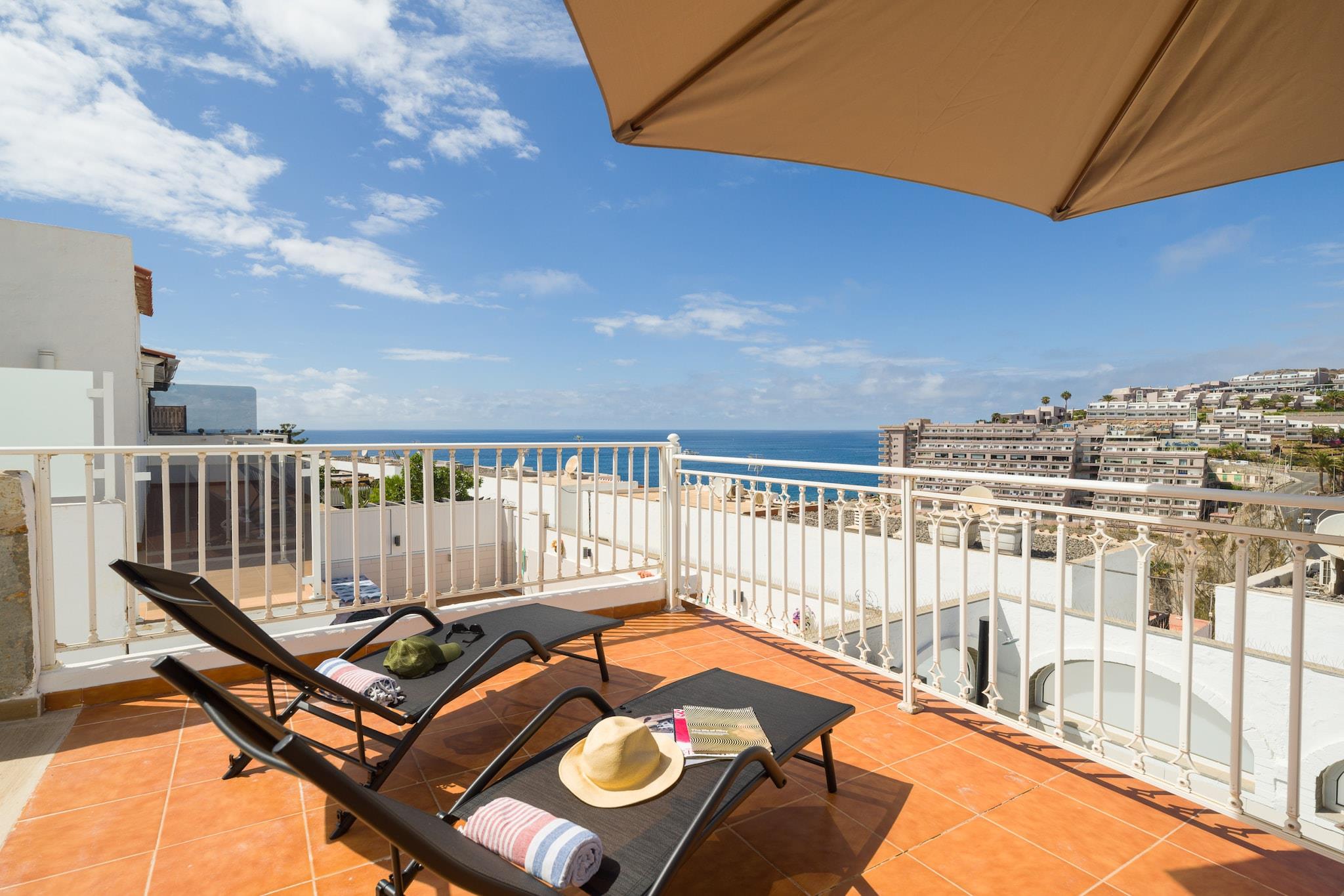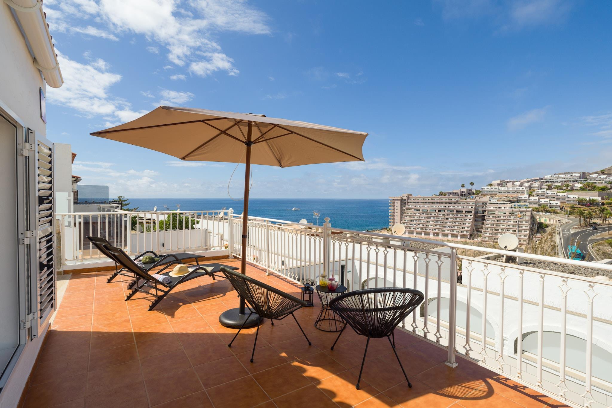 Velkommen til ditt drømmetilfluktssted, hvor fantastiske solnedganger lyser opp en fantastisk beliggenhet ved stranden! Denne eksepsjonelle innkvarteringen ligger i et moderne boligkompleks bare noen skritt fra Anfi del Mar, og har ikke bare to felles bassenger, men også de uberørte sandstrendene bare noen minutter unna. Med to romslige terrasser, inkludert en herlig grillplass for uteservering, er det det perfekte stedet å slikke sol, nyte morgenkaffen eller dele latter under stjernene. Når du går inn, vil du bli møtt av en harmonisk blanding av middelhavssjarm og moderne komfort. Varme toner og sjarmerende tre- og keramiske detaljer skaper en rolig kystatmosfære i hele rommet. Hovedetasjen er designet for avslapning og underholdning, med et fullt utstyrt kjøkken med moderne apparater, inkludert en oppvaskmaskin for uanstrengt, utstyrt og utstyrt stue med luft5”. TV som tilbyr internasjonal programmering, pluss en sovesofa for ekstra gjester. Den romslige terrassen inviterer deg til å samles rundt spisebordet for seks og nyte rolige stunder i chill-out-området. Bare 600 meter unna venter livlige restauranter, supermarkeder og lokale attraksjoner på deg. Nyt ubegrenset høyhastighets Wi-Fi (300 Mbps), ukentlig rengjøring for lengre opphold og gratis fasiliteter som barneseng og barnestol for små på forespørsel. Vennligst respekter boligmiljøet vårt og overhold bestemte stille timer for å sikre en fredelig opplevelse for alle.