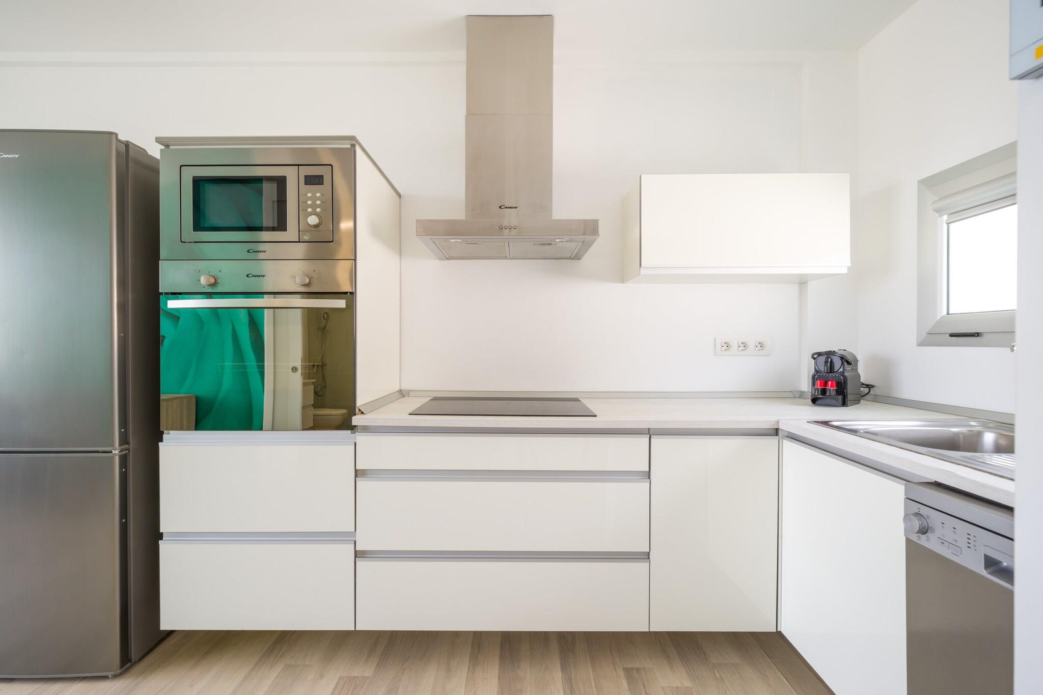 I 4. etasje: (Stue(TV(flatskjerm, Smart-TV), spisebord, sittehjørne, radio), åpent kjøkken(vannkoker, brødrister, kaffetrakter, stekovn, mikrobølgeovn, oppvaskmaskin, kjøleskap med fryser, elektriske kokeplater, ), soveværelse(enkeltseng, enkeltseng), soveværelse(dobbeltseng), bad(dusj, Hårtørker)) , Internett-tilgang, solarium, vaskemaskin, terrasse, parkering, svømmebasseng(deles med andre gjester), strykejern, ,