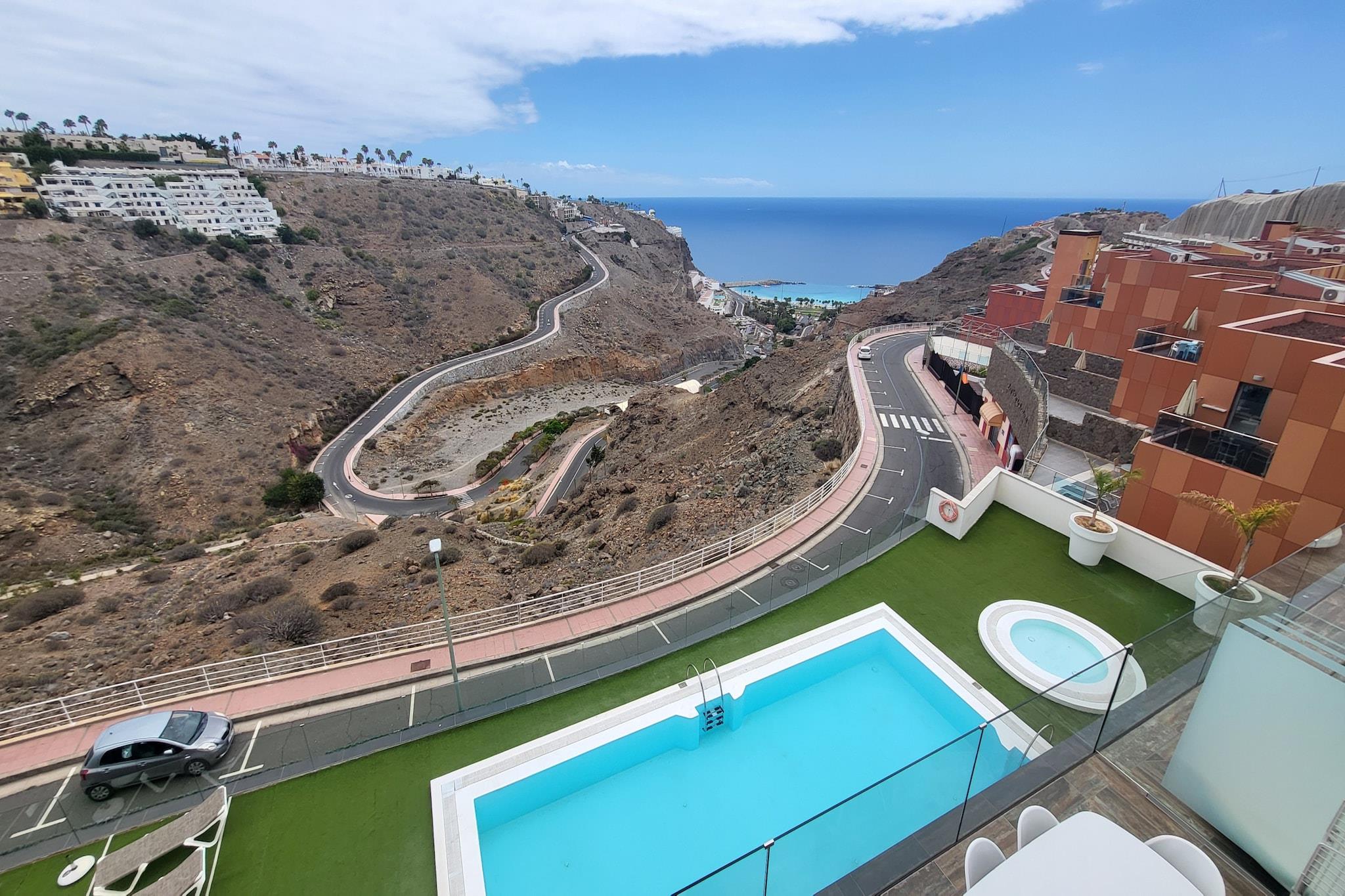 Oppdag dette lyse og stilige 2-roms huset i Mogán, perfekt for opptil 4 gjester. Dette huset på 42 m² ligger kun 1 km fra den gylne sanden i Playa de Amadores, og kombinerer komfort og naturlig skjønnhet med både hav- og fjellutsikt. Enten du planlegger en familieferie eller en fredelig ferie, er omgivelsene ideelle – nær butikker, restauranter og lokale attraksjoner. Boligen har en romslig terrasse på 11 m², ideell for å slikke sol eller nyte et måltid utendørs. Innvendig finner du et velutstyrt kjøkken med moderne hvitevarer, en koselig stue, klimaanlegg og Wi-Fi. Gjestene har også tilgang til et felles svømmebasseng og privat dekket parkering i samme bygning. Med lett tilgang til lokale strender, Amadores Fun Park, golfbaner og sjarmerende landsbyer som Pueblo de Mogán, er dette en perfekt base for å utforske den sørlige delen av Gran Canaria.