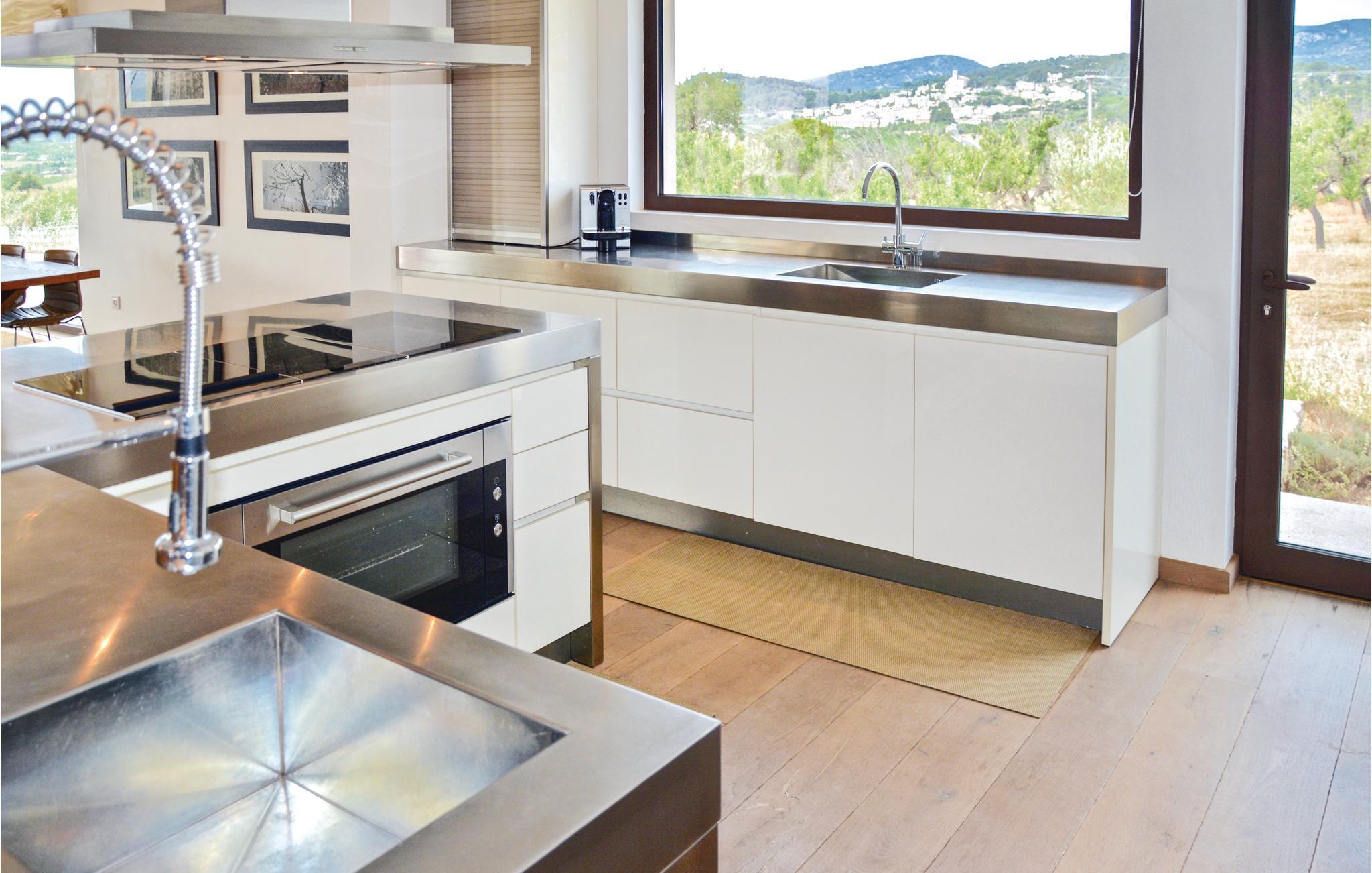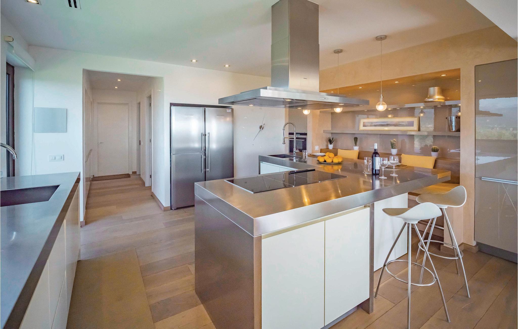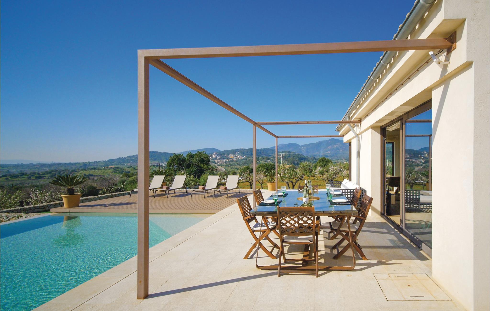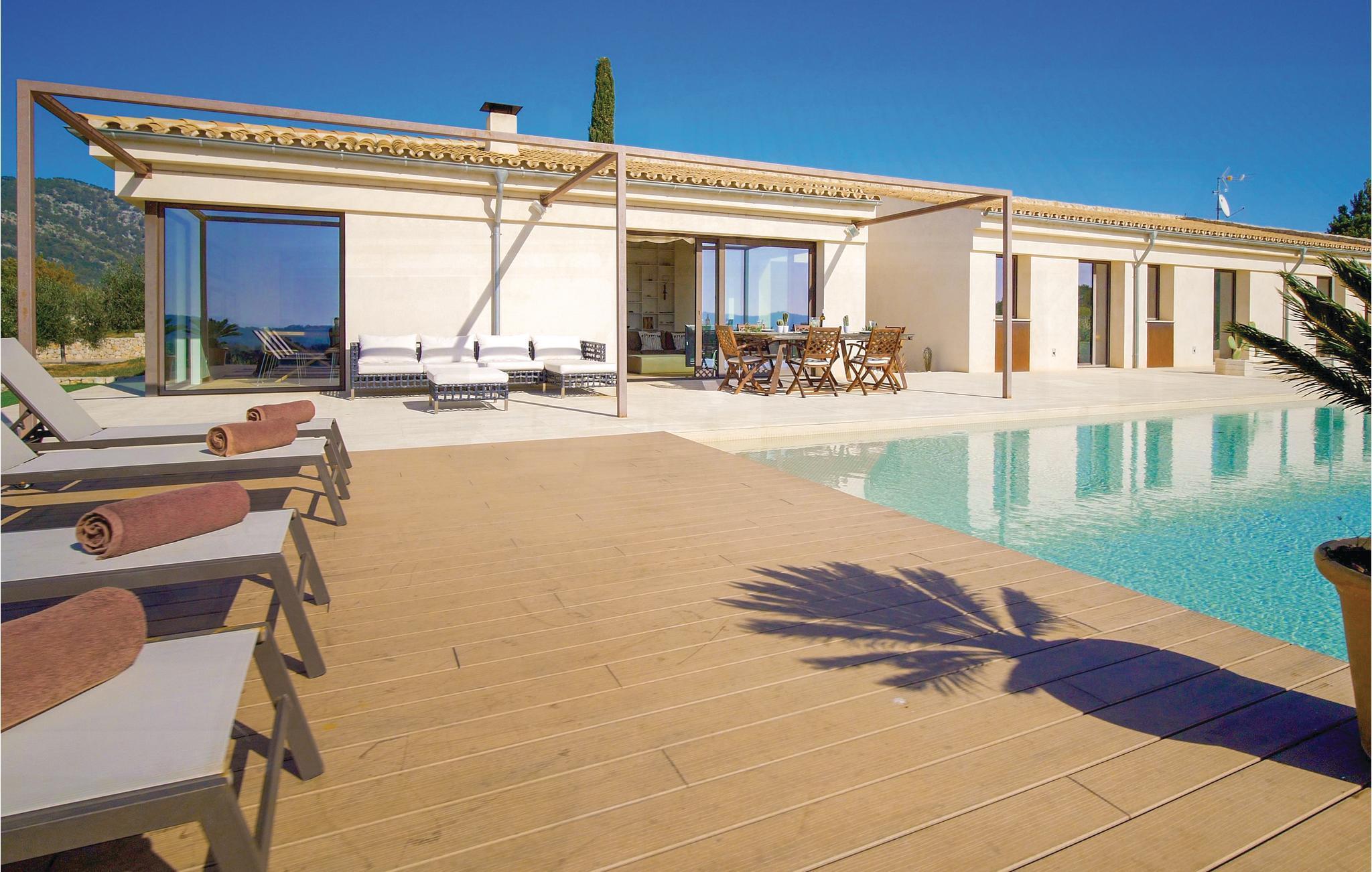 Denne frittliggende luksusvillaen med evighetsbasseng ligger glamorøst til midt i et fortryllende landskap. Huset er romslig, gjennomstrømmet av lys, innredet med høy standard og svært smakfullt. Det ultramoderne kjøkkenet med et stort panoramavindu og det vakre bassenget vil glede deg. De forskjellige terrassene inviterer deg til å spise ute og slappe av. Her kan du koble av fra hverdagen og nyte naturen. Lytt til fuglesangen, sauebjellene og bare len deg tilbake og slapp av i en solstol. Et lite utvalg av treningsutstyr er også tilgjengelig. Den populære, svakt skrånende sandstranden Port dAlcúdia ligger bare ca. 20 minutter unna med bil, og den er også ideell for små barn, siden den er veldig trygg. Byen Inca ligger også bare en kort kjøretur unna. Her finner du øyas største ukemarked samt et stort utvalg av restauranter og kafeer. Du kan spise i en typisk celler, en original, kunstnerisk hvelvet vinkjeller laget av naturstein. På grunn av beliggenheten ved foten av Tramuntana-fjellene er dette området også et ideelt utgangspunkt for syklister og fotturister. Spesielt i februar og mars fortryller dette området Mallorca-besøkende med sine tusenvis av blomstrende mandeltrær. Den attraktive hovedstaden Palma er populær for sine gode restauranter, kulturelle severdigheter og shoppingturer. Bare de mer enn 300 skobutikkene er uimotståelige for damene. Grupper (unntatt familier og par over 30 år) på forespørsel og med spesielt depositum. Lisensnummer: L1262937