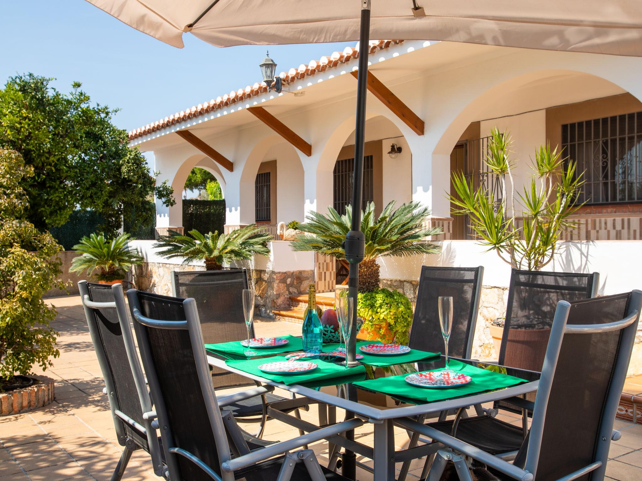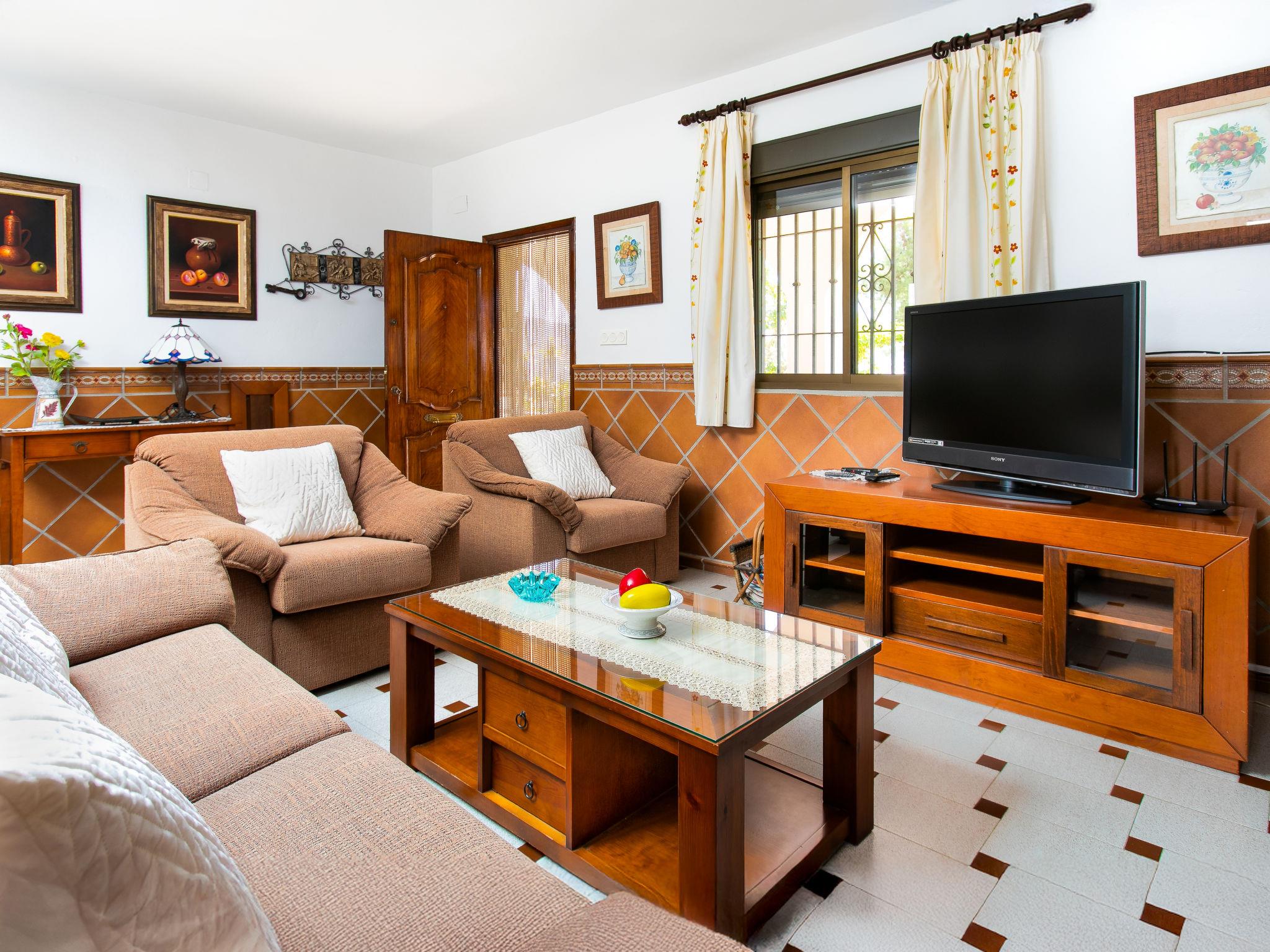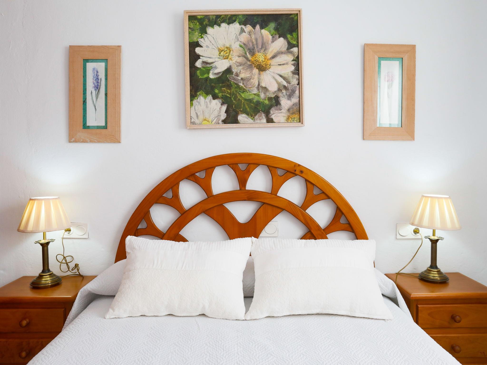"El Pino", 4-room house 130 m2. Cosy furnishings: living/dining room with open-hearth fireplace, dining table, satellite TV and electric heater. Exit to the terrace. 1 room with 1 french bed (135 cm, length 190 cm), air conditioning and forced-air heating. 1 room with 1 bed (90 cm, length 190 cm), fan. 1 room with 1 bed (135 cm, length 190 cm), fan. Kitchen (oven, 4 ceramic glass hob hotplates, toaster, kettle, microwave, freezer, electric coffee machine). Shower/WC. 2 terraces partly covered. Terrace furniture, barbecue, deck chairs (4), box-room. View of the sea and the mountains. Facilities: washing machine, iron, mosquito net, children's high chair, baby cot for up to 2 year olds, hair dryer. Internet (WiFi, free). Please note: maximum 1 pet/ dog allowed. Smoke alarm, fire extinguisher. VTAR/GR/016605 // Reg. Nr.: ESFCTU00001802500016476000000000000000VTRA/GR016605