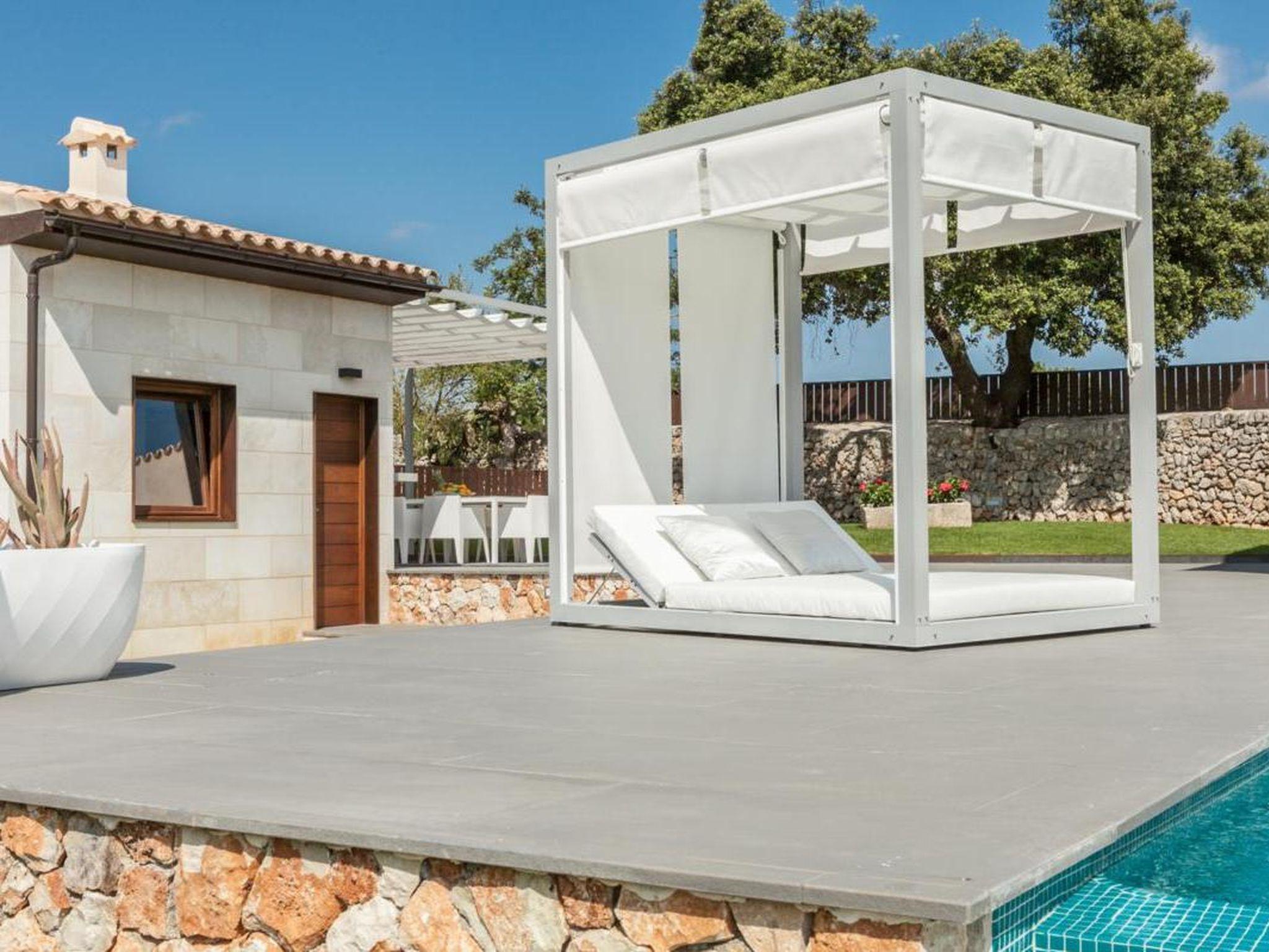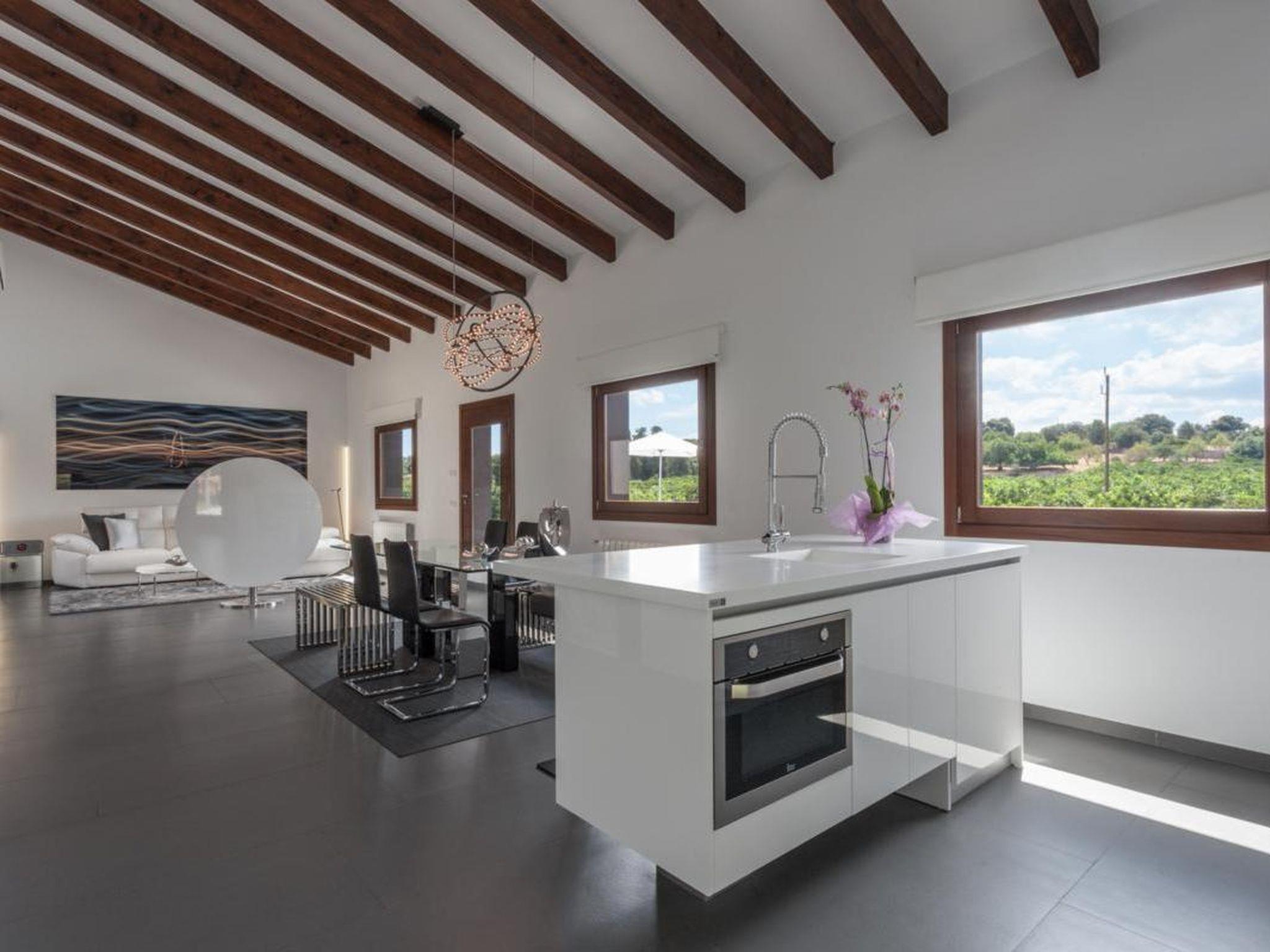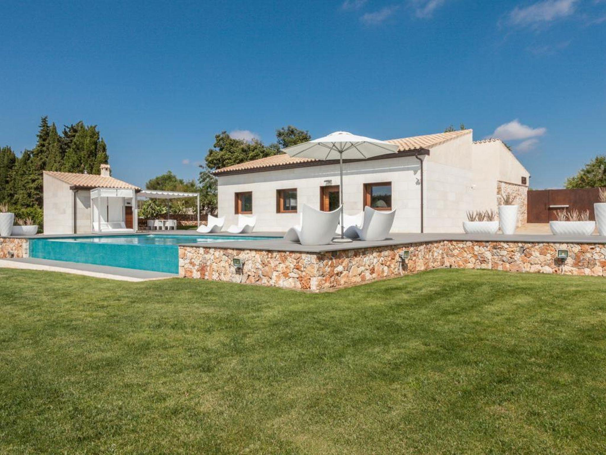 Muro 6 km from Can Picafort: Child friendly, modern, comfortable house "Calet", built in 2014. In the resort Muro, 12 km from the sea, 12 km from the beach. Private: large garden, lawn for sunbathing, swimming pool angular (10 x 5 m, seasonal availability: 01.Mar. - 31.Oct.). Outdoor shower, pergola, garden furniture. In the house: internet access, WiFi, central heating system, air conditioning, washing machine. Parking on the premises. Shop 4 km, grocery 4 km, supermarket 4 km, restaurant 4 km, bus stop "Muro" 800 m, railway station "Muro" 2 km, sandy beach "Playa de Muro" 12 km. Please note: car recommended. Suitable for families, suitable for seniors baby equipment on request (included). Object suitable for 7 adults. The owner does not accept any youth groups. Loading and unloading of baggage is possible at the holiday house. Airfield 45 km from the property. Neighbourhood highly sensitive to noise. Quietness and good behaviour expected.