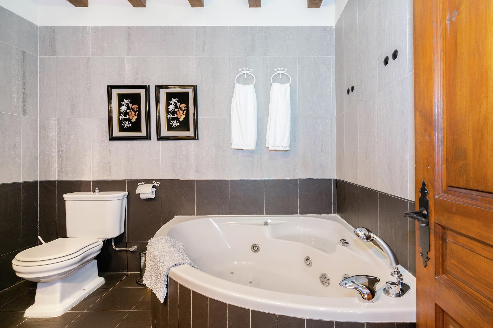 Denne sjarmerende hytta i Navas de Estena, som ligger i den fredelige Cabañeros nasjonalpark, tilbyr et rolig tilfluktssted for familier eller grupper, med plass til opptil 8 gjester. Med 4 koselige soverom, er huset barnevennlig og tilbyr moderne bekvemmeligheter som oppvarming, klimaanlegg og stue med peis. Gjestene kan slappe av med det private svømmebassenget og boblebadet, eller nyte en grillfest på terrassen. For moro og lek er det en bordtennis- og boulebane tilgjengelig. Naturentusiaster vil elske de fantastiske omgivelsene i Cabañeros nasjonalpark, som tilbyr mange muligheter for fotturer og dyreliv. Huset ligger bare 1 km fra naturskjønne skogsstier, og de historiske byene Toledo (75 km) og Madrid (150 km) er lett tilgjengelige. Toledo, som står på UNESCOs verdensarvliste, er kjent for sin rike historie, mens den pulserende kulturen i Madrid ligger bare en kort kjøretur unna. Lokale restauranter og supermarkeder ligger innen gangavstand. Eiendommen er utstyrt med alle essensielle fasiliteter, inkludert et fullt utstyrt kjøkken og barnevennlig ekstrautstyr som barneseng og barnestol. For enkelhets skyld ligger helsesenteret kun 12 km unna, og det er kart og instruksjoner for husets hvitevarer på hvert rom. Vær oppmerksom på at det ikke er noen kortleser eller minibank innen 25 kilometer, så sørg for å ta med nok kontanter for oppholdet.