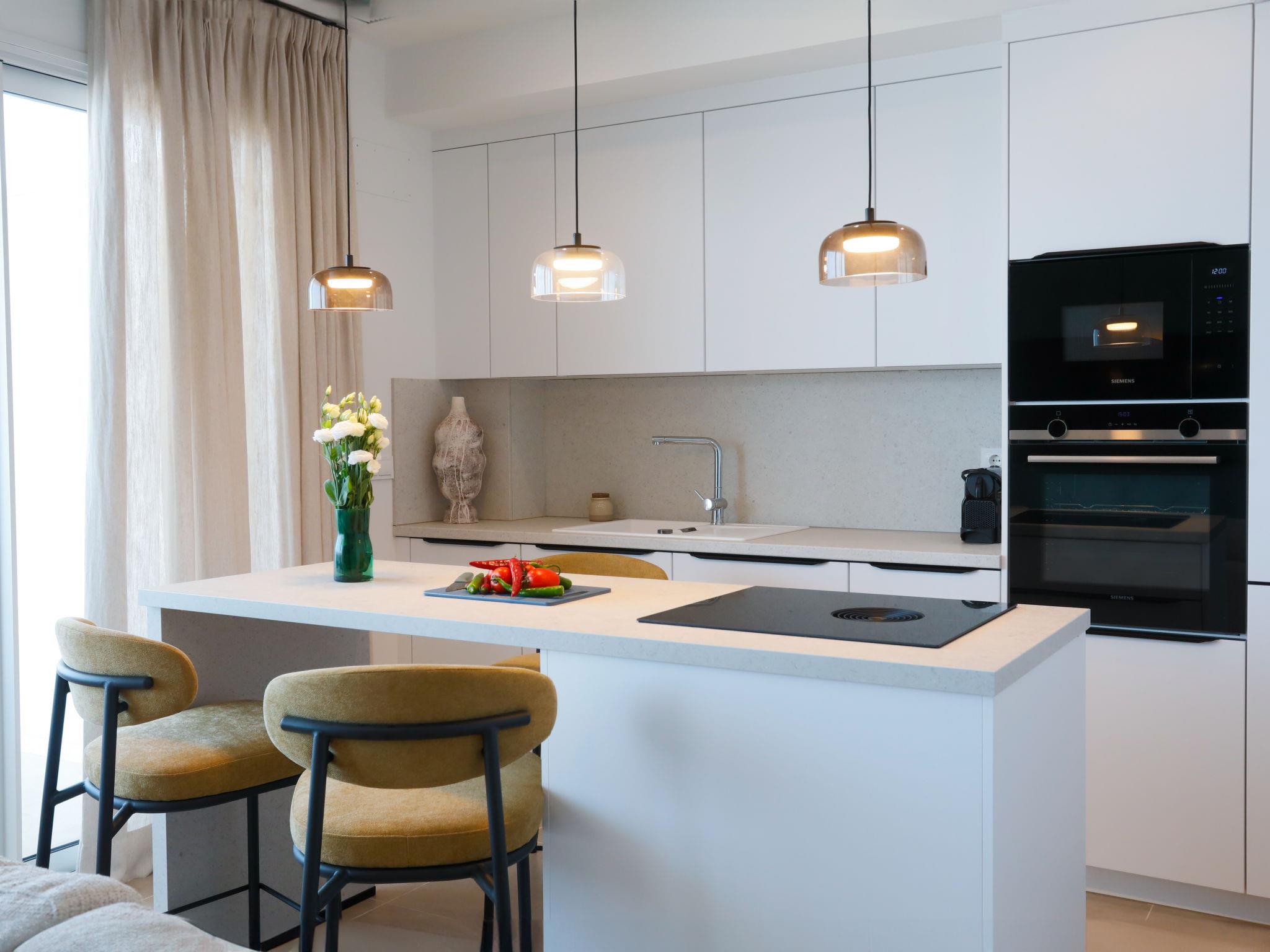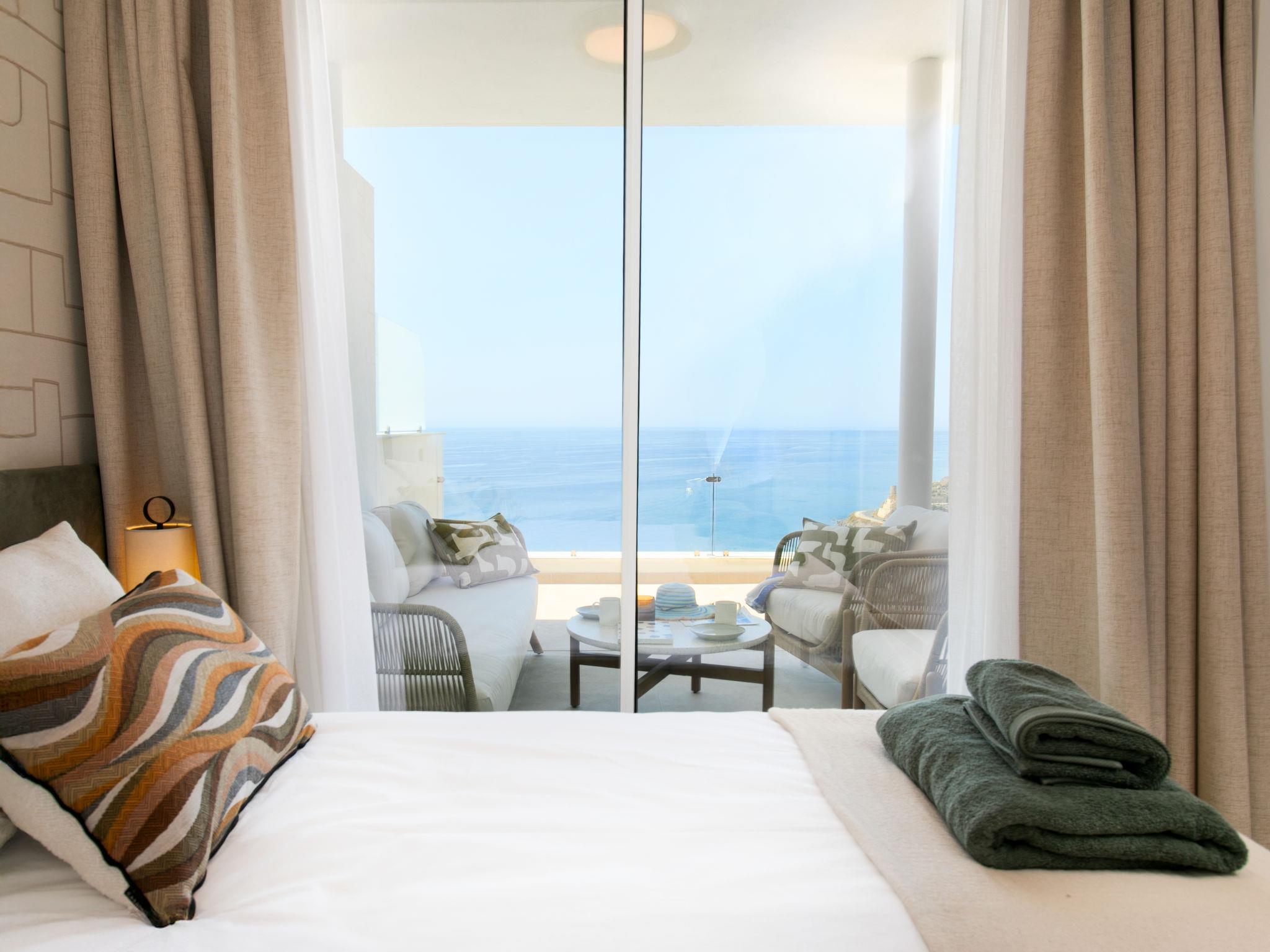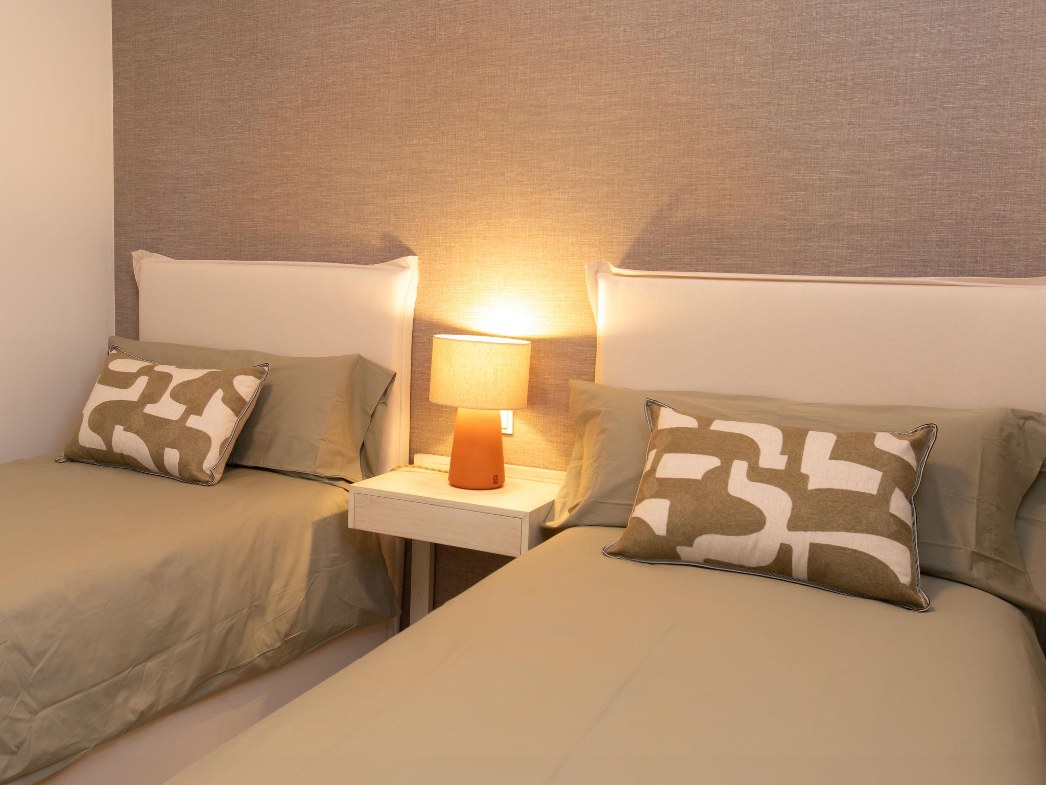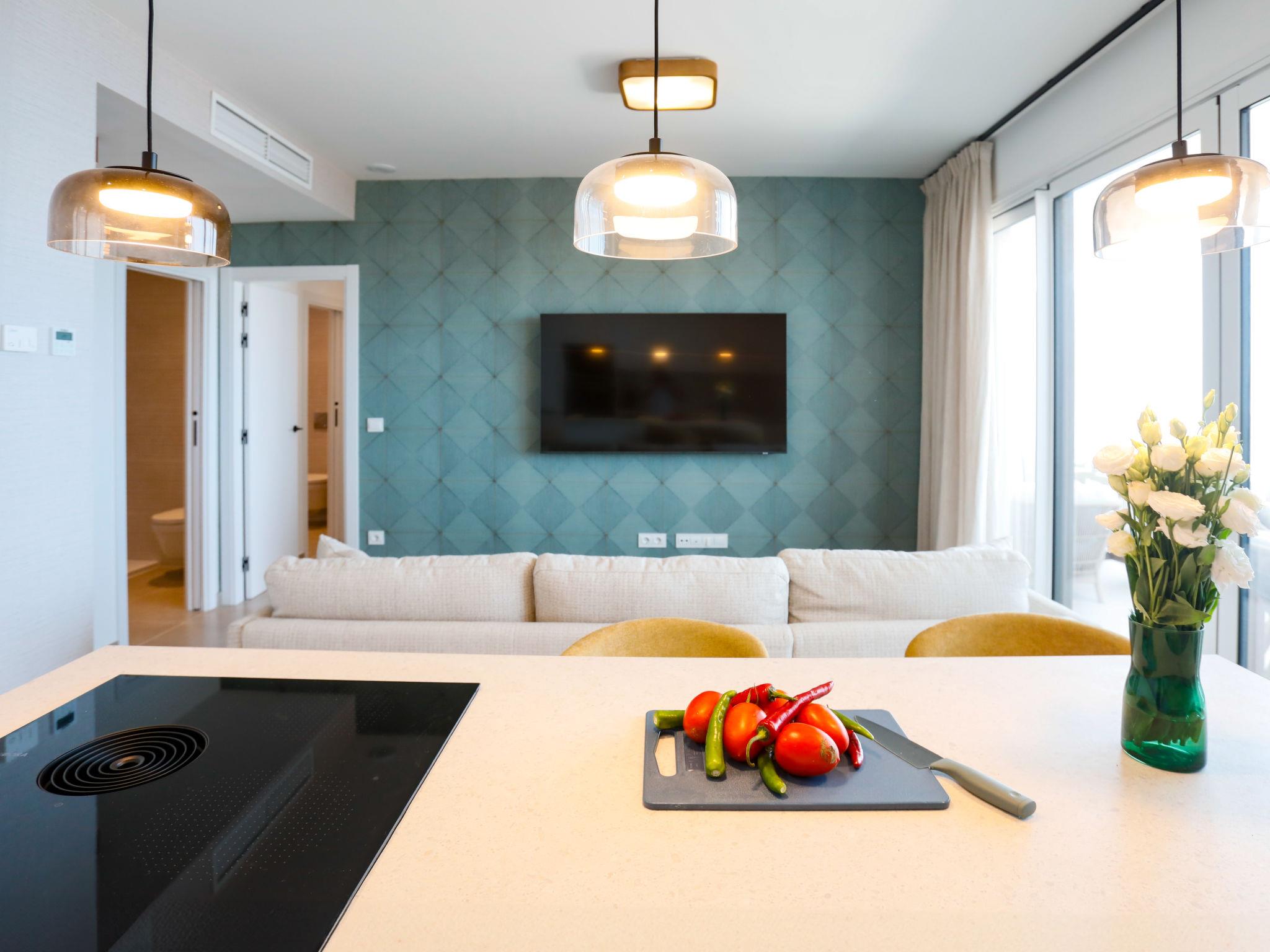 " Bayviewcollection Luxury Spa & Paddle", 3-room apartment 54 m2. Bright, beautiful and modern furnishings: living/dining room with digital TV, air conditioning and forced-air heating. Exit to the terrace. 1 room with 2 beds (90 cm, length 200 cm), air conditioning and forced-air heating. 1 room with 1 french bed (180 cm, length 200 cm), shower/WC, air conditioning and forced-air heating. Exit to the terrace. Open kitchen (oven, dishwasher, 4 ceramic glass hob hotplates, toaster, kettle, microwave, freezer, electric coffee machine). Shower/WC. Small terrace 31 m2. Terrace furniture. Marvellous view of the sea and the resort. Facilities: washing machine, dryer, safe, iron, children's high chair, baby cot, hair dryer. Internet (WiFi, free). VUT/MA/96894 // Reg. Nr.: ESFCTU0000290130011205420000000000000000VUT/MA/968943
