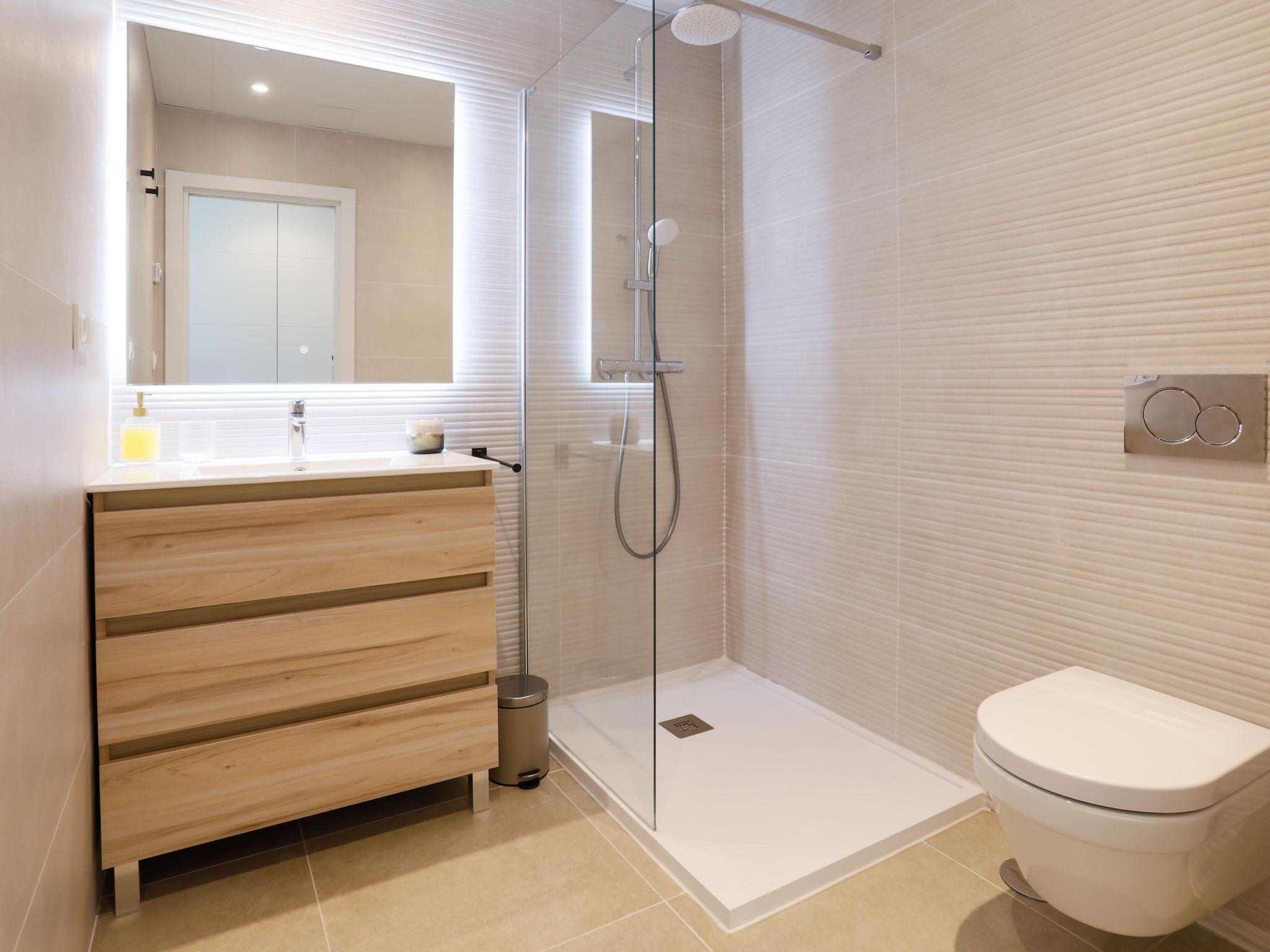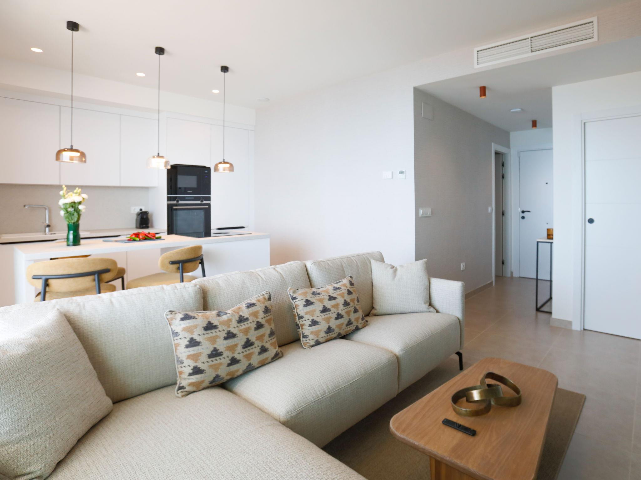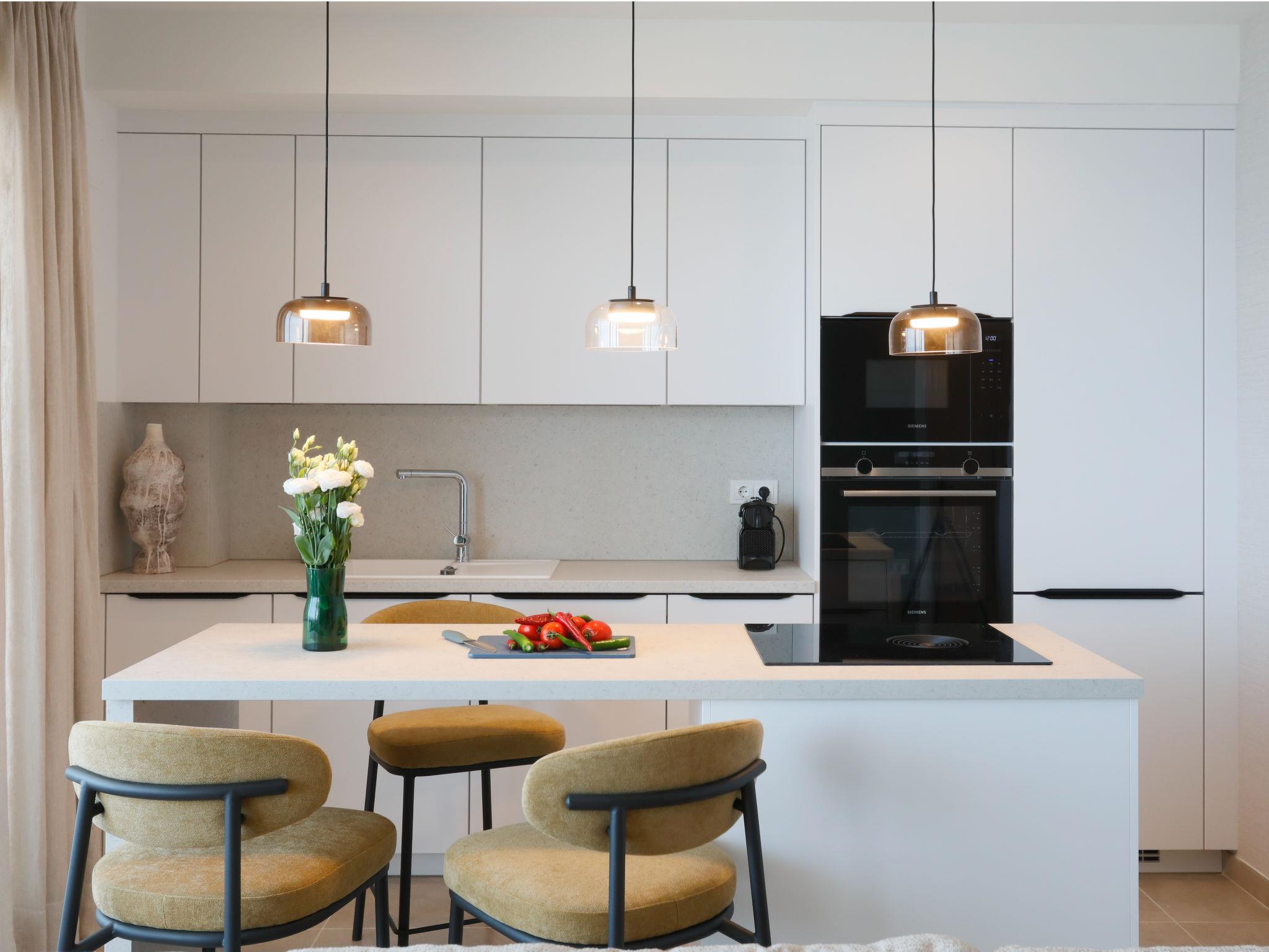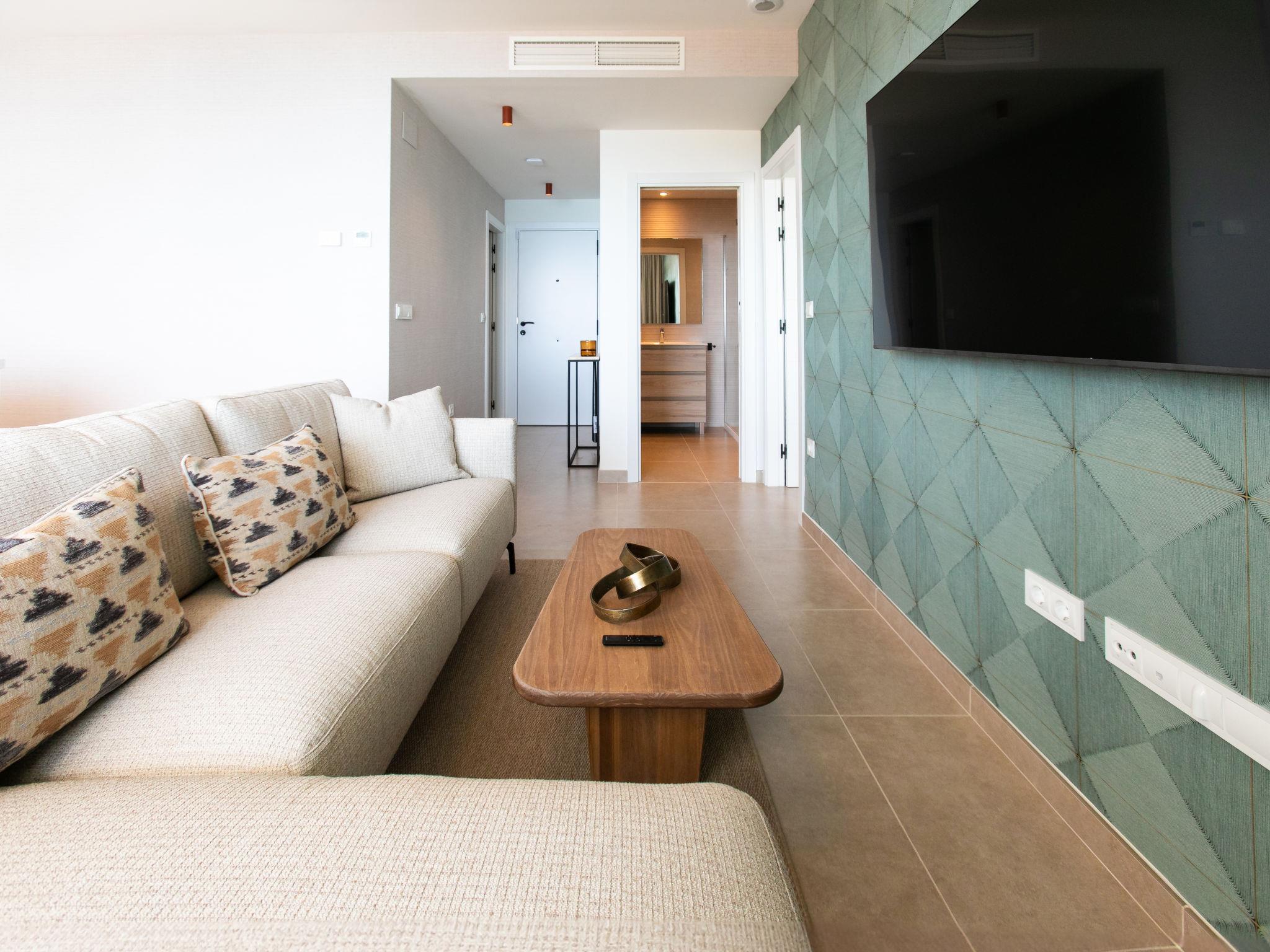 " Bayviewcollection Luxury Spa & Paddle", 3-room apartment 54 m2. Bright, beautiful and modern furnishings: living/dining room with digital TV, air conditioning and forced-air heating. Exit to the terrace. 1 room with 2 beds (90 cm, length 200 cm), air conditioning and forced-air heating. 1 room with 1 french bed (180 cm, length 200 cm), shower/WC, air conditioning and forced-air heating. Exit to the terrace. Open kitchen (oven, dishwasher, 4 ceramic glass hob hotplates, toaster, kettle, microwave, freezer, electric coffee machine). Shower/WC. Small terrace 31 m2. Terrace furniture. Marvellous view of the sea and the resort. Facilities: washing machine, dryer, safe, iron, children's high chair, baby cot, hair dryer. Internet (WiFi, free). VUT/MA/96894 // Reg. Nr.: ESFCTU0000290130011205420000000000000000VUT/MA/968943