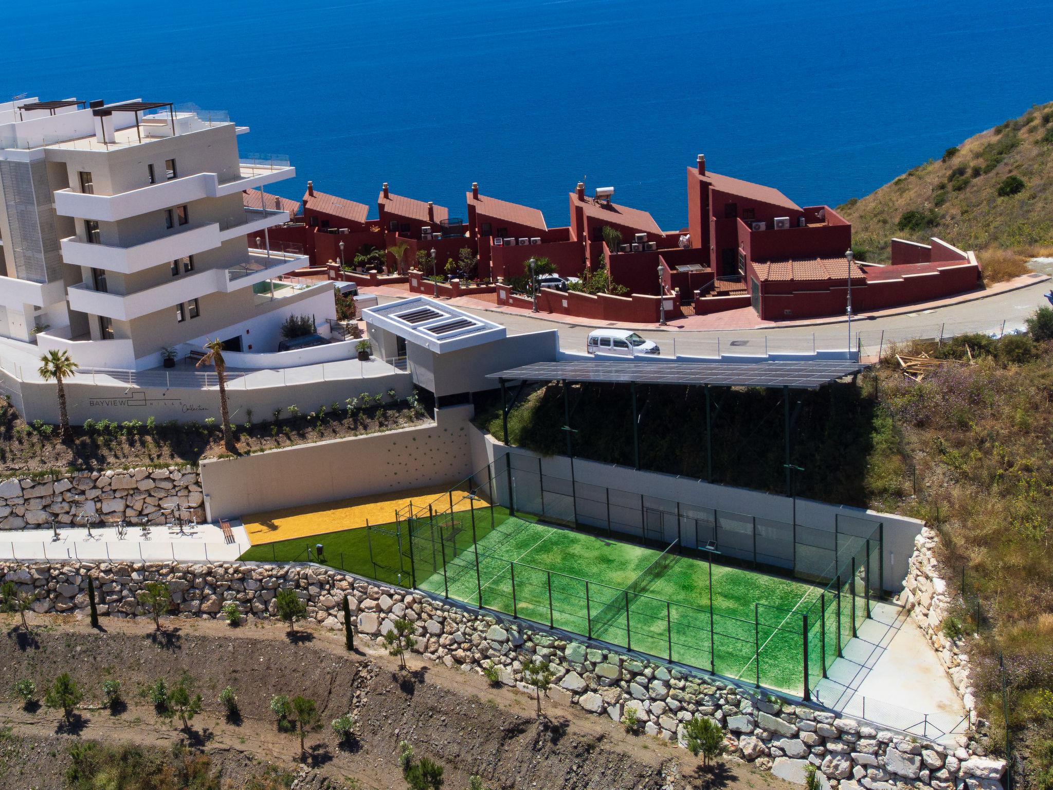 Within this moderm complex there are: two indoor heated swimingpools, football and basket pitch, golf trainig room, wine room, padel court, turkish bath, mini golf, cinema room, shared outdoor BBQ and terrace furniture. Modern, beautiful, comfortable apartment block "Bayviewhill Luxury free Spa & Padle". 1 km from the sea, 1 km from the beach. For shared use: 3 swimming pools (seasonal availability: 01.Jan. - 31.Dec.). WC in the pool area, children's pool, outdoor shower, hot tub, table tennis, arbour, pergola, garden furniture, barbecue, children's playground (slide, swing). In the house: lounge with TV, sauna, fitness room, steam room, hot tub (all included) (all included), billiard table, playroom, table football, lift, air conditioning. Parking space n 28. Shop 1 km, supermarket 100 m, shopping centre 23 km, restaurant 1 km, bus stop "Marinas de Nerja Hotel" 2 km, sandy beach "Calaceite" 1 km, diving center 3 km. Sports harbour 17 km, marina 17 km, golf course (18 hole) 23 km. Nearby attractions: Museo de Nerja, Cuevas de Nerja, Acantilados de Maro, Aquavelis, Malaga, La Alhambra. Well-known ski regions can easily be reached: Sierra Nevada. Hiking paths: Sierra Tejeda, Sierra Almijara. Please note: car recommended. The owner does not accept any youth groups. Loading and unloading of baggage is possible at the holiday house. Property ref. ES5405.57.1 is situated on the same property.