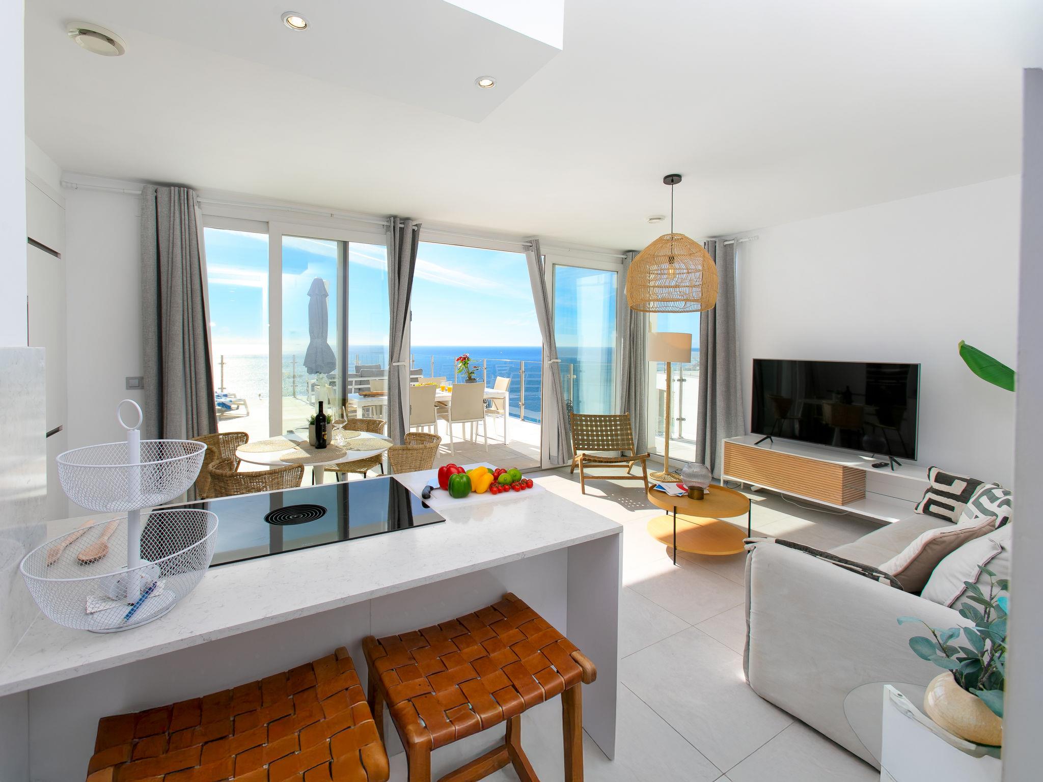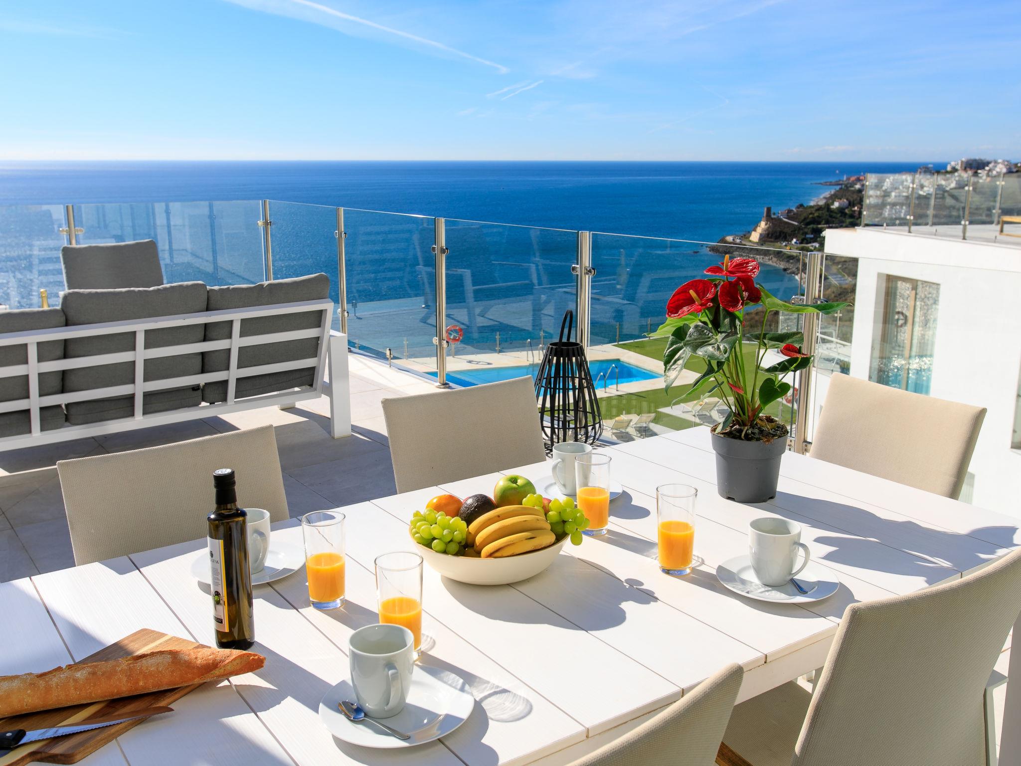 "Ocean Nerja view Sauna & Spa", 3-room apartment 66 m2. Spacious and bright, comfortable and beautiful furnishings: living/dining room with digital TV, air conditioning and forced-air heating. Exit to the terrace. 1 room with 1 french bed (160 cm, length 200 cm), shower/WC, air conditioning and forced-air heating. Exit to the terrace. 1 room with 1 x 2 bunk beds (140 cm, length 200 cm), air conditioning and forced-air heating. Exit to the terrace. Open kitchen (oven, dishwasher, 4 ceramic glass hob hotplates, toaster, kettle, microwave, freezer, electric coffee machine). Shower/WC. Terrace furniture, barbecue, deck chairs. Panoramic view of the sea, the mountains and the resort. Facilities: washing machine, safe, iron, children's high chair, baby cot for up to 3 year olds, hair dryer. Internet (WiFi, free). VUT/MA/472266 // Reg. Nr.: ESFCTU0000290130010873330000000000000000VUT/MA/472266