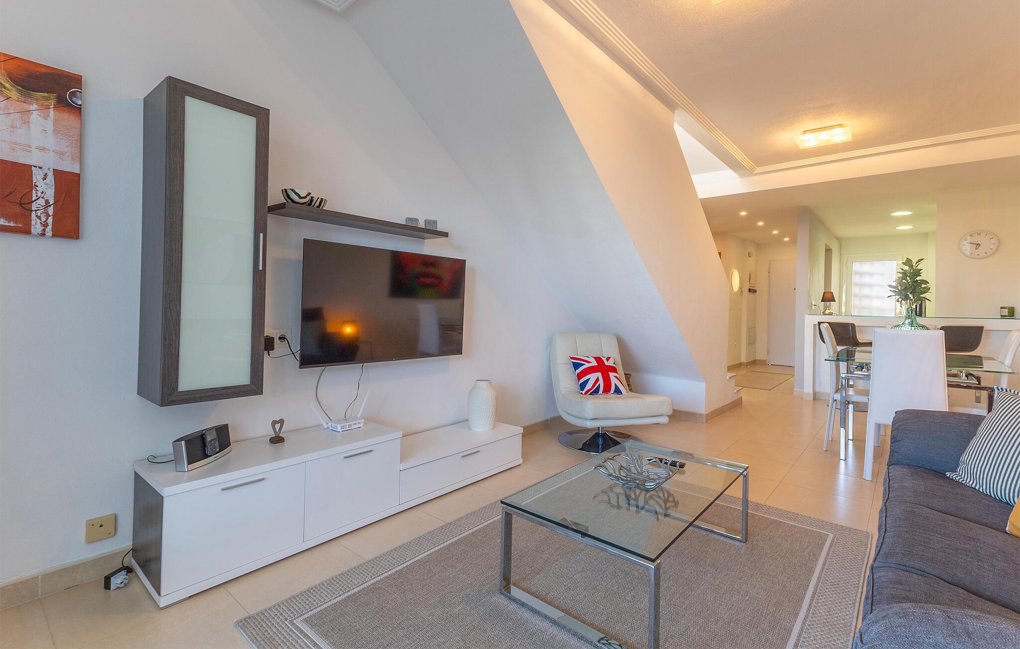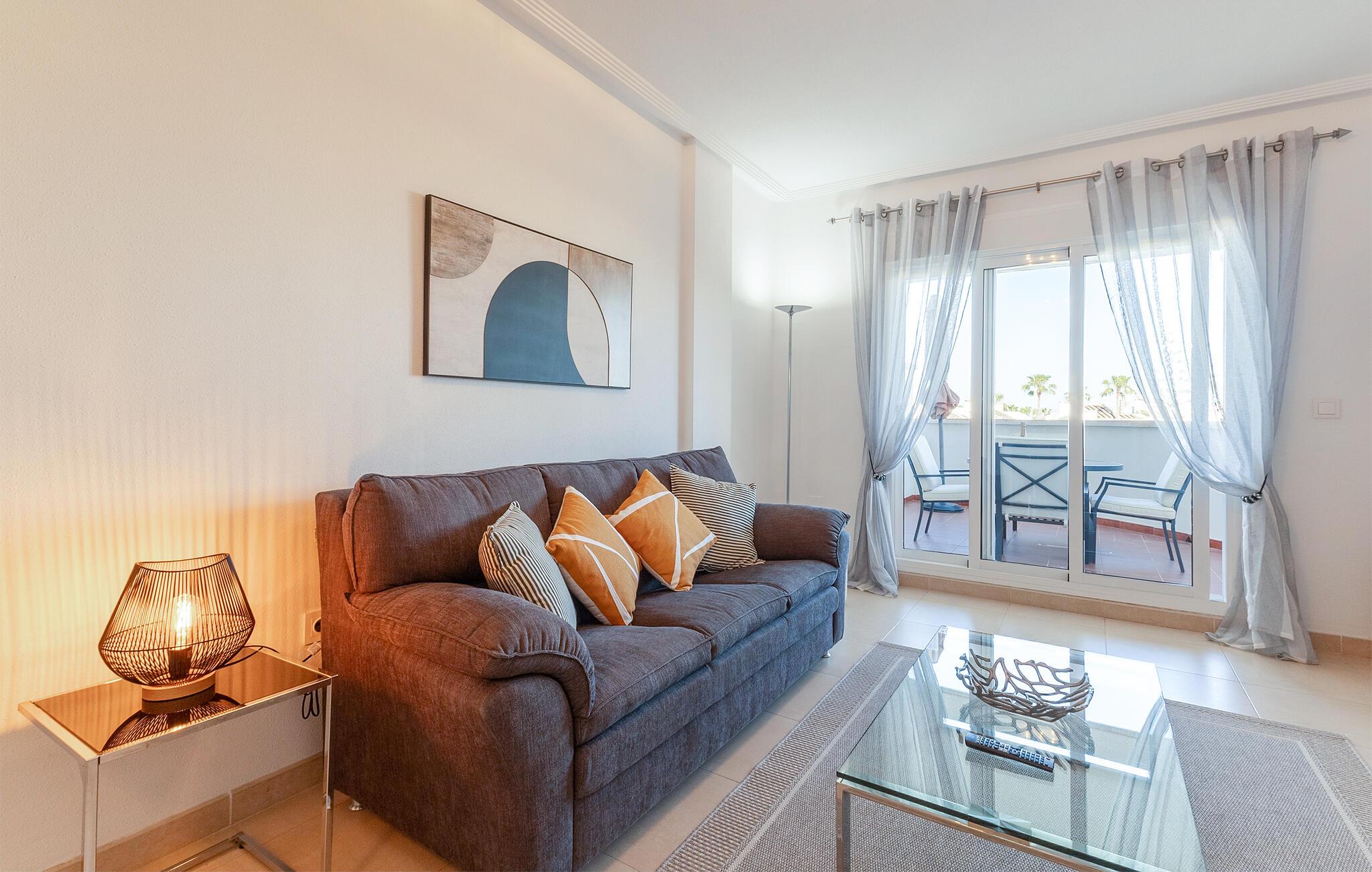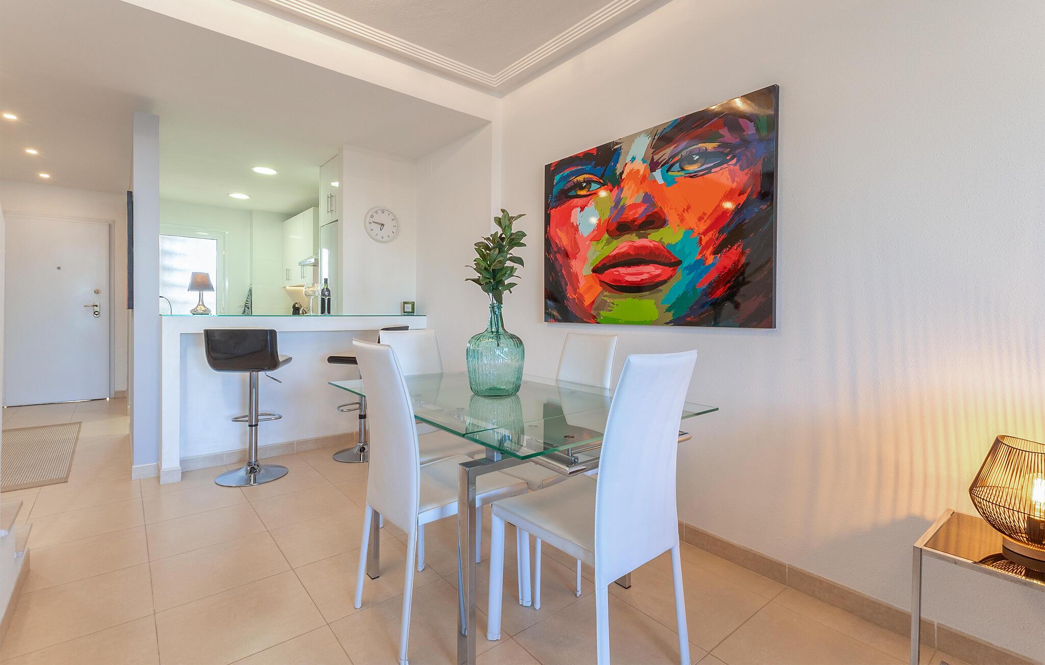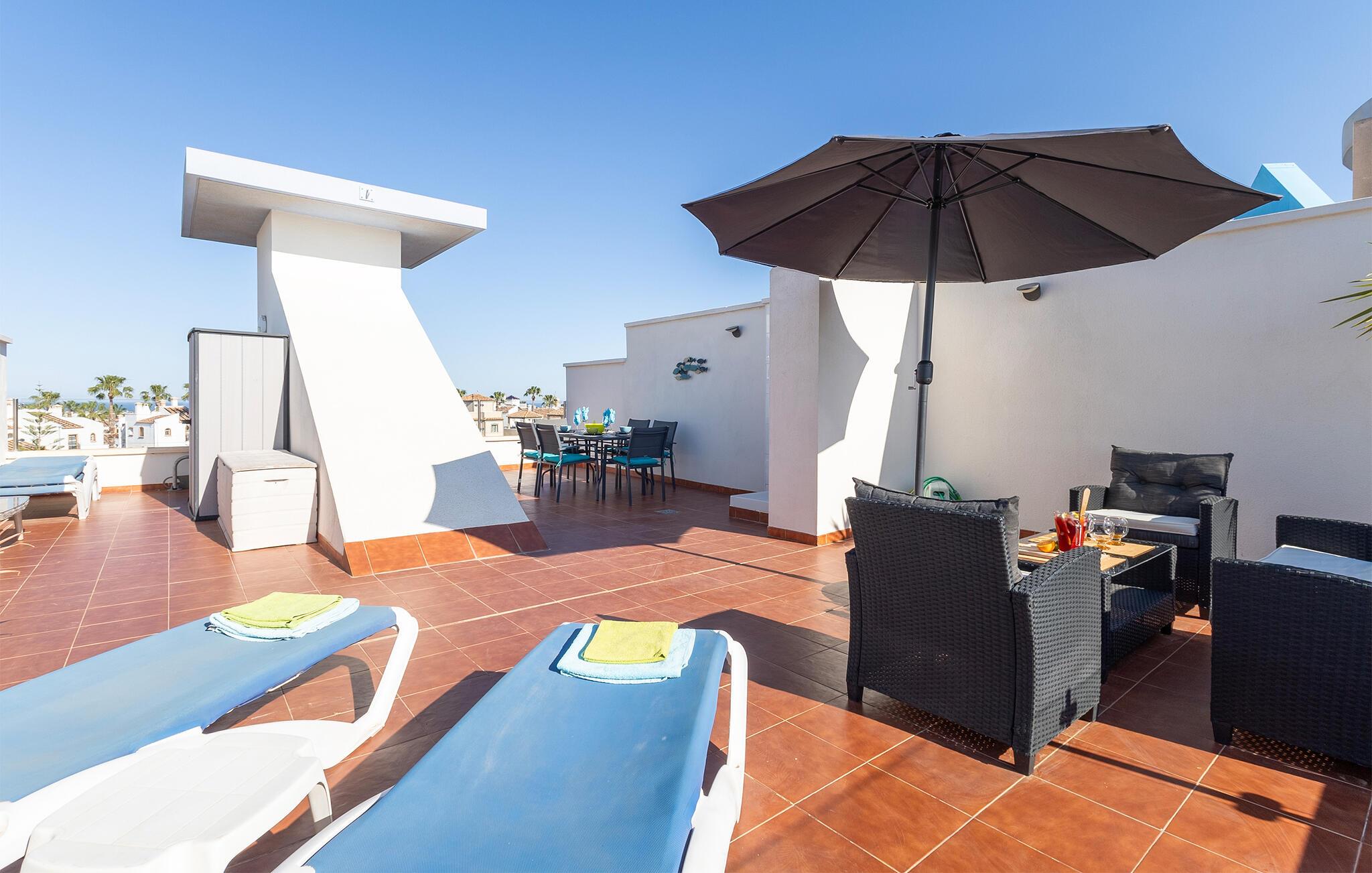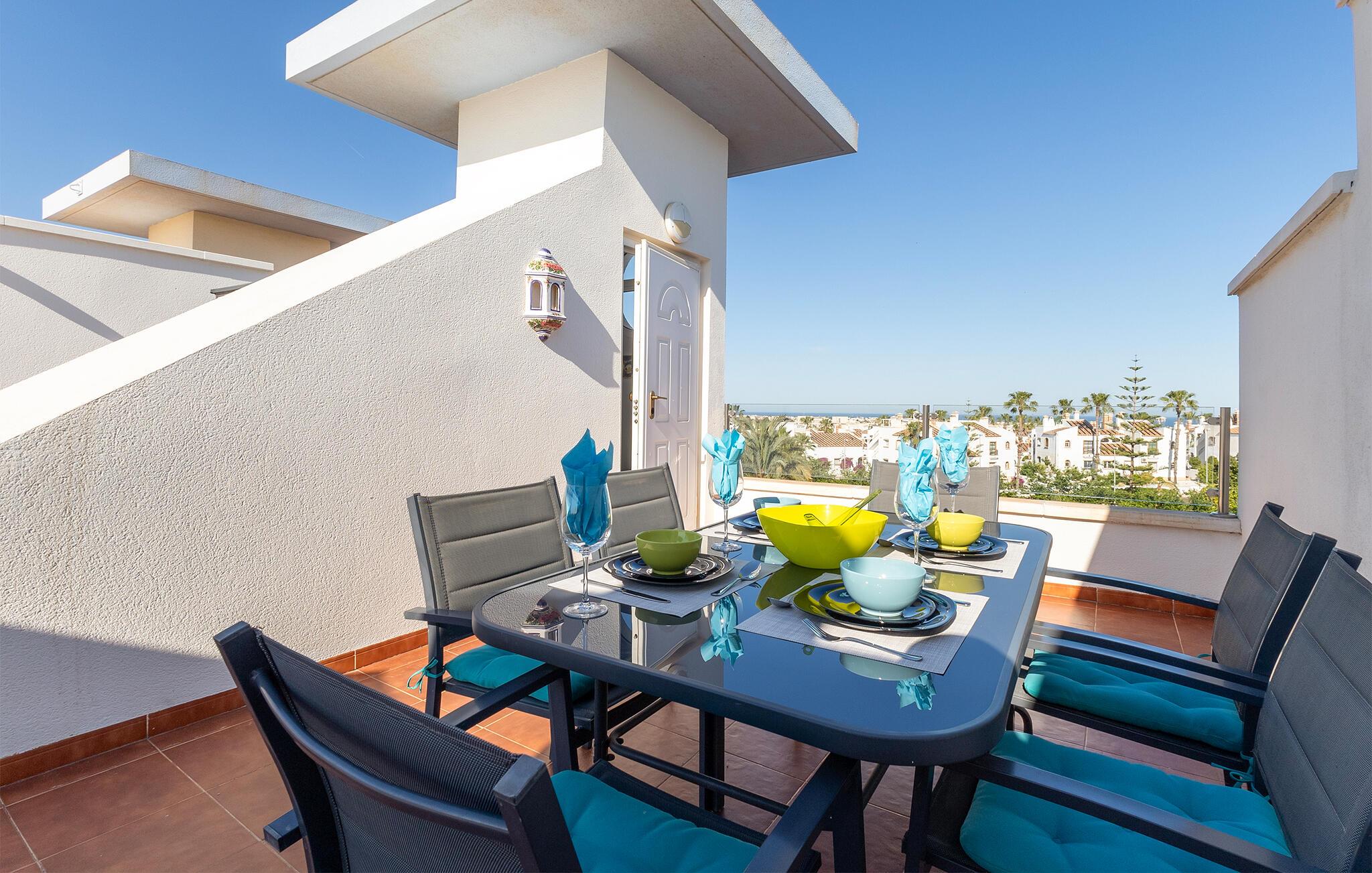 Tilbring en avslappende ferie med stil i denne ferieleiligheten med terrasse og tilgang til bassenget.