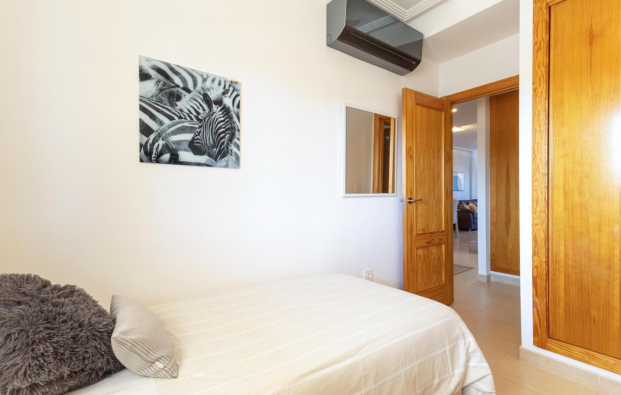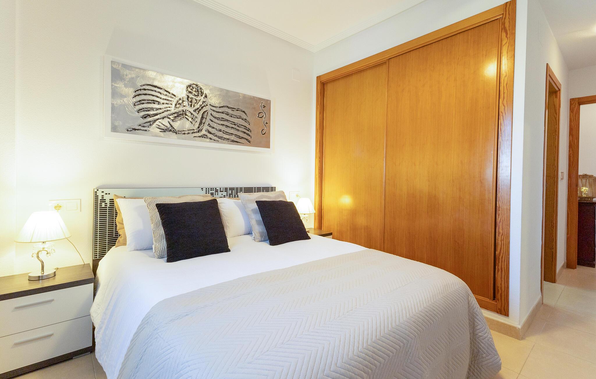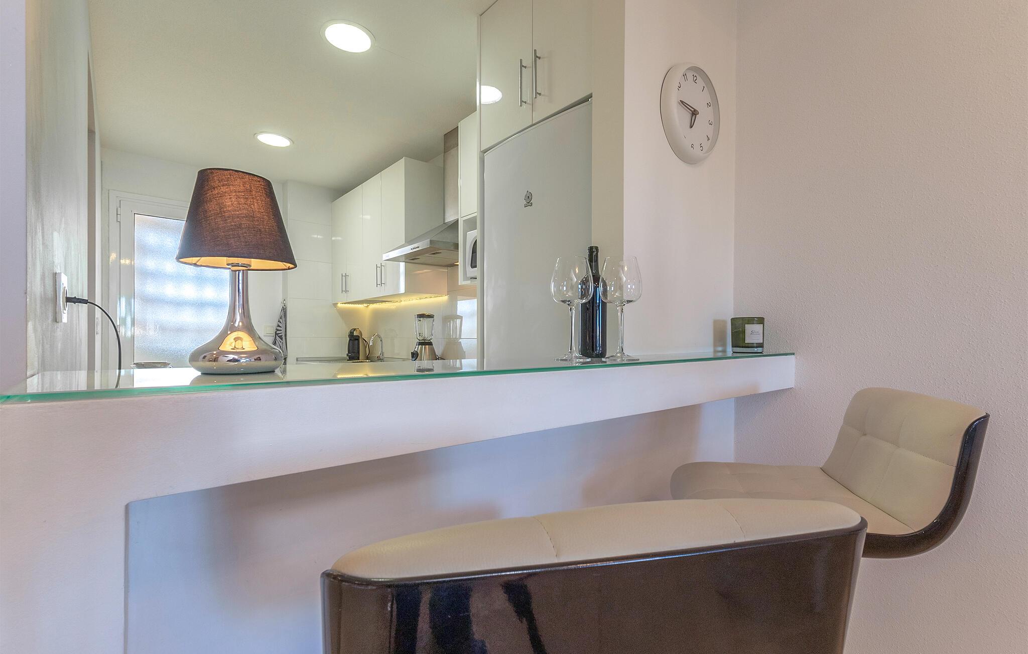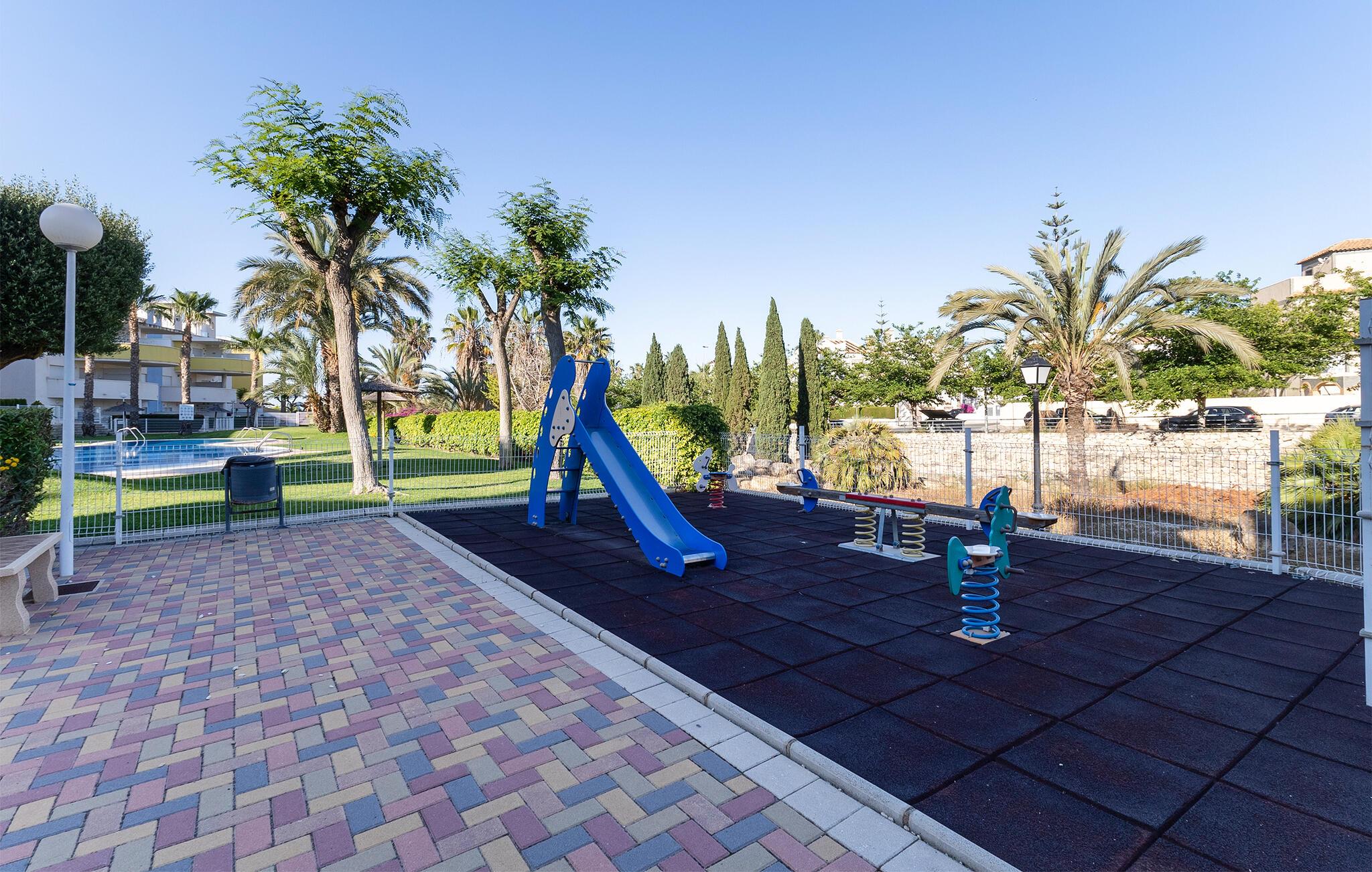 Tilbring en avslappende ferie med stil i denne ferieleiligheten med terrasse og tilgang til bassenget.