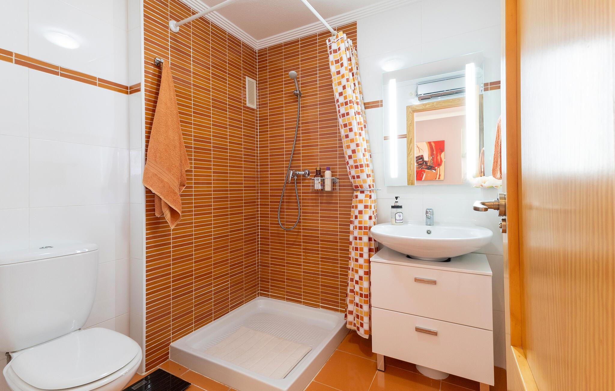 - WC med varmt og kaldt vann, Dusj