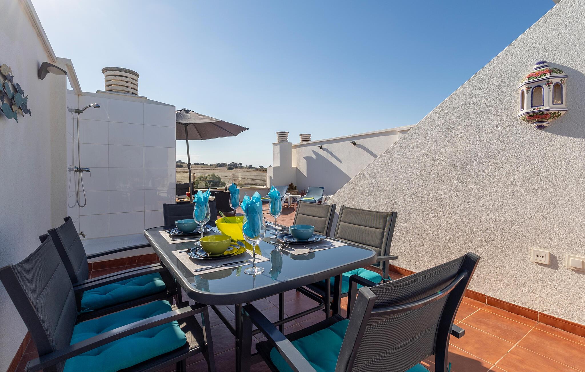 Utforsk de nærliggende strendene på Costa Blanca, eller tilbring aktive dager på de vakre golfbanene rundt Orihuela. Ta en tur til Torrevieja med strandpromenade, saltlaguner og lokale markeder. Regionen er også populær blant syklister og naturelskere, og er ideell for en variert ferie ved den spanske middelhavskysten.