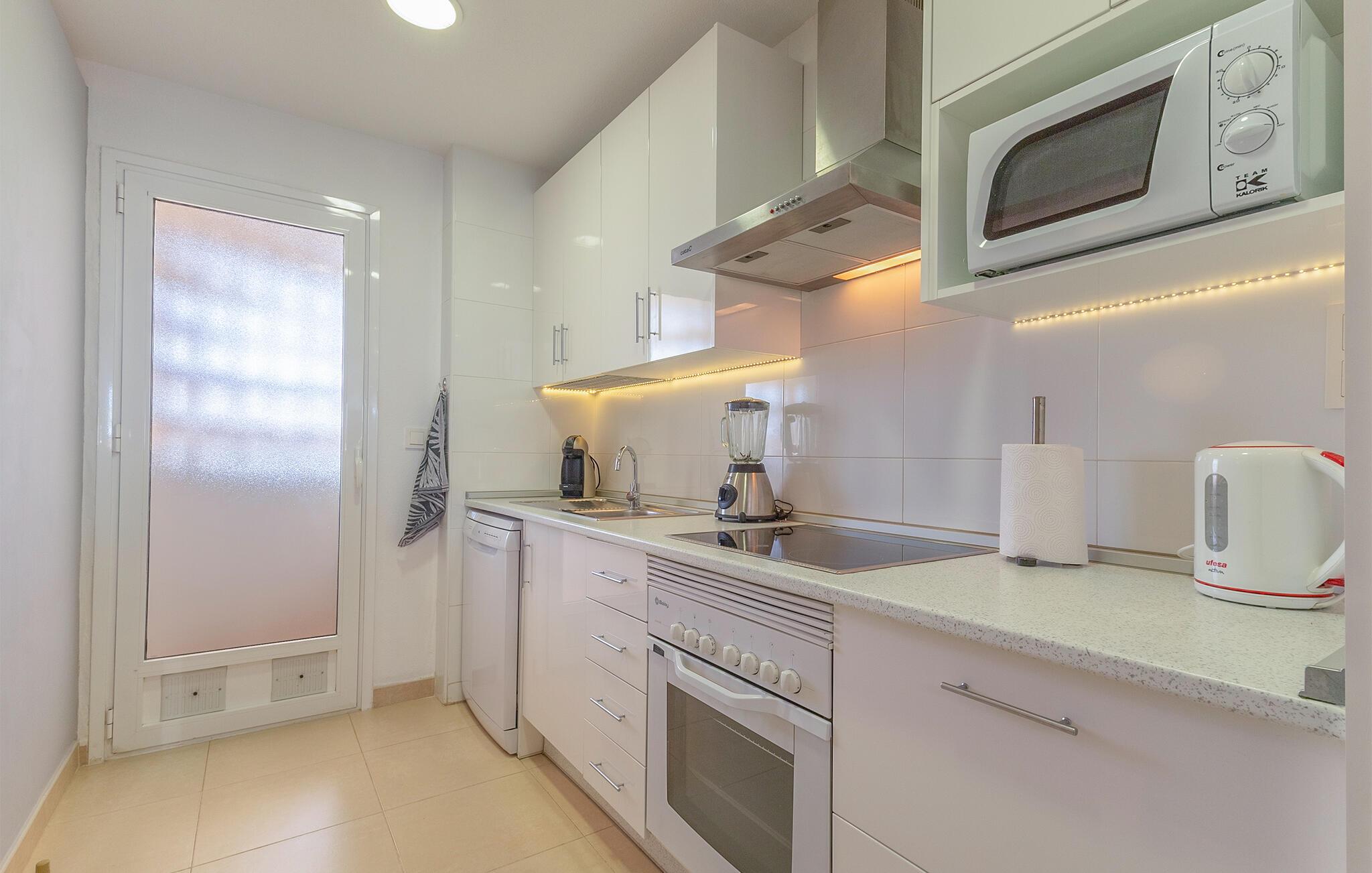 Nyt en bekymringsløs ferie i denne smakfullt innredede ferieleiligheten, som er ideell for par eller en liten familie. De lyse rommene, moderne innredning og to møblerte uteområder skaper en hyggelig ferieatmosfære. Føl deg som hjemme i det koselige oppholdsrommet. Slapp av i sofaen, se en film eller slå av en prat ved spisebordet. Kjøkkenet er funksjonelt utstyrt og tilbyr alt du trenger for selvhushold.