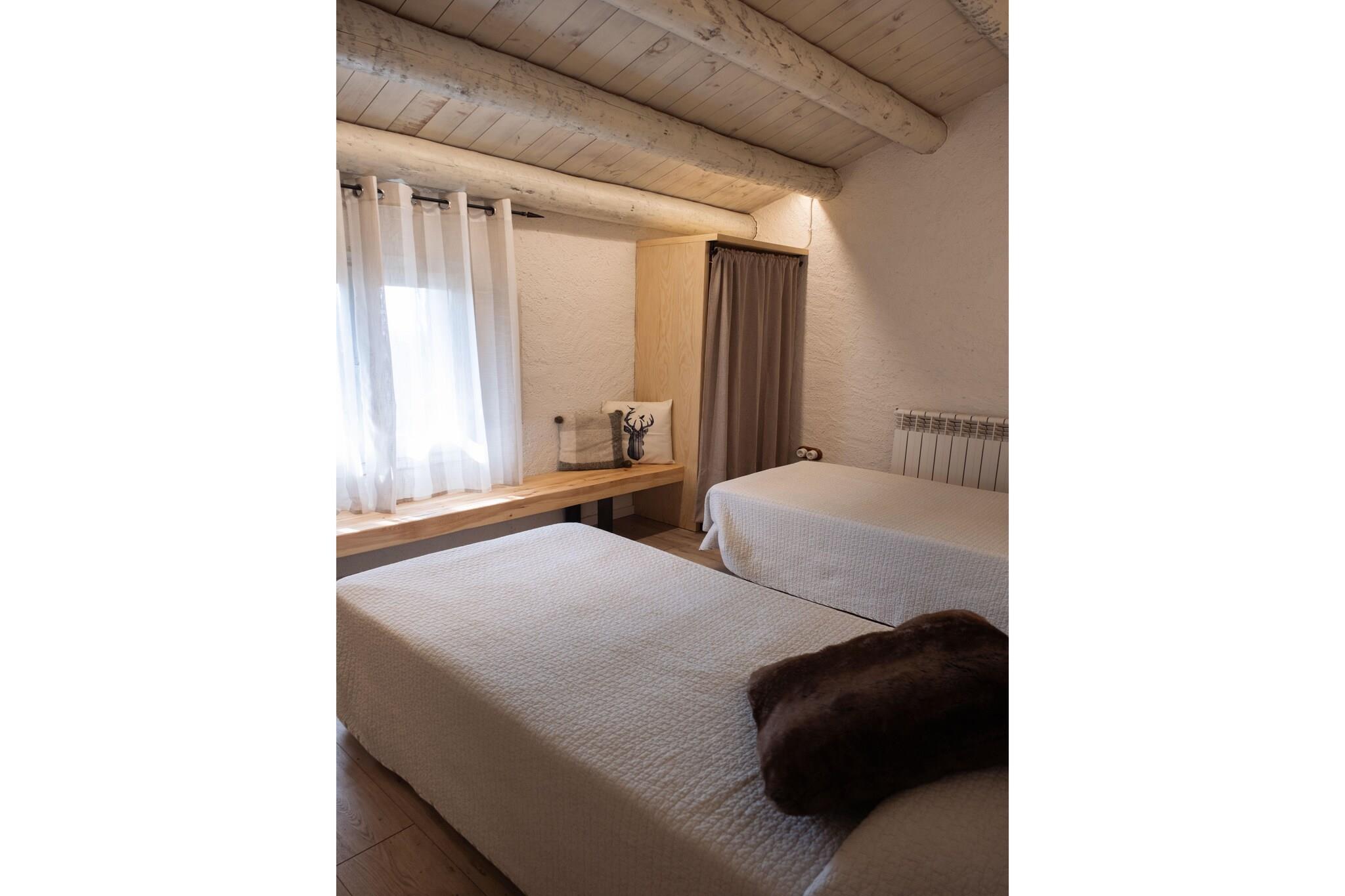 En tidligere, fullstendig renovert hayfjøs, som er dannet i 2 identiske sammenhengende hus, som ligger i en meget rustikk, fredelig omkrets i Pre-Pyreneene. Rustikk interiør med tregulv og plattform med trebalkong. Du kan til og med kjøpe hjemmelagde produkter fra, for eksempel kjøkkenhagen, selv om dette avhenger av årets periode. Det er et 400 år gammelt kapell innenfor en avstand på 100 m, som tilhører huset. Innen 800m er 2 typiske restauranter i regionen, ett med svømmebasseng. Nærmeste supermarked på 20km.