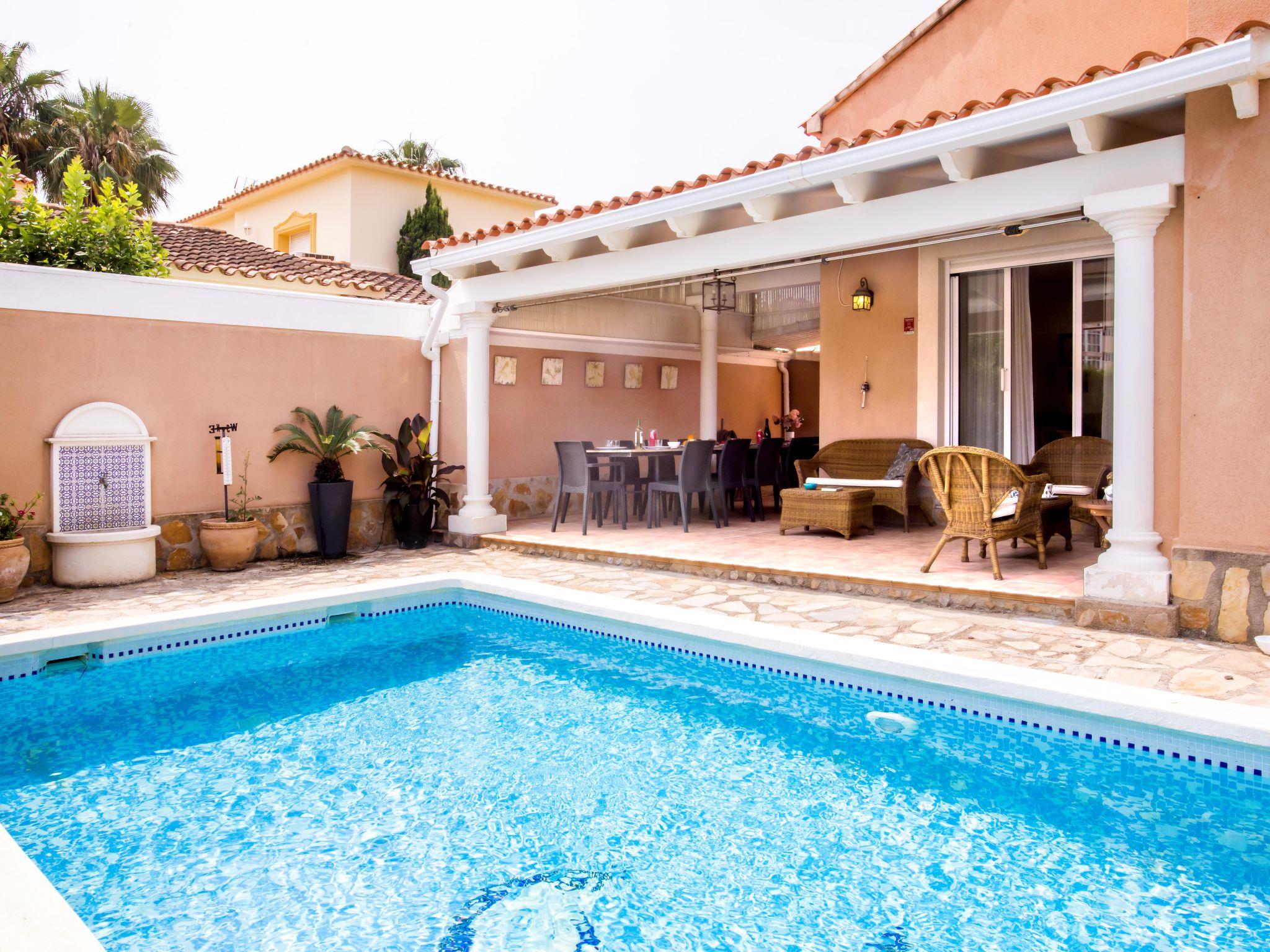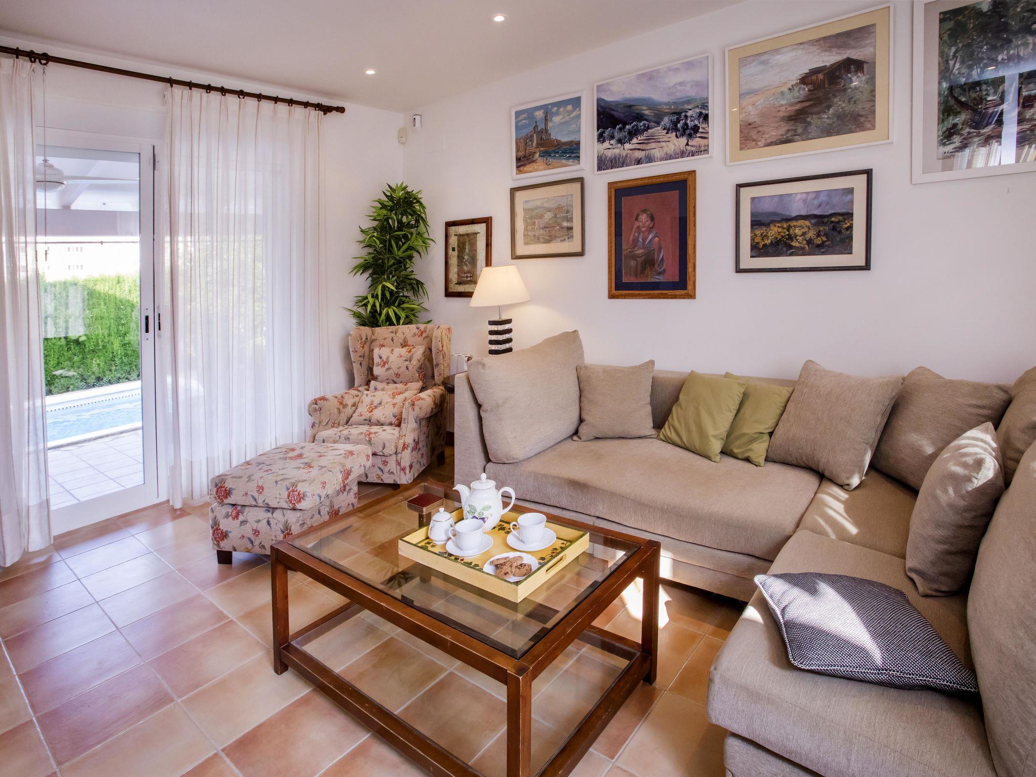 "Casa Larauri Oliva Nova", 7-room house 250 m2 on 2 levels. Spacious, beautiful and cosy furnishings: living/dining room with digital TV, air conditioning and forced-air heating. Exit to the patio, to the swimming pool. 1 room with 1 french bed (2 x 90 cm, length 180 cm), shower/WC and fan. 1 room with 2 beds (90 cm, length 190 cm), fan. 1 room with 2 beds (80 cm, length 190 cm), fan. Kitchen (oven, dishwasher, 4 ceramic glass hob hotplates, toaster, kettle, microwave, electric coffee machine). Bath/WC. Upper floor: living room with digital TV. Exit to the terrace. 1 room with 2 beds (90 cm, length 190 cm), fan. 1 room with 1 french bed (135 cm, length 190 cm), fan. Bath/bidet/WC. Large terrace. Terrace furniture, barbecue, covered balcony, sitting area. Facilities: washing machine, iron, children's high chair, baby cot, hair dryer. Internet (WiFi, free). Parking. Please note: TV only ES. VT-53949-V // Reg. Nr.: ESFCTU000046044000449454000000000000000000VT-53949-V0