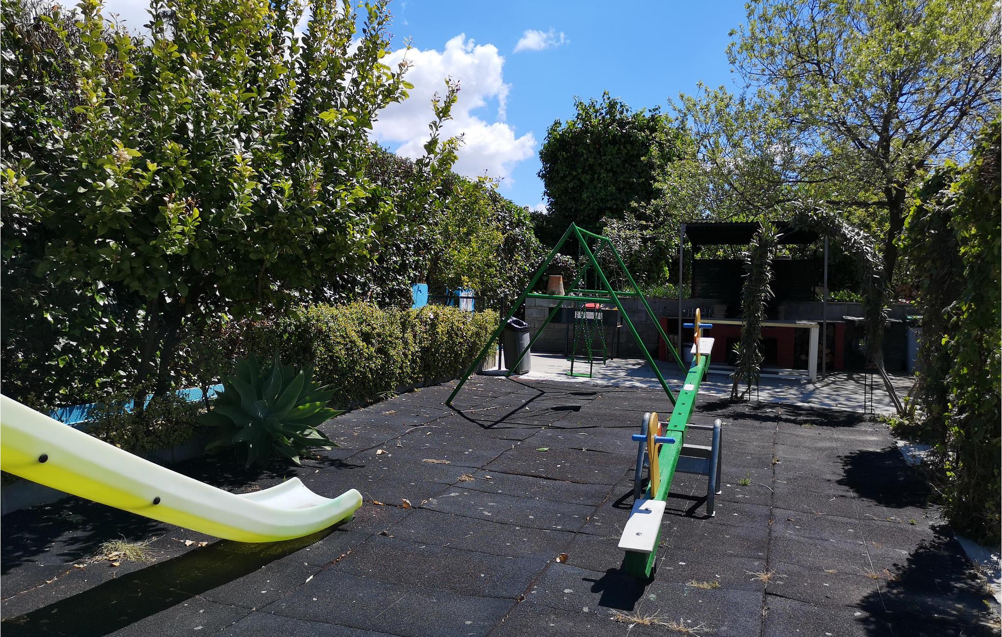 Huset imponerer med et fantastisk uteområde med en rekke underholdningsmuligheter og et fantastisk bassengområde. Her kan barna virkelig slå seg løs mens du sitter komfortabelt med resten av familien.