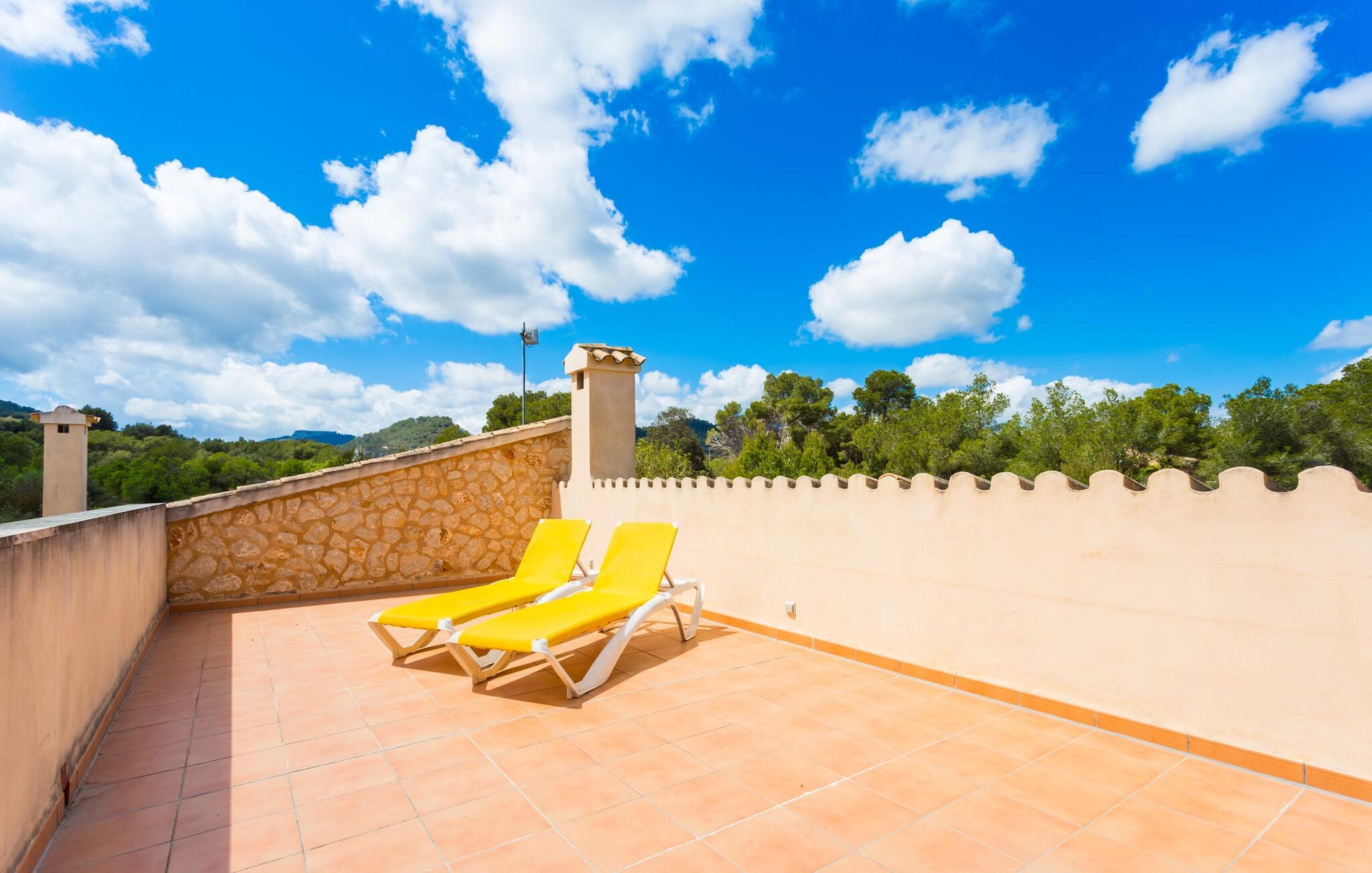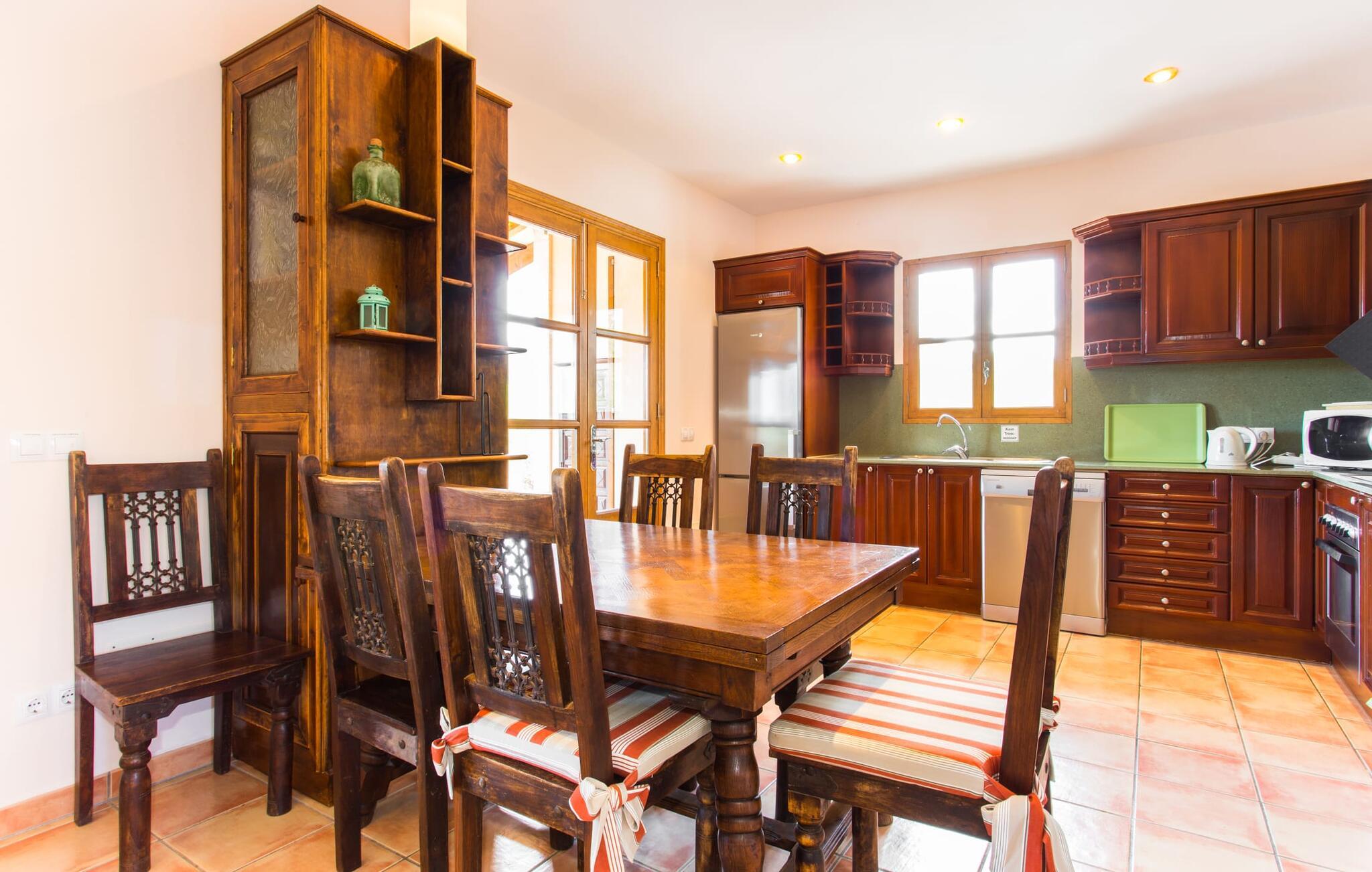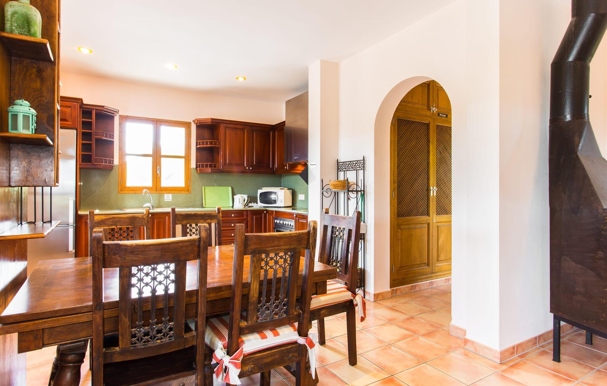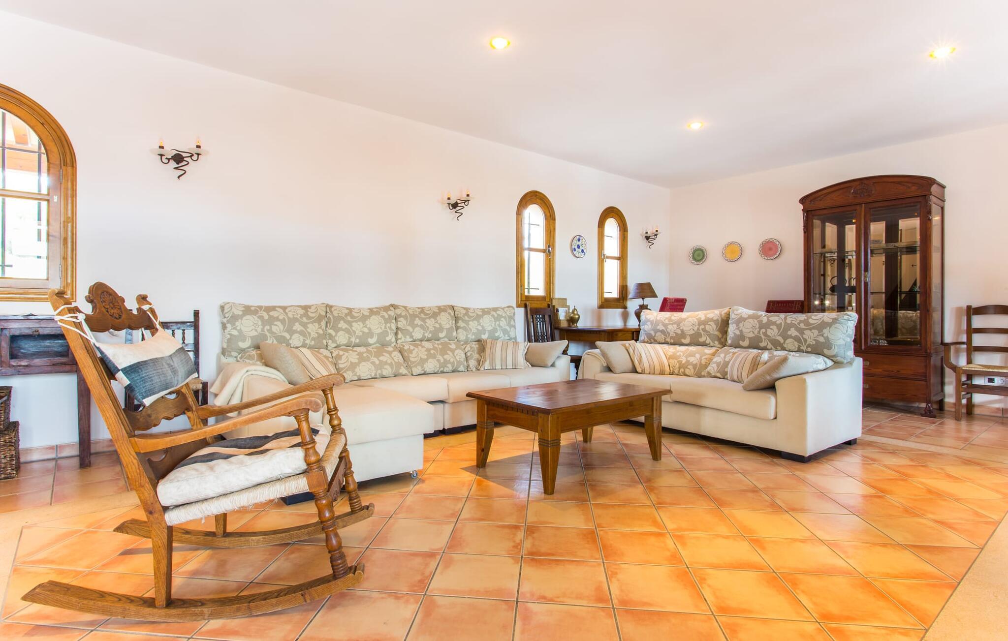Selv på avstand kan du se to høye palmer som er plantet på terrassen til Villa Once Pinos. Hvis du ønsker å tilbringe fritiden din i et feriehus med alle bekvemmeligheter og samtidig nyte den tradisjonelle atmosfæren, er dette stedet for deg. Den store, velholdte eiendommen, som er bevart i sin opprinnelige tilstand og ligger i bortgjemte omgivelser, garanterer fred og ro, trygt borte fra hverdagens kjas og mas.