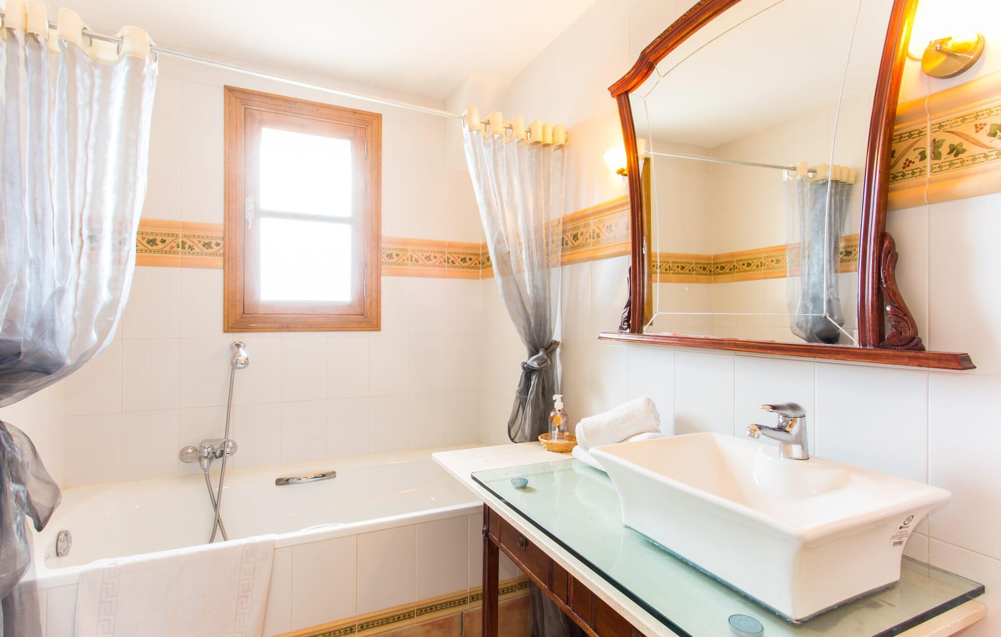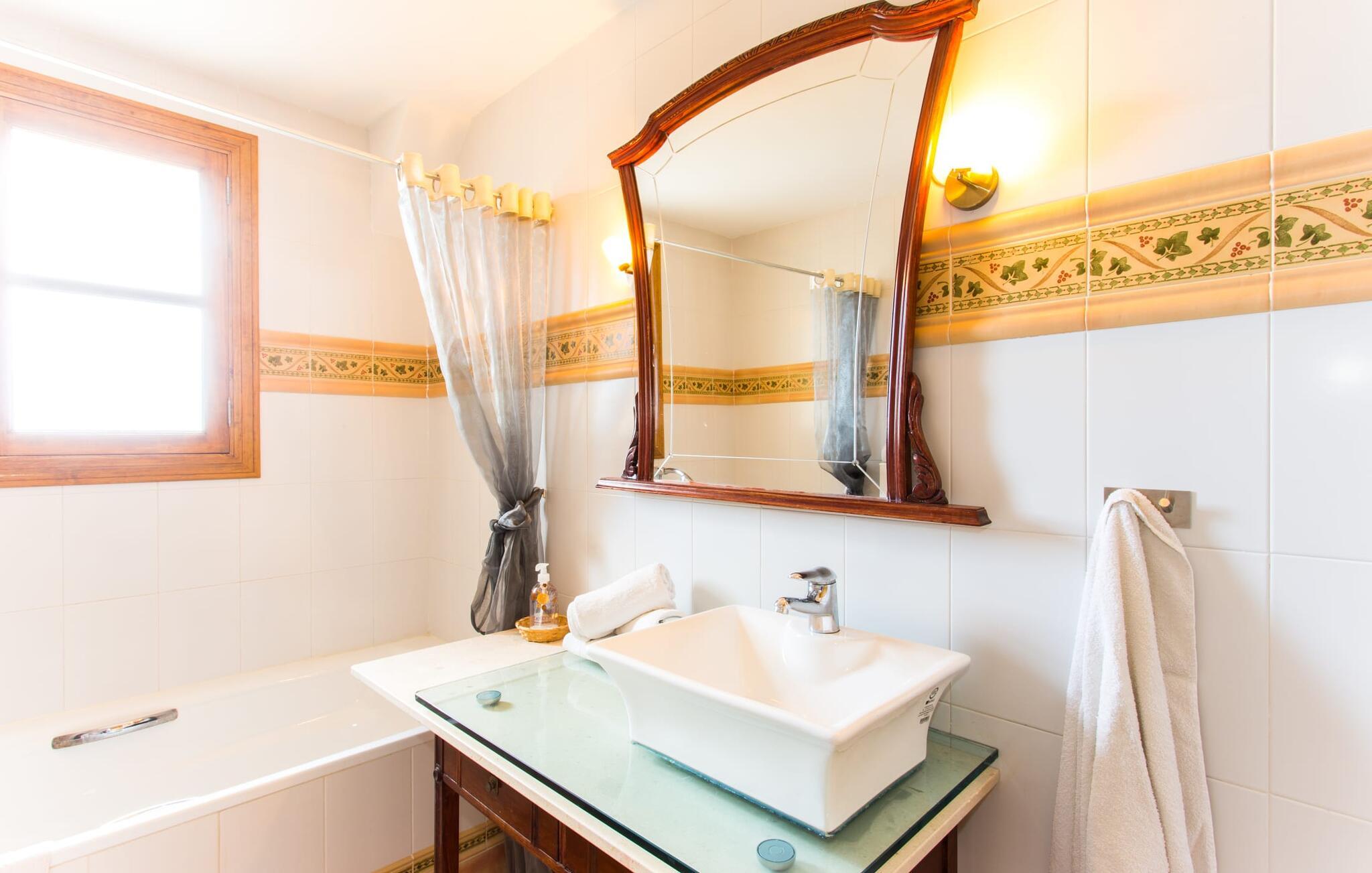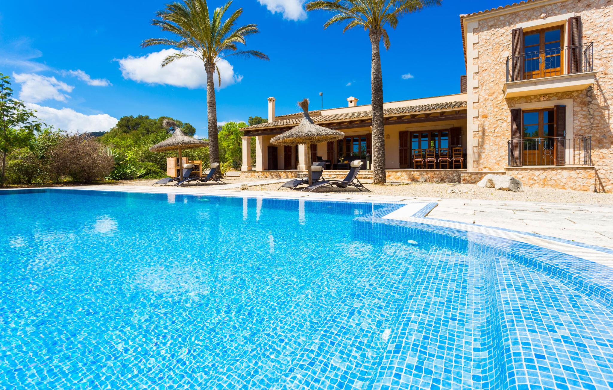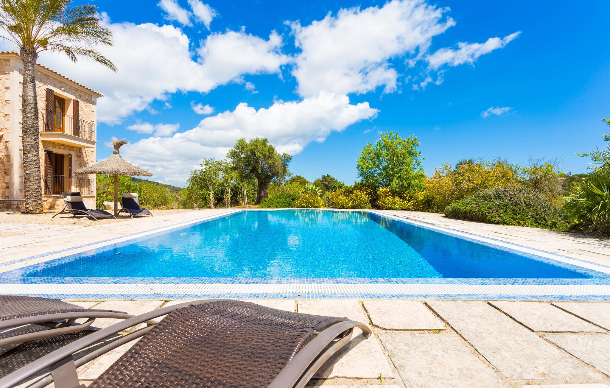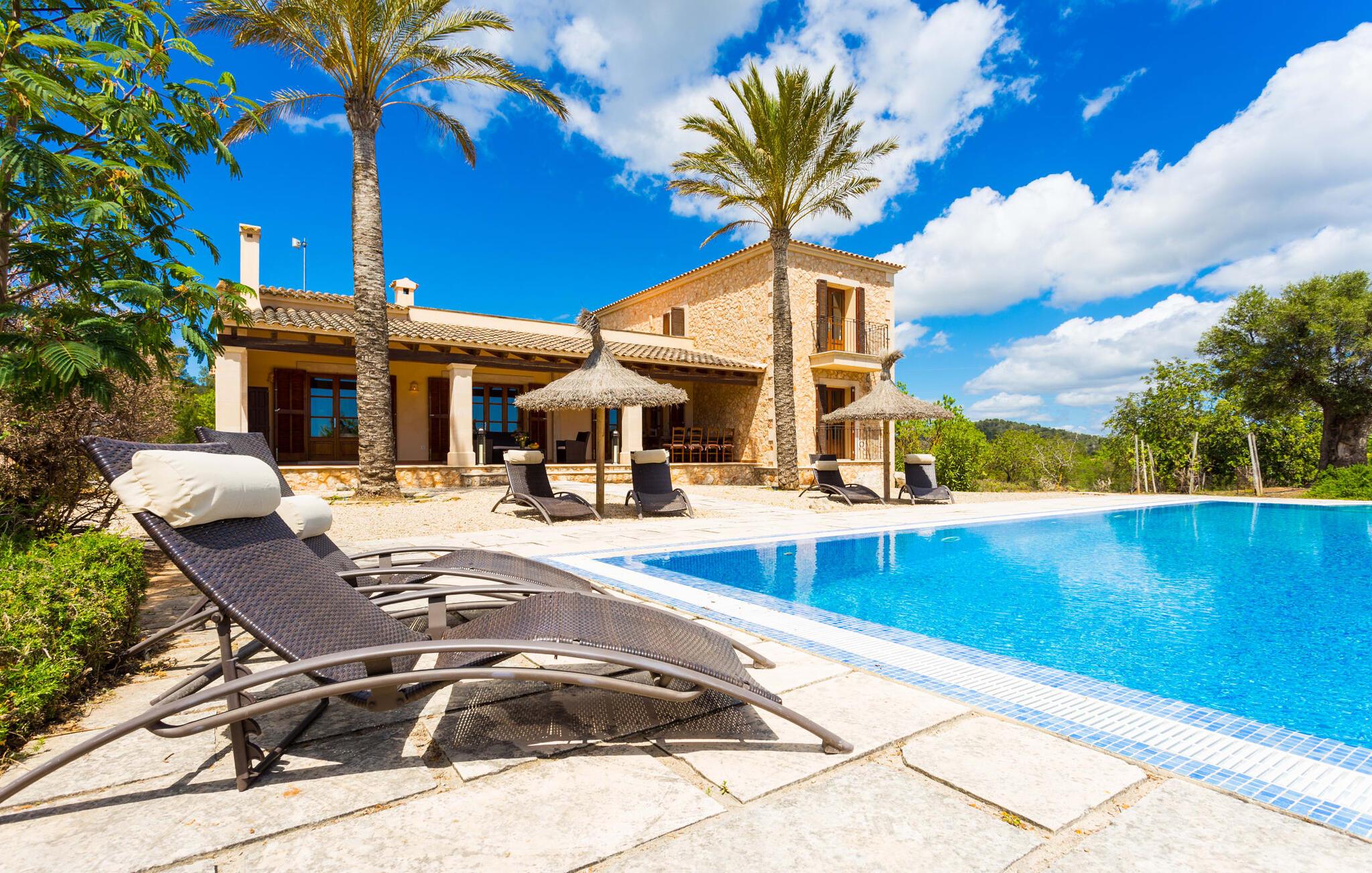 Selv på avstand kan du se to høye palmer som er plantet på terrassen til Villa Once Pinos. Hvis du ønsker å tilbringe fritiden din i et feriehus med alle bekvemmeligheter og samtidig nyte den tradisjonelle atmosfæren, er dette stedet for deg. Den store, velholdte eiendommen, som er bevart i sin opprinnelige tilstand og ligger i bortgjemte omgivelser, garanterer fred og ro, trygt borte fra hverdagens kjas og mas.
