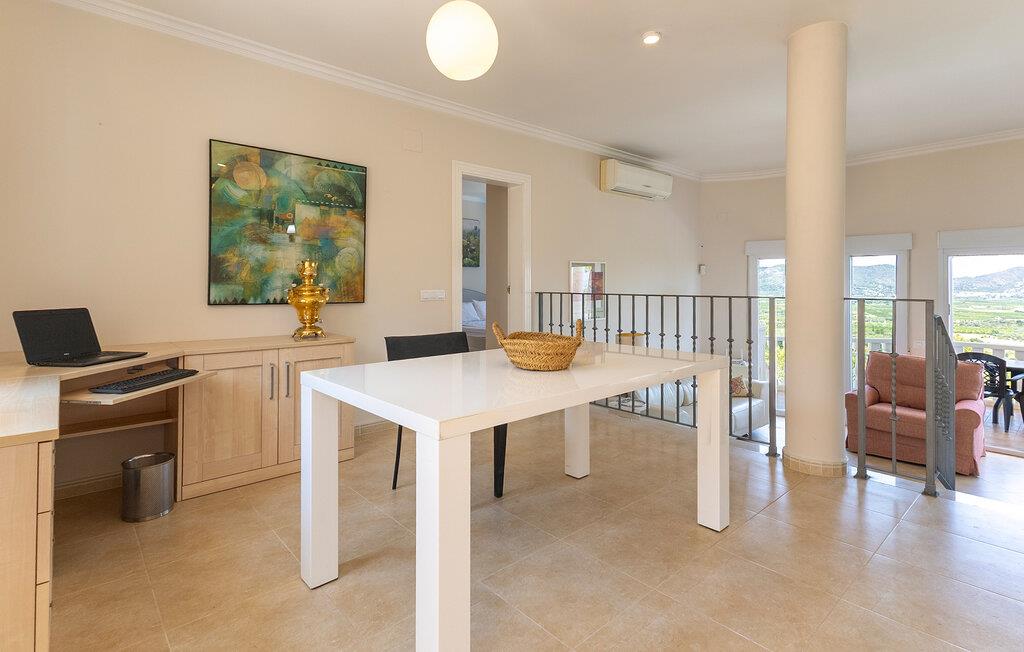 Dette romslige og komfortabelt innredede feriehuset har en privilegert, lett forhøyet beliggenhet, og tilbyr deg en fantastisk panoramautsikt over det fortryllende landskapet ikke langt fra Middelhavskysten. Se frem til harmoniske timer i en lys og vennlig atmosfære, lag dine favorittmåltider og planlegg dine aktiviteter ved det innbydende spisebordet. Se en film om kvelden eller avslutt dagen med en god bok.