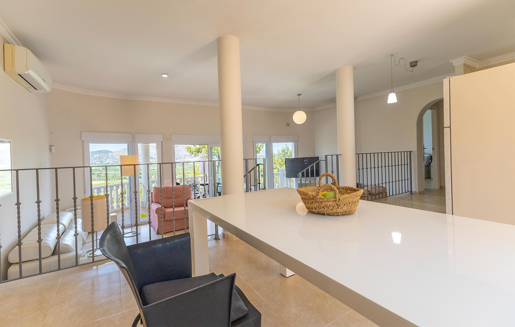 Nyt en solrik ferie i dette romslige feriehuset med basseng og fantastisk panoramautsikt.