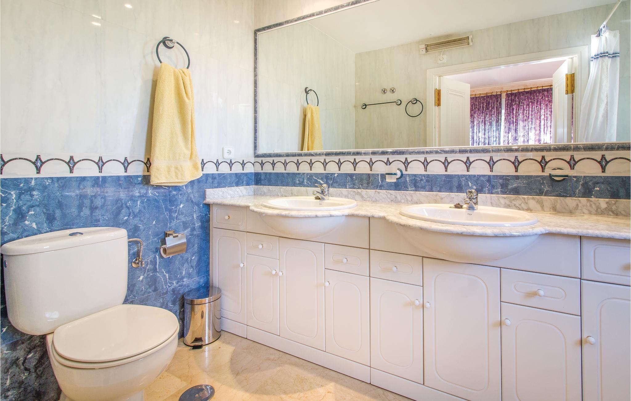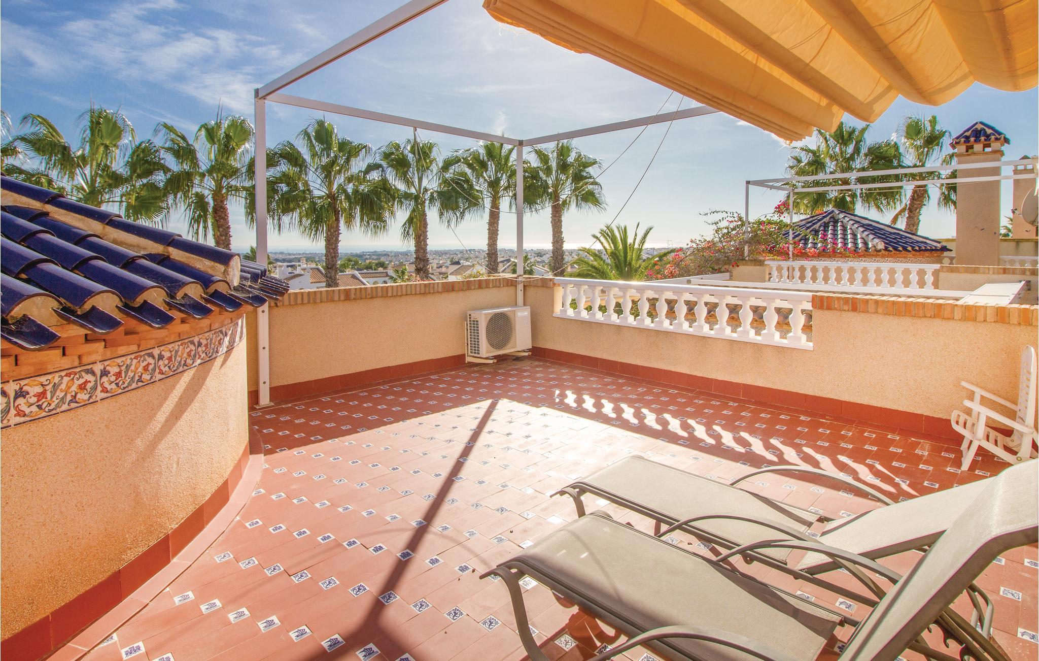 En vakker panoramautsikt over havet venter deg ved inngangen. Dette feriehuset består av to hus som er forbundet med hverandre. Med over 100 m2 terrasser på 3 nivåer (noen med markiser), saltvannsbasseng med integrert boblebad, velholdt hage og dammer, hagebar med skyggefull rotunde ved bassenget og tilhørende badstueområde, dusj og toalett. I dette huset er alt dobbelt: 4 bad, 2 kjøkken og 2 stuer forbundet med en stor stue. Parkeringsmulighet på eiendommen. Villamartin golfbane ligger i begynnelsen av veien og 3 andre i umiddelbar nærhet. Alle shoppingfasiliteter, barer og restauranter ligger i nærheten. Opplev dette unike huset med en rolig, men sentral beliggenhet! Utfluktsmuligheter: Mar Menor og La Manga, Cartagena samt universitetsbyen Murcia og palmebyen Elche. Dette huset er også veldig godt egnet for eksklusive GOLF små grupper. Den nærliggende golfspesialisten Albatross Tours (info@albatrossgolftours.com) bestiller gjerne starttider for husets gjester og tilbyr greenfee til spesialpriser på 26 golfbaner i nærheten.