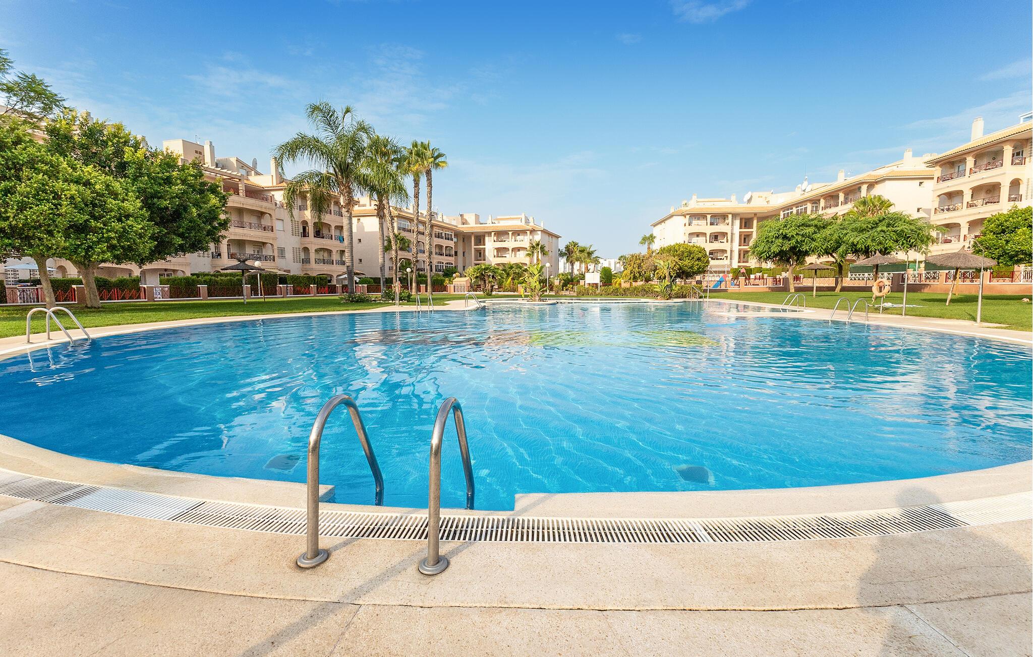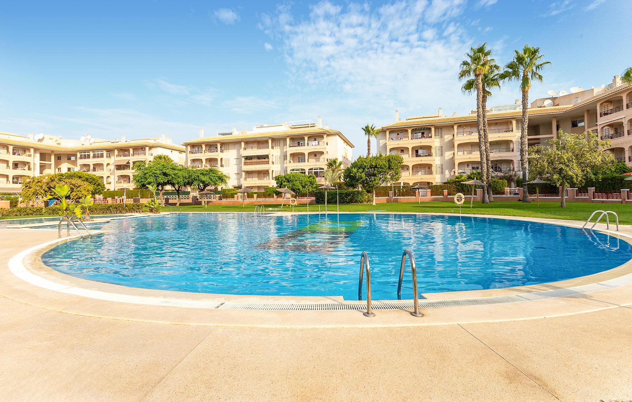 Nyt solfylte dager ikke langt fra vakre strender i denne romslige ferieleiligheten med tilgang til bassenget.