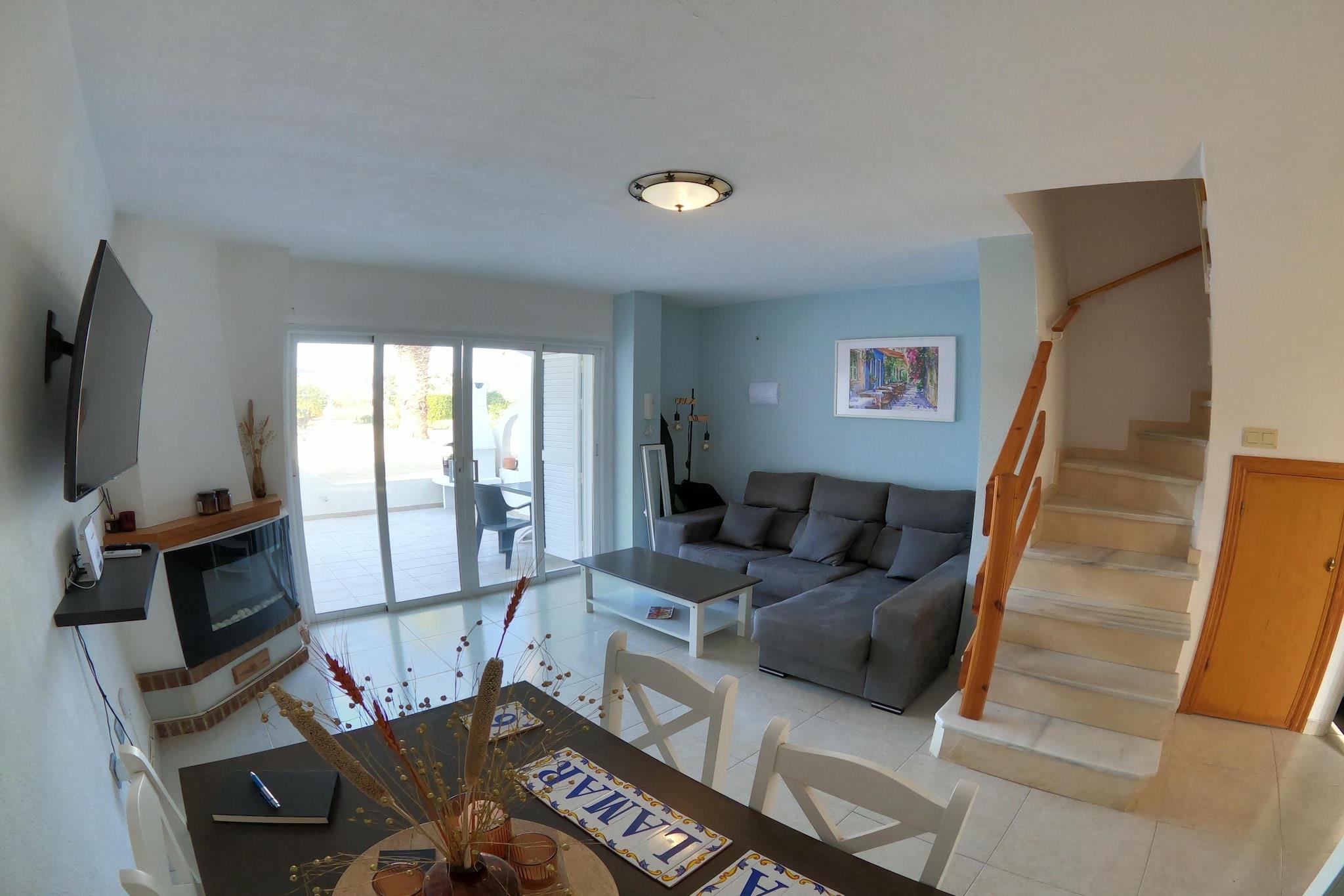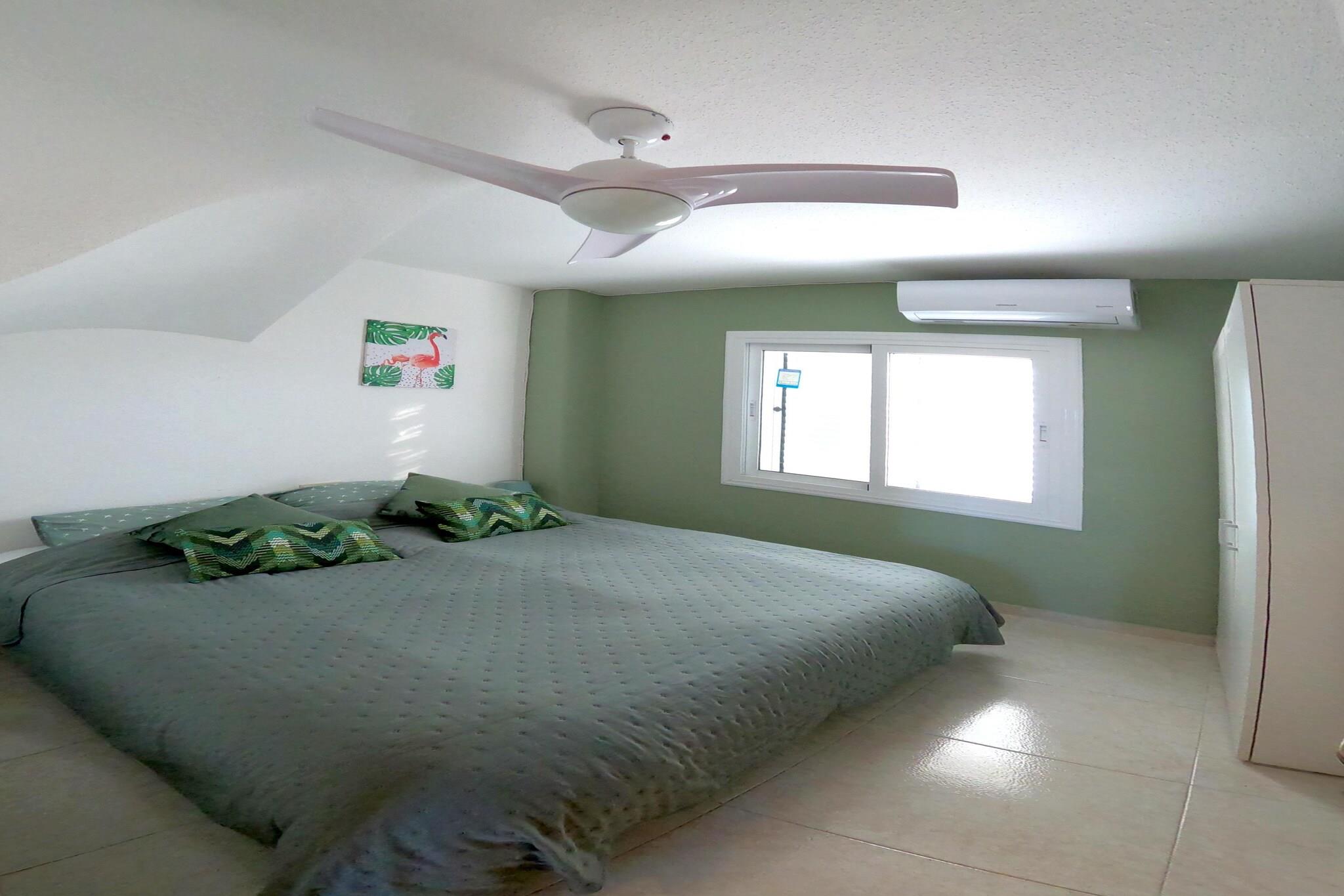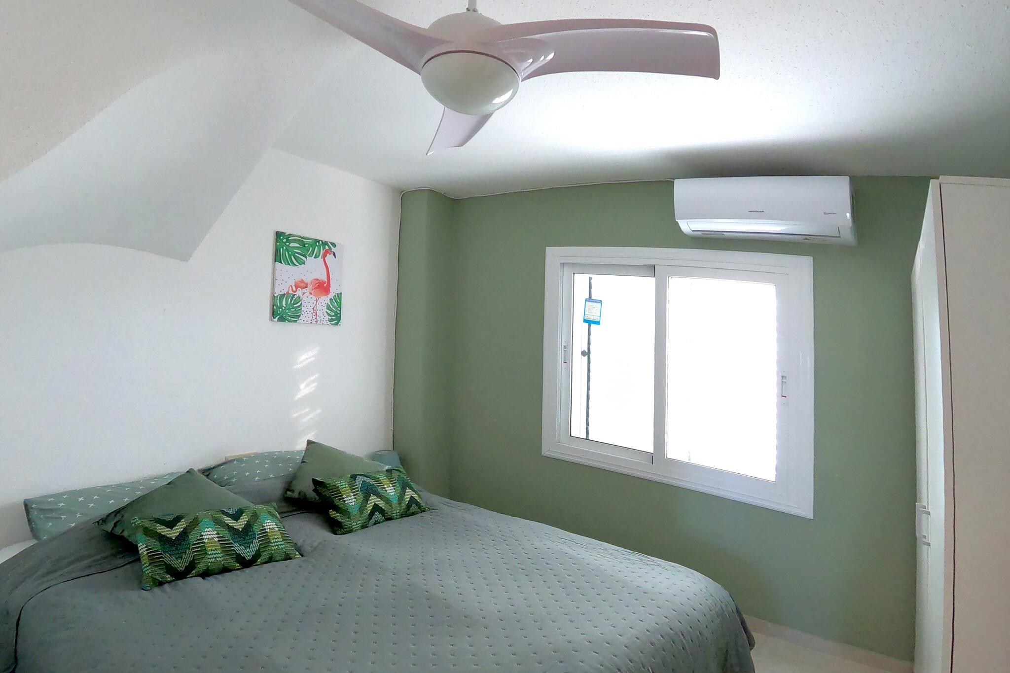 Dette vakre, velholdte rekkehuset består av 3 etasjer. Det har en sentral beliggenhet, komfortable soverom og et velutstyrt kjøkken. Alle rommene har klimaanlegg, og soverommene er også utstyrt med lampevifter. Veldig godt egnet for ferier med familie eller venner.Sandstrendene Cabo Roig og Cala Capitan er en 10-minutters spasertur unna, og La Zenia-stranden er en 15-minutters spasertur fra boligen. Det finnes mange barer og restauranter (stripen) innen 5 minutters gange fra huset, og det er 4 vakre golfbaner innen 10 minutters kjøring fra overnattingsstedet. På terrassen kan du slappe av i en av solsengene etter en ta en dukkert i det felles svømmebassenget. Badehåndklær er inkludert, og det sparer mye plass i kofferten. Det er også en dame- og herresykkel klar for deg. Transport til og fra Alicante flyplass er tilgjengelig mot en ekstra kostnad.