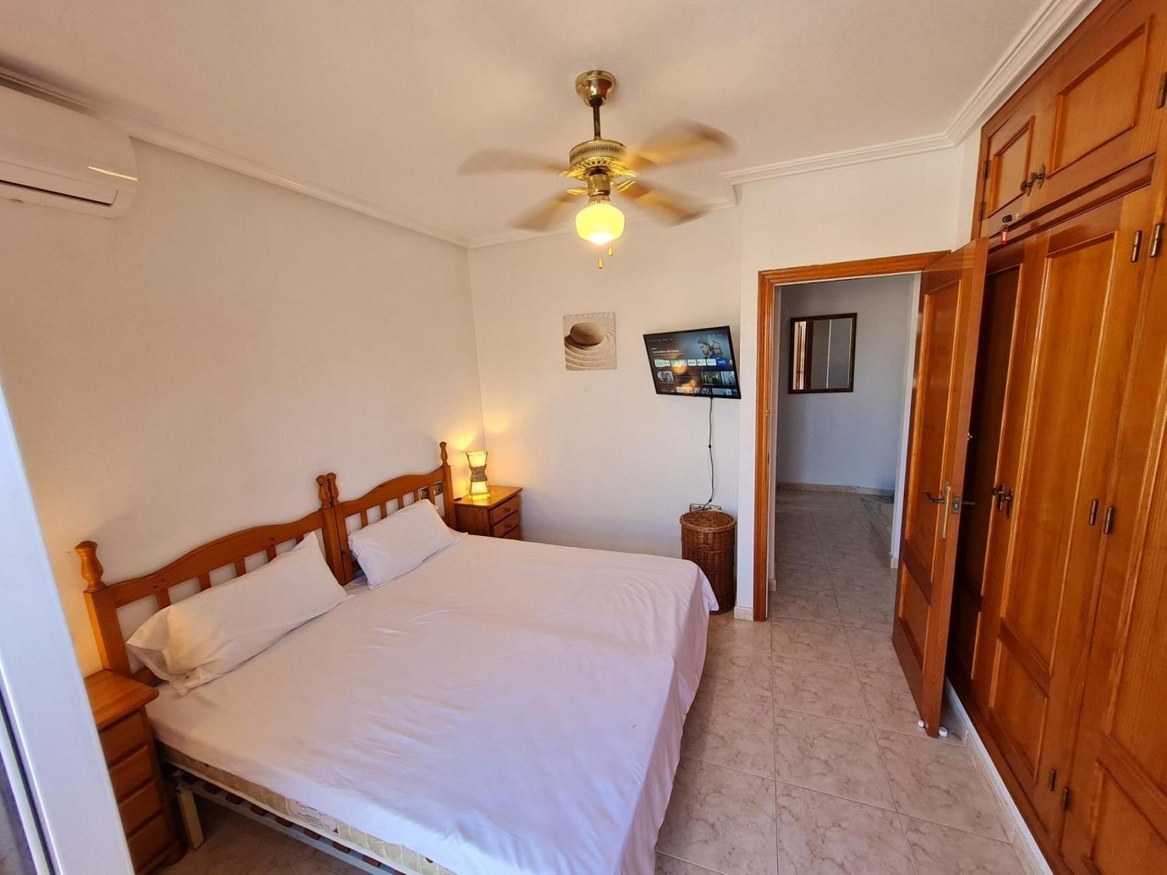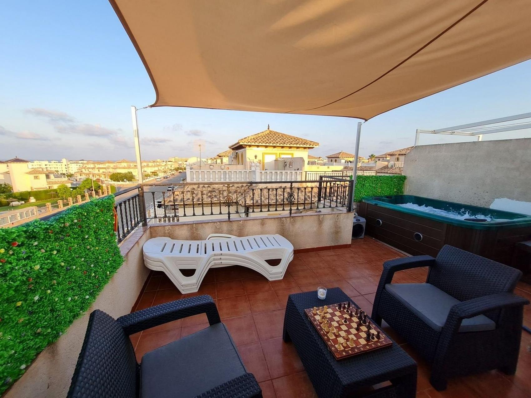 Alicante, Costa Blanca, Region Torrevieja - La Zenia, La Regia bei Cabo Roig60km südlich vom Flughafen AlicanteDas Haus liegt in einer sehr Ruhigen Urbanisation.An einer breiten Straße, die KEINE Durchgangsstraße ist -also extrem wenig Verkehr! Damit ist der Ausblick sehr schönund auch die Privatsphäre gewahrt ;)Fußläufig zum sehr schönen, feinsandigen Strand (1.2km Wegstrecke)und zu Supermärkten (ca.1km) und La Zenia Boulevard Einkaufszentrum (ca.1.2km).Ein kleiner Hund ist auch herzlich willkommen.Rauchen bitte nur außerhalb des Hauses.Der Pool ist ganzjährig geöffnet.Unsere Fahrräder können gerne genutzt werden.Das Haus verfügt über 3 EtagenHochparterre:großer Wohn- / Essbereich mit Küche und KlimaanlageGäste WC1. ObergeschossHauptschlafzimmer mit Doppelbett, Klimaanlage und BalkonSchlafzimmer mit 2 EinzelbettenBadezimmer2. Obergeschoss / SolariumPrivate Dachterrasse mit entferntem MeerblickDer Pool ist ggü. auf der anderen Straßenseite.Das Haus hat Nord-Ost Ausrichtung.Sonne kann ganztägig auf dem Solarium (Dachterrasse) genossen werden.Wlan ist vorhanden, es kommen ca. 270Mb über 5G Wlan an.Der TV ist neu und smart (kann eure Abos streamen) und hat Kabel mit vielen intl. Sendern. https://olecomunicacion.net/wp-content/uploads/2021/03/TV-OLE-2021.pdfEin beheizbarer Außen-Whirlpool ist auf dem Solarium installiert.