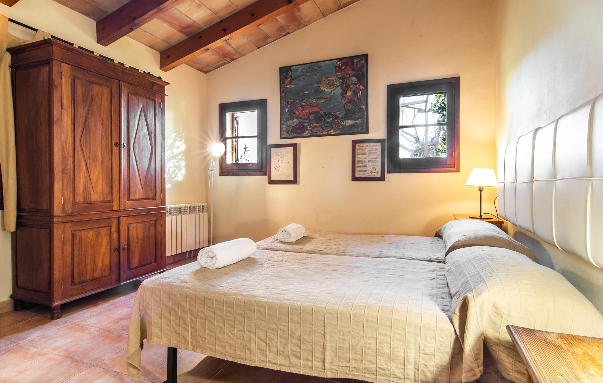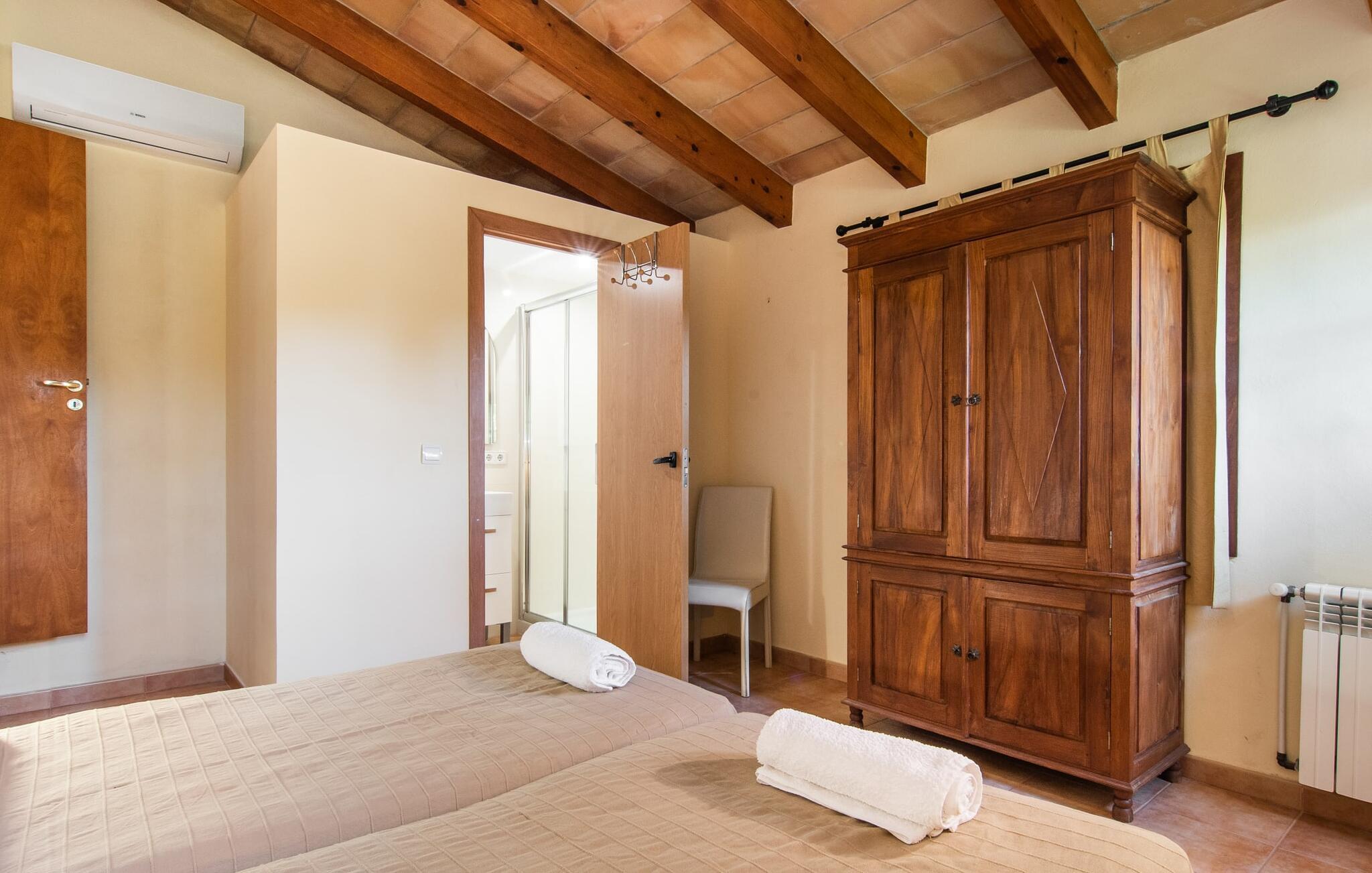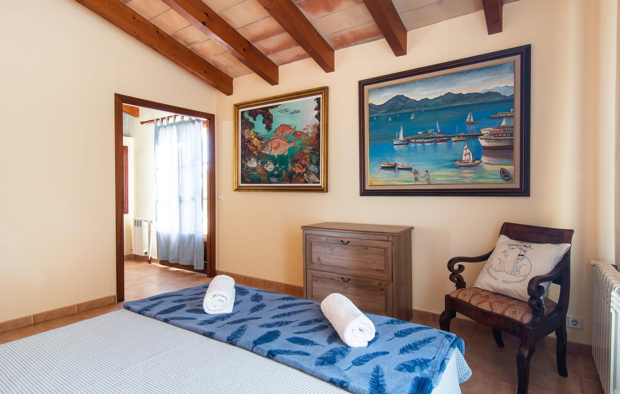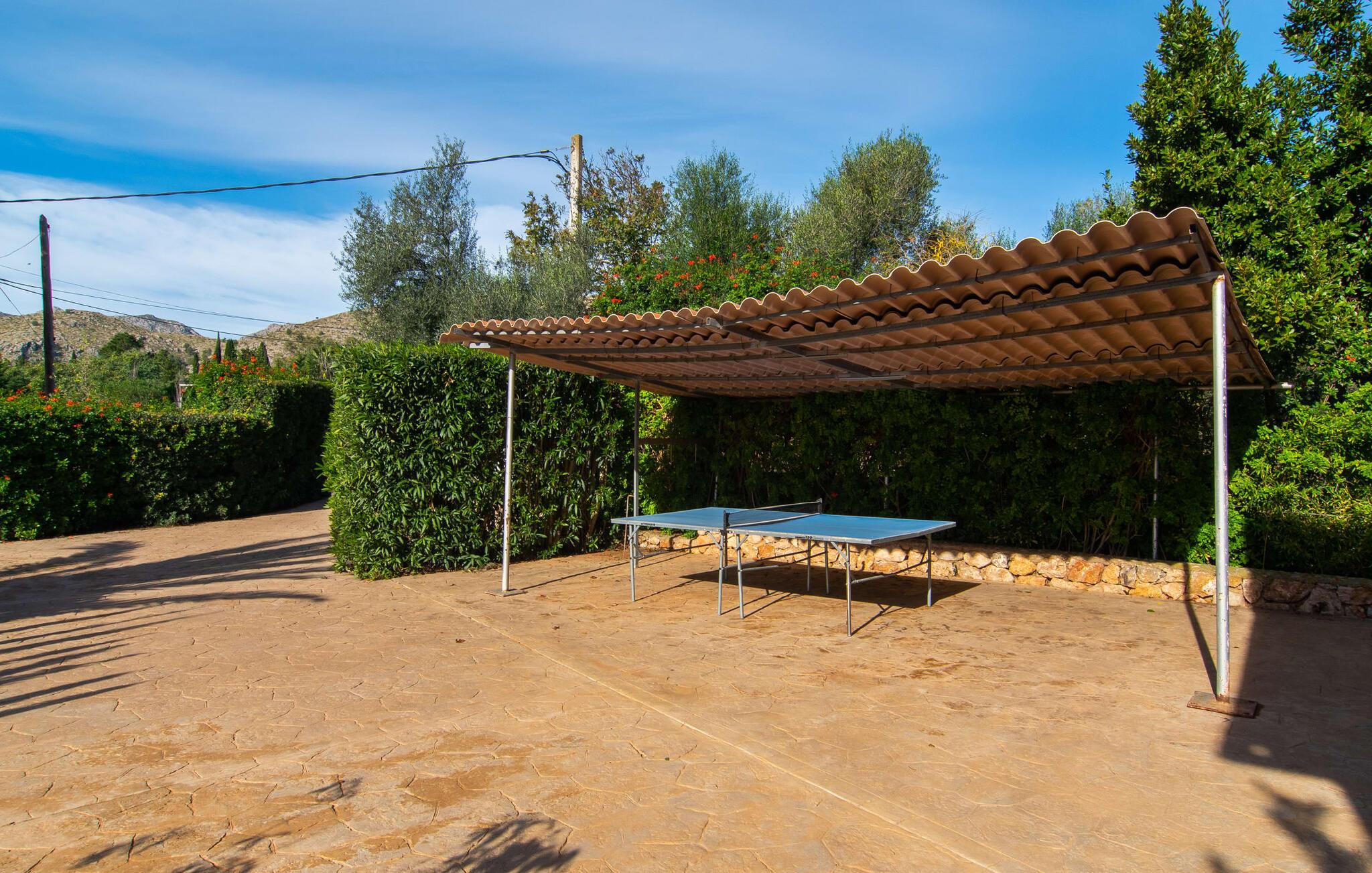 Interiøret i huset byr på en rekke fasiliteter. Terakottafliser, lyse vegger, en delvis åpen planløsning og kjærlig arrangert tilbehør sørger for en høy grad av hygge. Stuen og spisestuen flyter sømløst over i hverandre. Peisen er plassert sentralt mellom disse områdene og sørger for ekstra hygge på kjølige kvelder. Det fullt utstyrte kjøkkenet er ideelt for selvhushold og har til og med plass til et ekstra bord. Serveringsluken til den andre spiseplassen er spesielt praktisk. I første etasje er det også to soverom med dobbeltseng og to bad, hvorav det ene har eget bad. I andre etasje er det ytterligere to soverom med dobbeltseng og to bad. Dette betyr at du kan nyte maksimal privatliv i Osfort-gården. Alle soverommene er utstyrt med klimaanlegg, noe som garanterer behagelig varme netter selv midt på sommeren. Biljardbordet i øverste etasje sørger for underholdning. Den landlige og rolige Osfort-gården ligger mellom Pollença og Port de Pollença i den attraktive nordlige delen av Mallorca. Den er omgitt av et fantastisk grønt, privat område. Port de Pollença med sin vakre marina og hvite sandstrand ligger bare ca. 8 minutter unna med bil. Der finner du også flere restauranter, barer og mange fritidsaktiviteter.