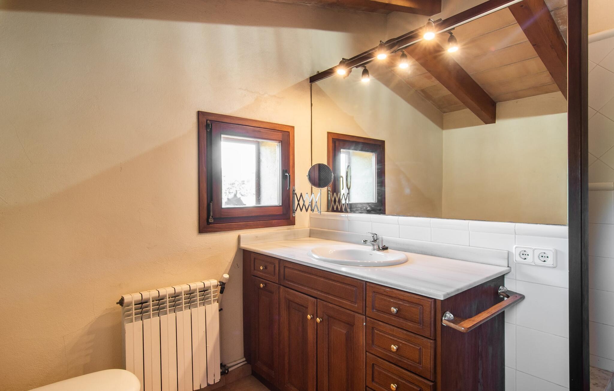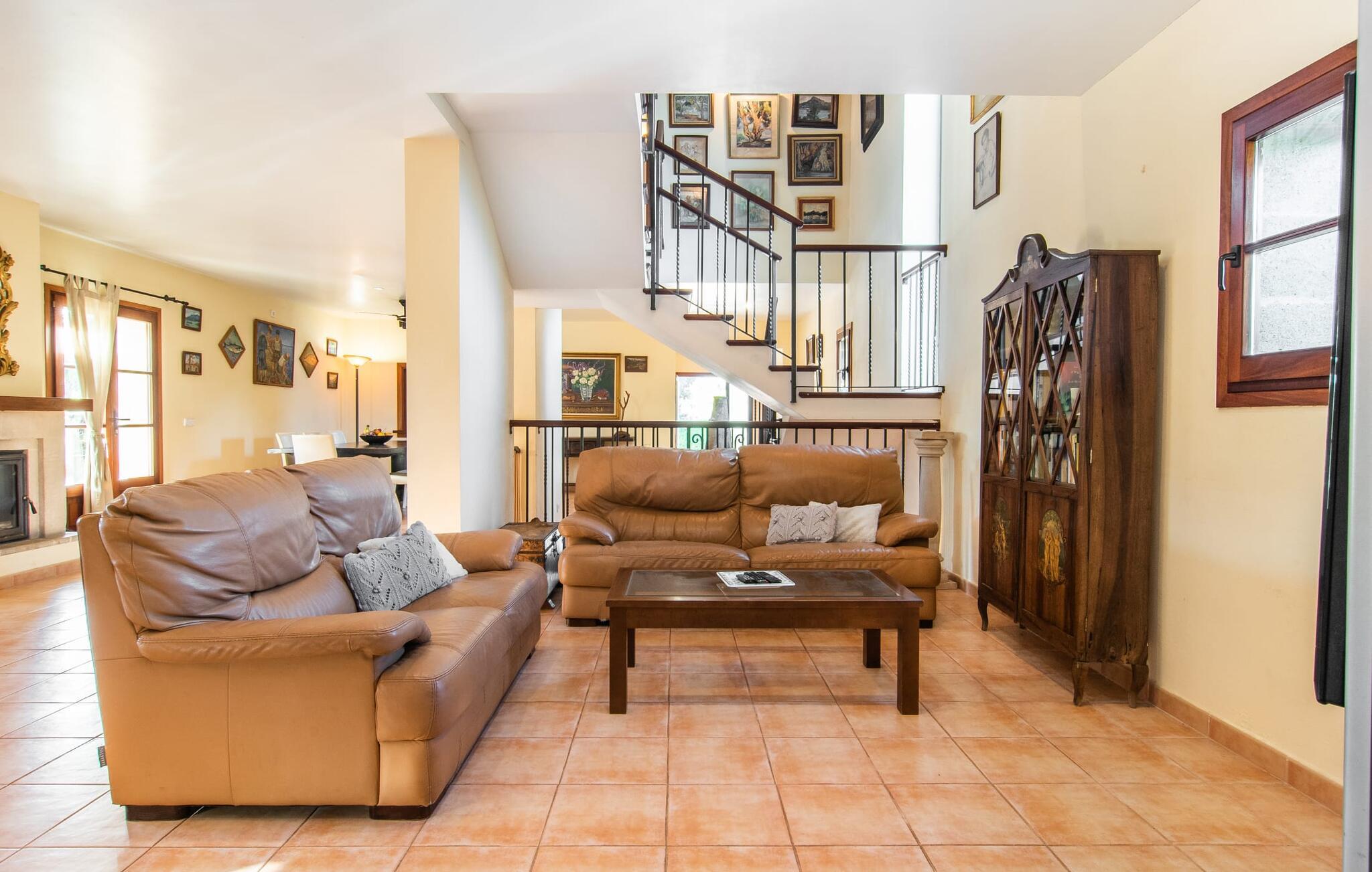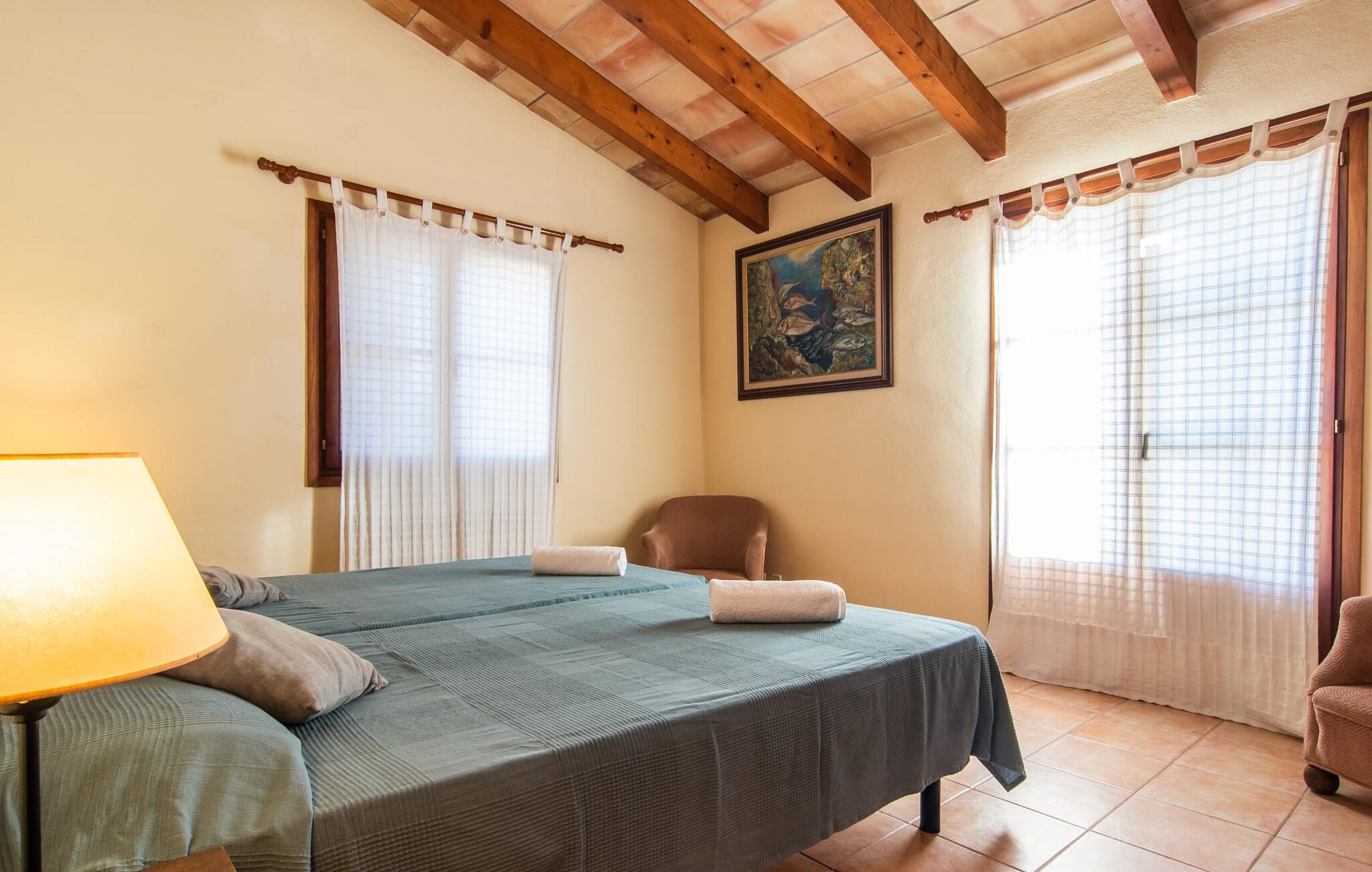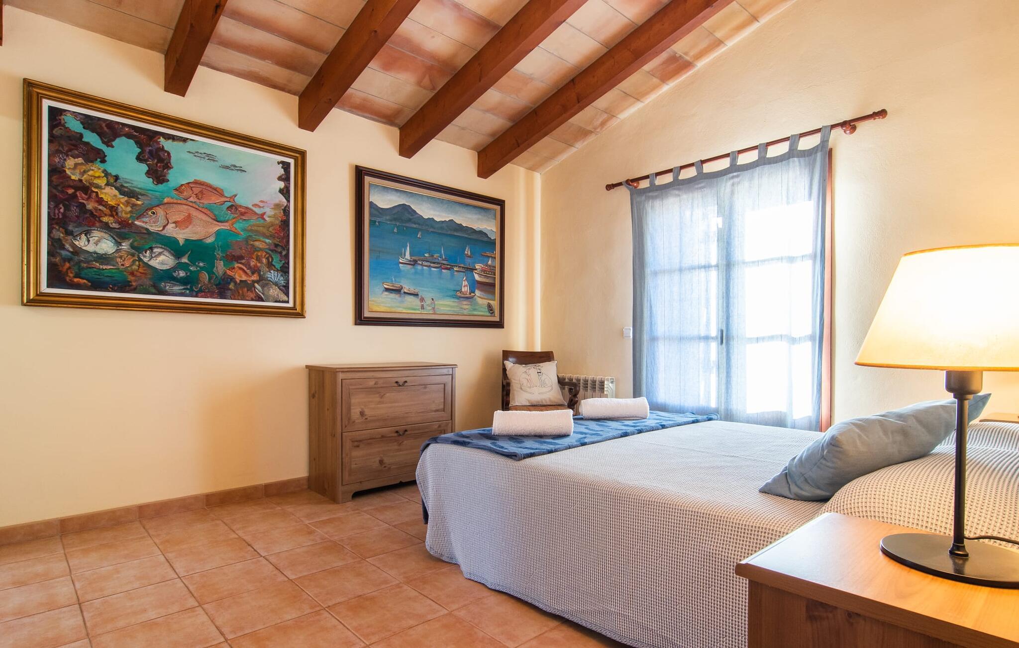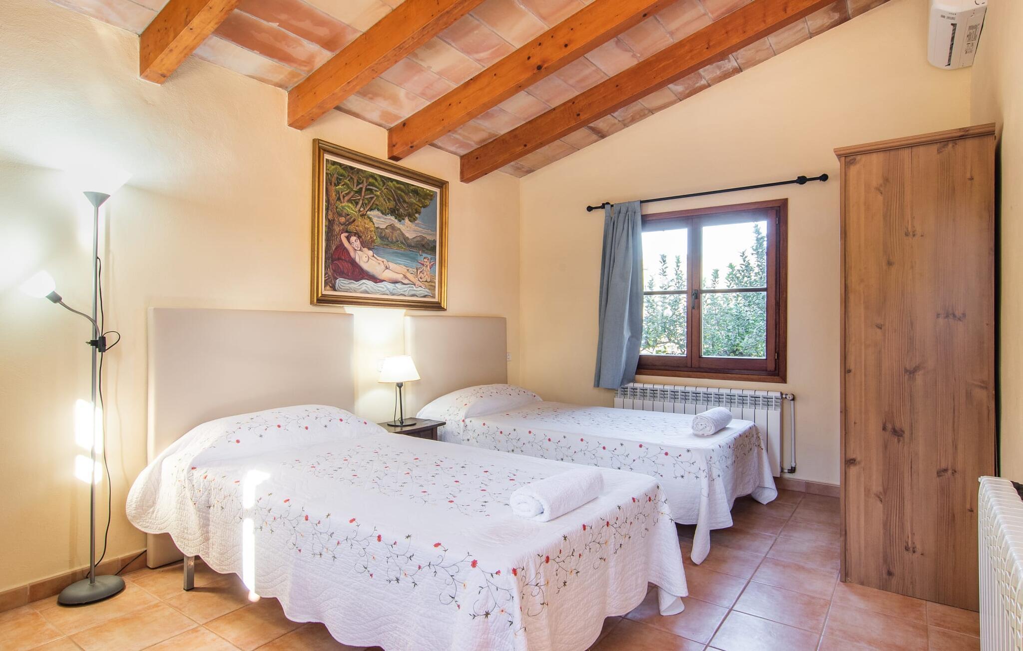 Interiøret i huset byr på en rekke fasiliteter. Terakottafliser, lyse vegger, en delvis åpen planløsning og kjærlig arrangert tilbehør sørger for en høy grad av hygge. Stuen og spisestuen flyter sømløst over i hverandre. Peisen er plassert sentralt mellom disse områdene og sørger for ekstra hygge på kjølige kvelder. Det fullt utstyrte kjøkkenet er ideelt for selvhushold og har til og med plass til et ekstra bord. Serveringsluken til den andre spiseplassen er spesielt praktisk. I første etasje er det også to soverom med dobbeltseng og to bad, hvorav det ene har eget bad. I andre etasje er det ytterligere to soverom med dobbeltseng og to bad. Dette betyr at du kan nyte maksimal privatliv i Osfort-gården. Alle soverommene er utstyrt med klimaanlegg, noe som garanterer behagelig varme netter selv midt på sommeren. Biljardbordet i øverste etasje sørger for underholdning. Den landlige og rolige Osfort-gården ligger mellom Pollença og Port de Pollença i den attraktive nordlige delen av Mallorca. Den er omgitt av et fantastisk grønt, privat område. Port de Pollença med sin vakre marina og hvite sandstrand ligger bare ca. 8 minutter unna med bil. Der finner du også flere restauranter, barer og mange fritidsaktiviteter.