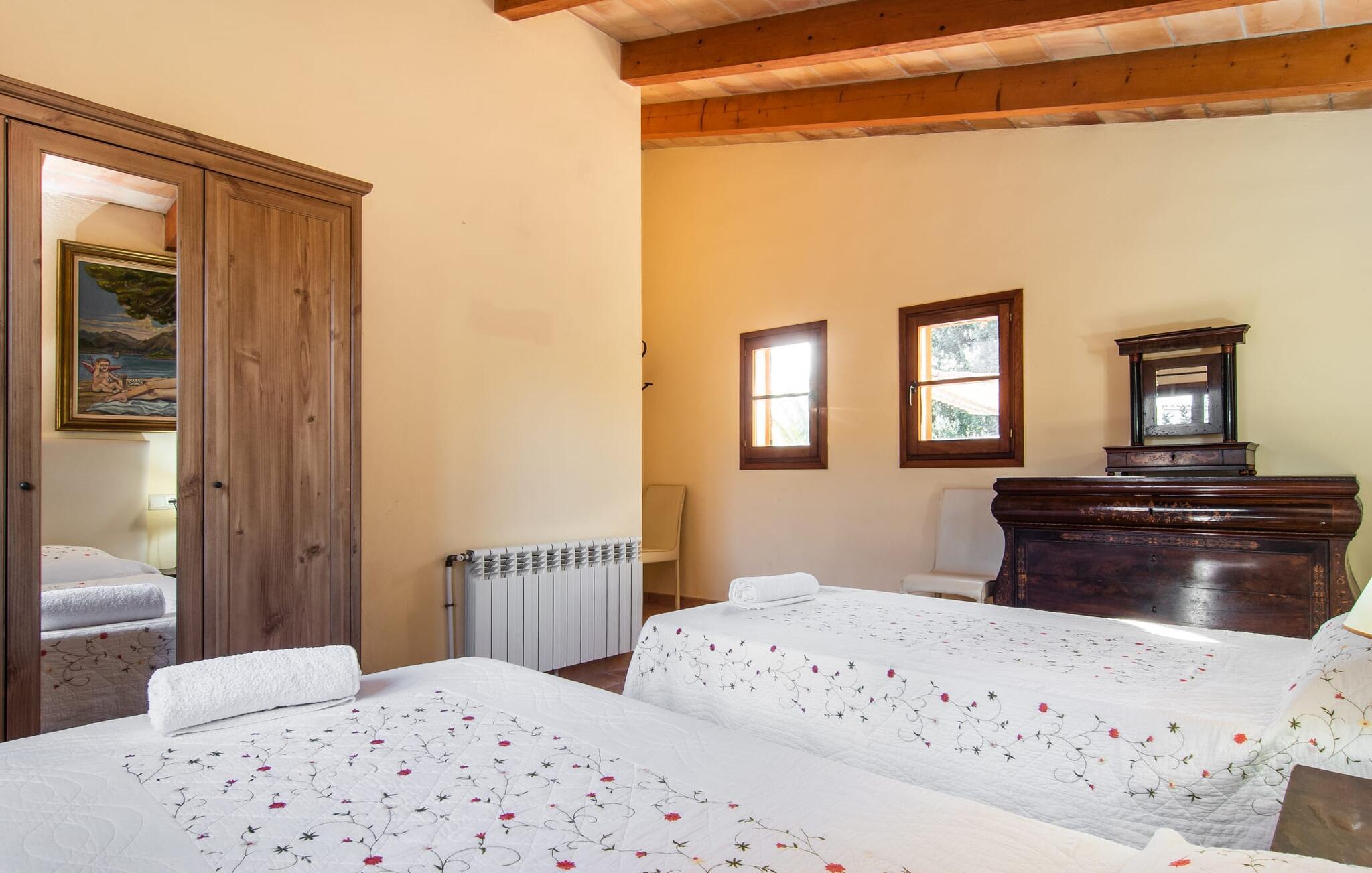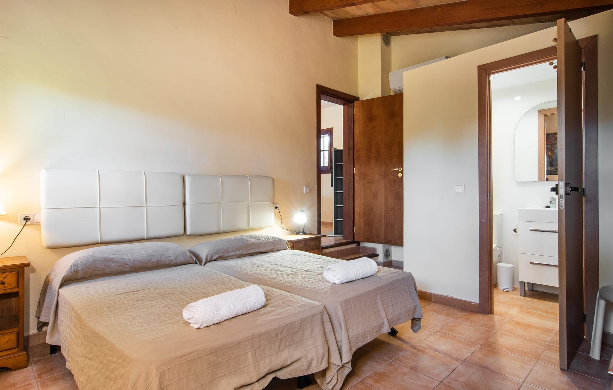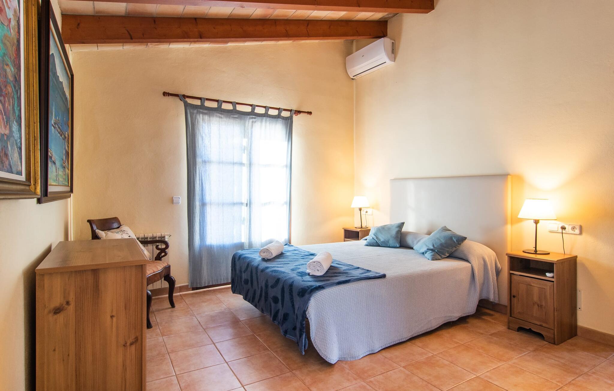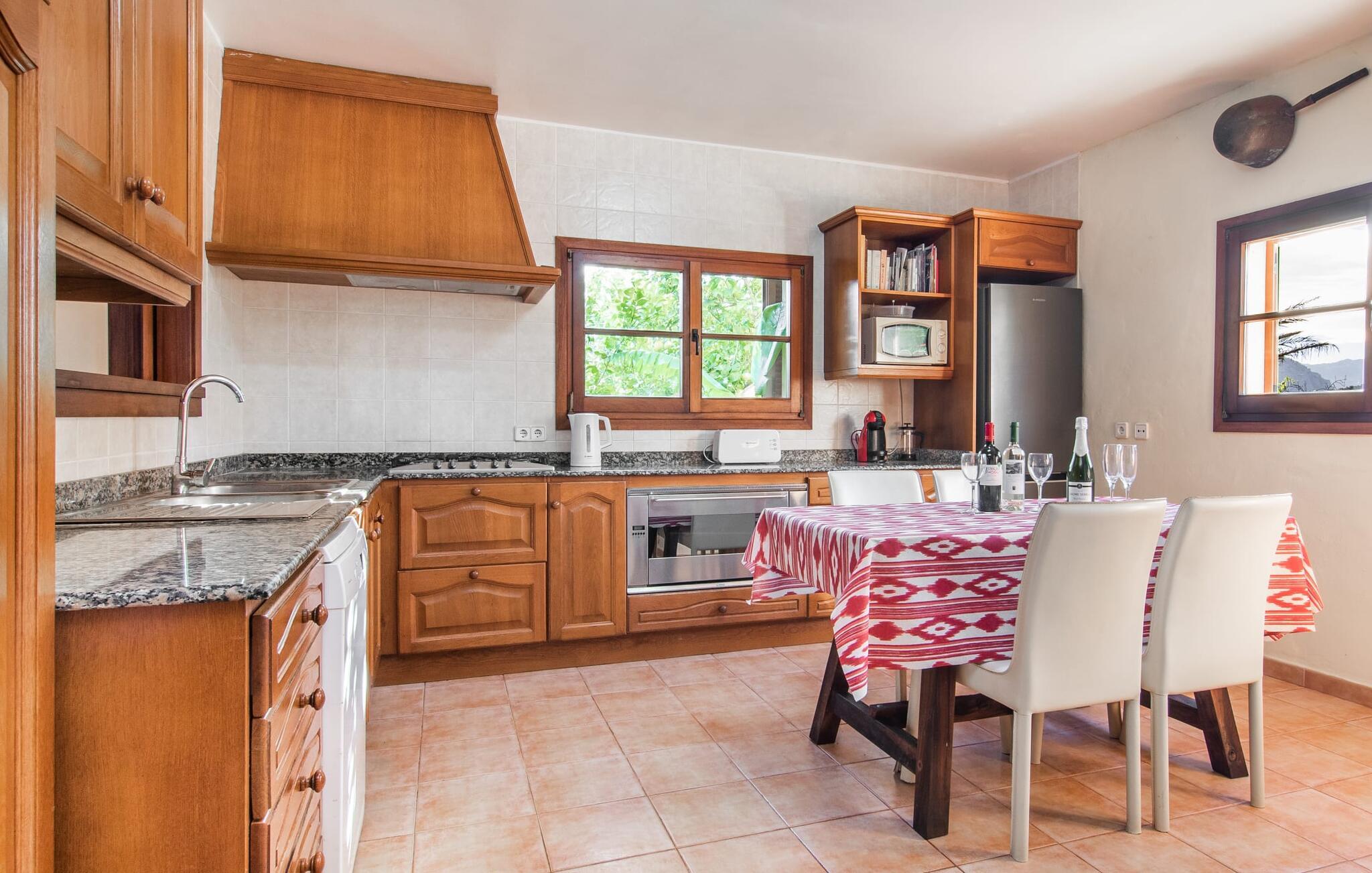 Interiøret i huset byr på en rekke fasiliteter. Terakottafliser, lyse vegger, en delvis åpen planløsning og kjærlig arrangert tilbehør sørger for en høy grad av hygge. Stuen og spisestuen flyter sømløst over i hverandre. Peisen er plassert sentralt mellom disse områdene og sørger for ekstra hygge på kjølige kvelder. Det fullt utstyrte kjøkkenet er ideelt for selvhushold og har til og med plass til et ekstra bord. Serveringsluken til den andre spiseplassen er spesielt praktisk. I første etasje er det også to soverom med dobbeltseng og to bad, hvorav det ene har eget bad. I andre etasje er det ytterligere to soverom med dobbeltseng og to bad. Dette betyr at du kan nyte maksimal privatliv i Osfort-gården. Alle soverommene er utstyrt med klimaanlegg, noe som garanterer behagelig varme netter selv midt på sommeren. Biljardbordet i øverste etasje sørger for underholdning. Den landlige og rolige Osfort-gården ligger mellom Pollença og Port de Pollença i den attraktive nordlige delen av Mallorca. Den er omgitt av et fantastisk grønt, privat område. Port de Pollença med sin vakre marina og hvite sandstrand ligger bare ca. 8 minutter unna med bil. Der finner du også flere restauranter, barer og mange fritidsaktiviteter.
