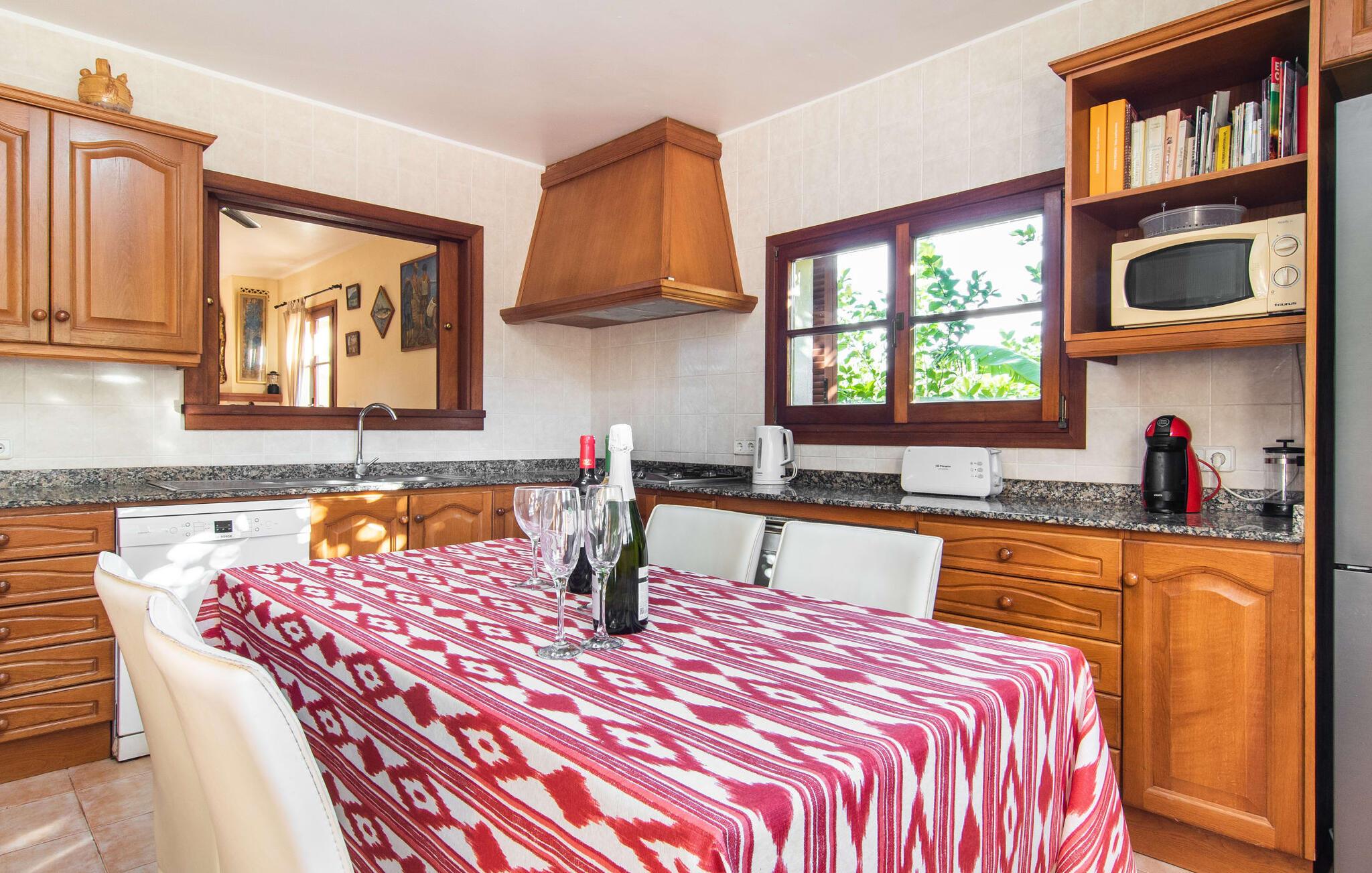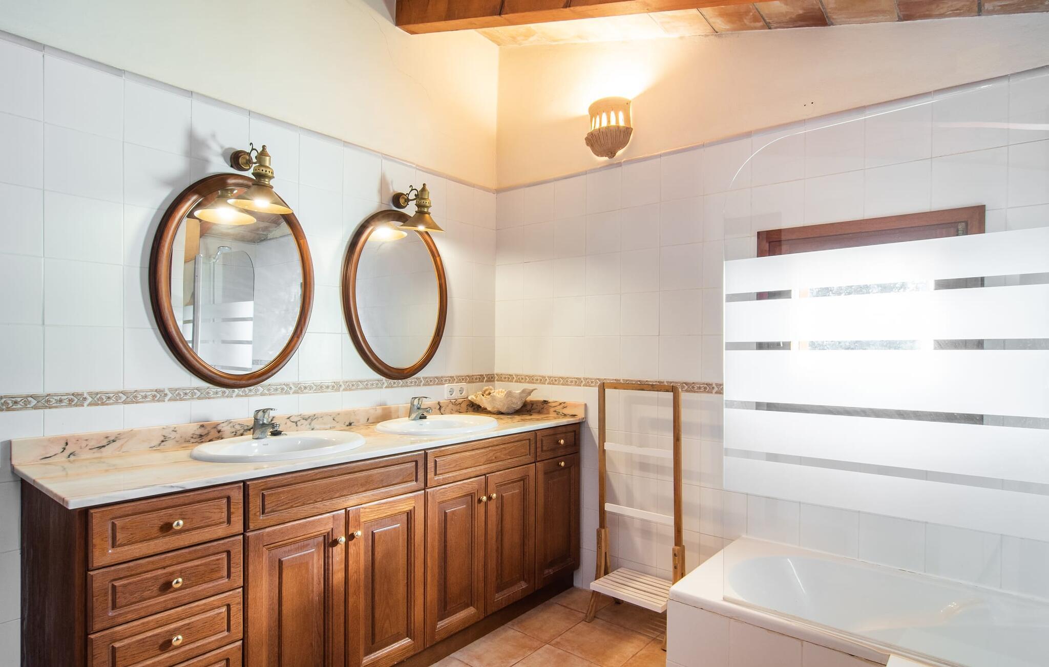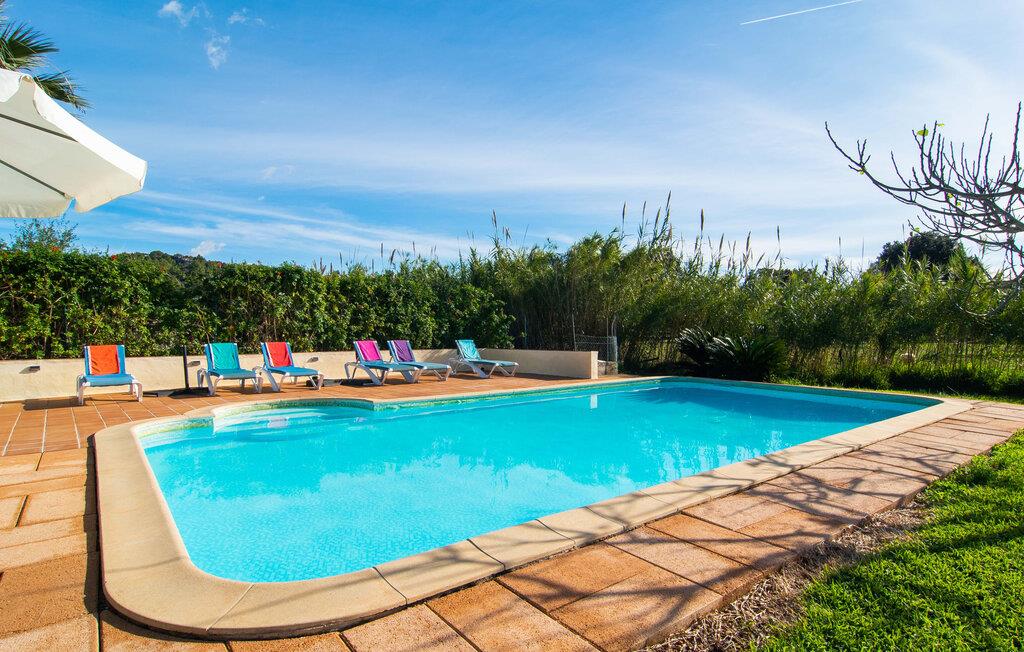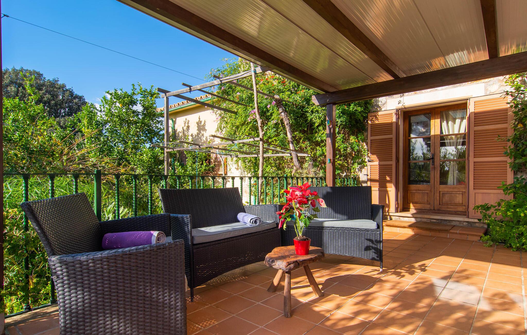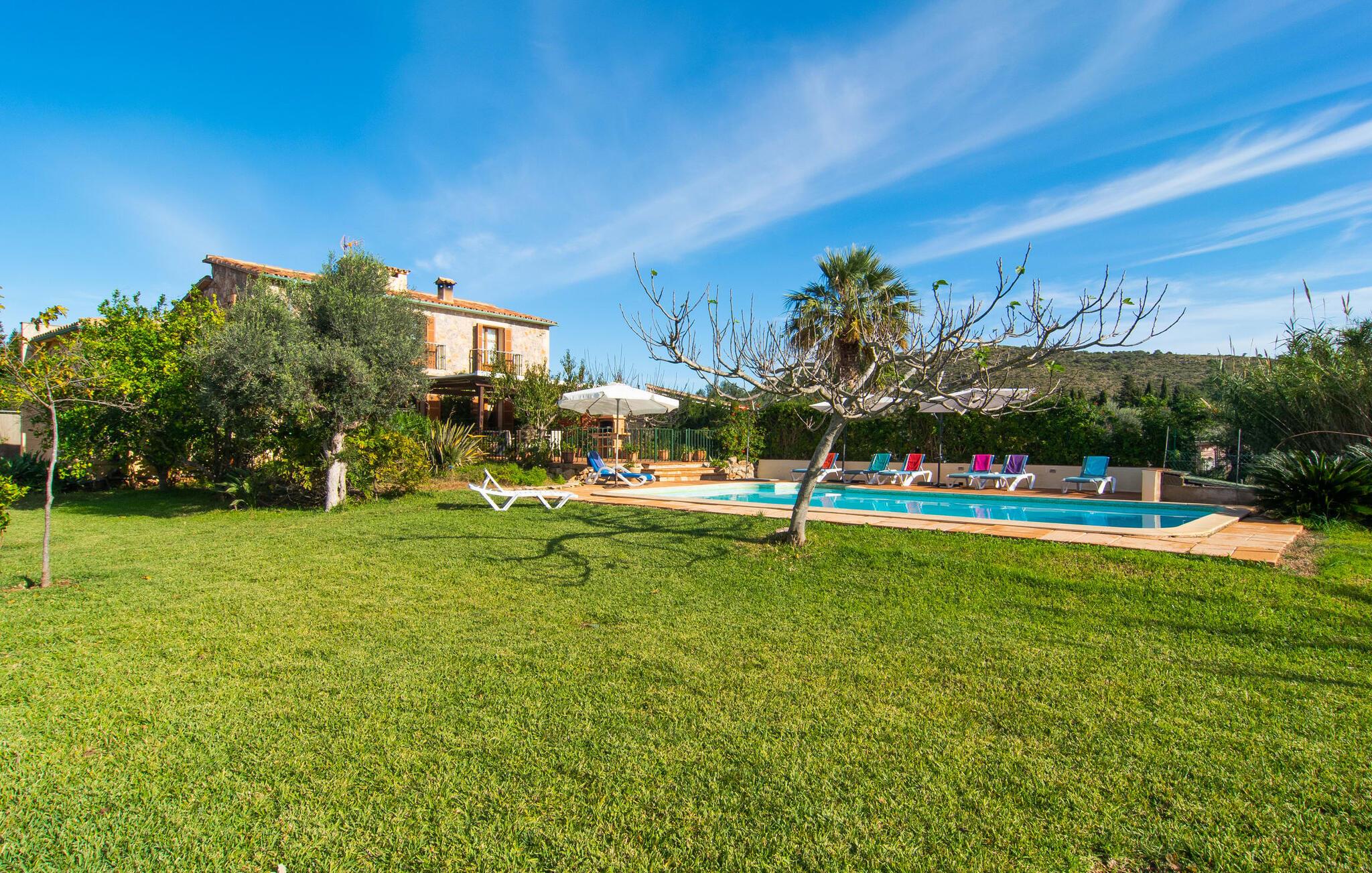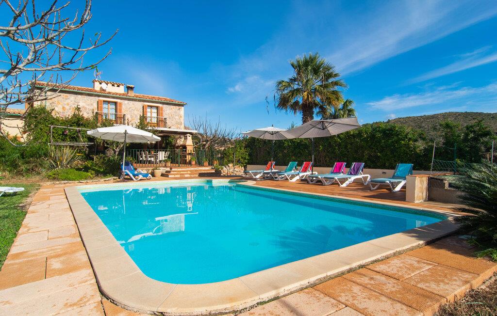 Dette vakre, velutstyrte landstedet på Mallorca er ideelt for familier som ønsker fred og ro med havet like i nærheten. Her bor du i et variert landskap og kan nyte en inngrodd eiendom med middelhavsvegetasjon og noen gamle trær. Solplenen er et attraktivt leke- og tumleområde for barn som reiser sammen med dere. Bassenget er selvfølgelig ikke bare tilgjengelig for sporty svømmeturer, men også for plasking. Ved behov kan tilgangen stenges av slik at det er barnesikkert. Bassenget er spesielt lett å nå via en trapp. På den tilstøtende terrassen er det rikelig med solsenger for avslappende timer under middelhavshimmelen. Den delvis overbygde verandaen ligger litt opphøyet og innbyr til sosialt samvær med spisebord og salong. Grillen inviterer deg til å tilbringe mesteparten av tiden utendørs i de varmere månedene.