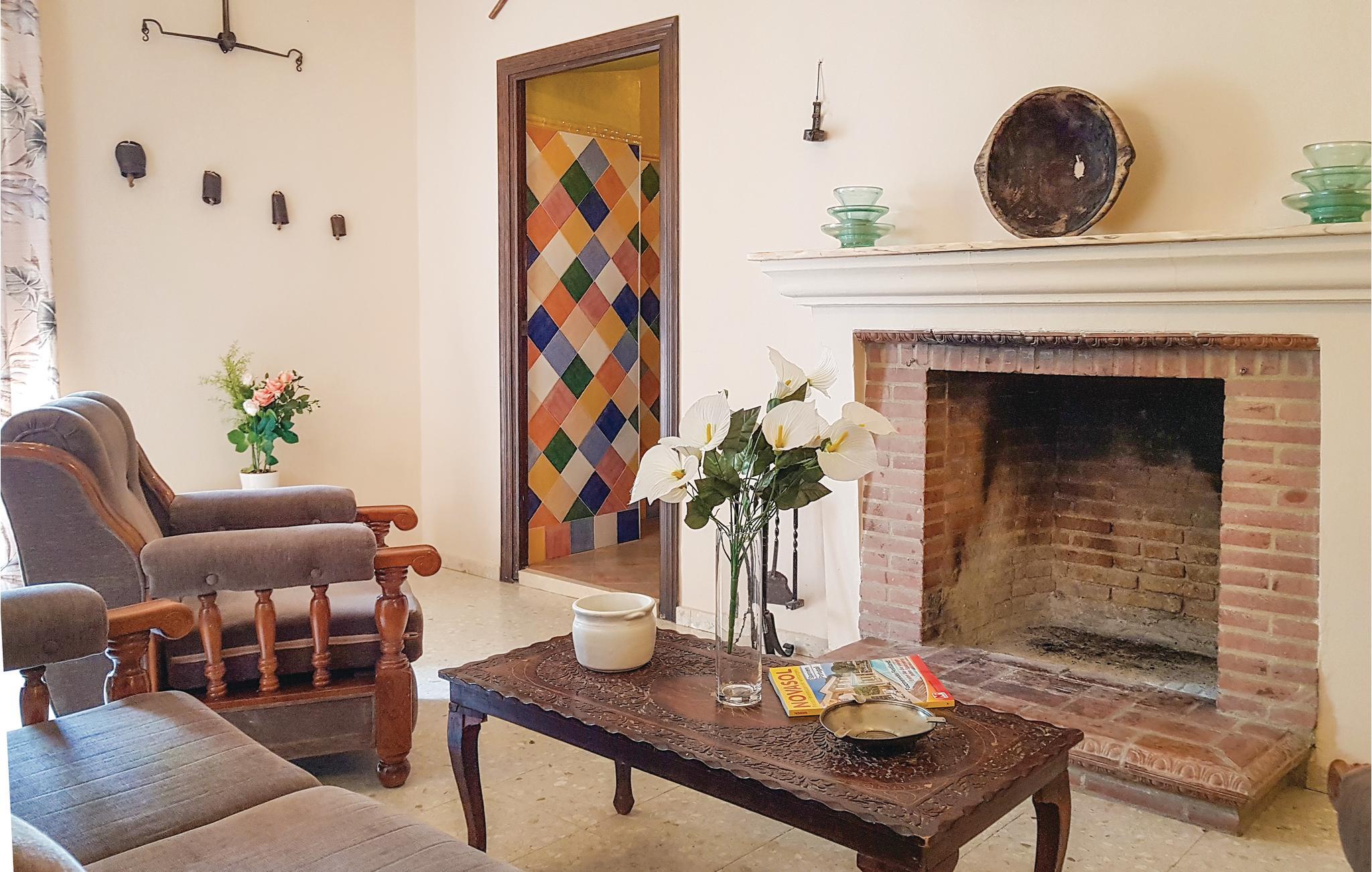 Huset er rustikt innredet i andalusisk stil og tilbyr 2 soverom med dobbeltseng og ytterligere 3 soverom med enkeltsenger. Alle rommene er romslige og lyse. Huset har også 2 bad, det ene med dusj og det andre med badekar. Den koselige stuen er utstyrt med klimaanlegg, og alle rommene har radiatorer for vintermånedene. Ved siden av det fullt utstyrte kjøkkenet er det en stor spisestue med uttrekkbart bord, og peisen i stuen med sofaer, TV og lesehjørne skaper en hyggelig atmosfære.
