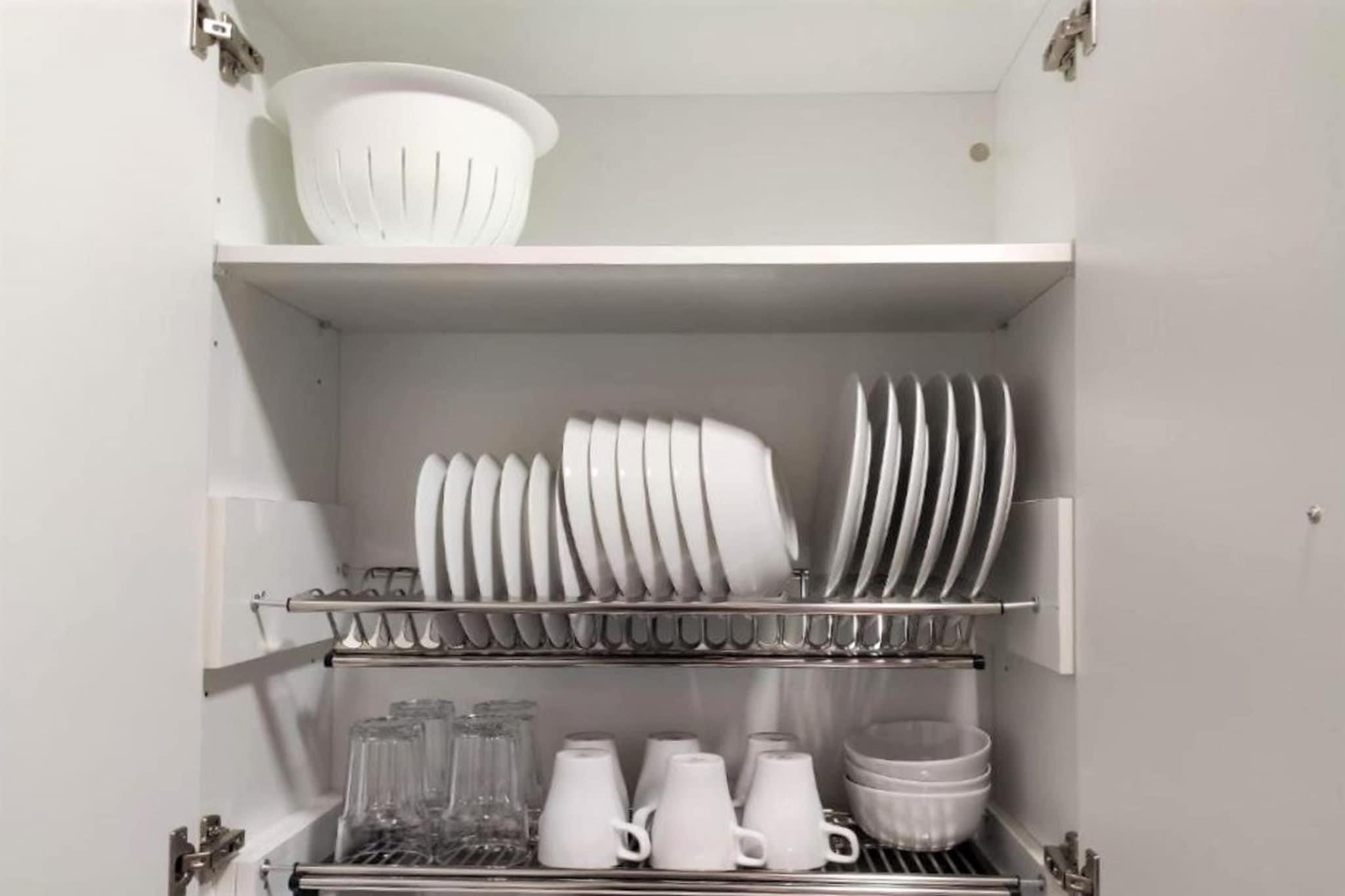 Første etasje: (Inngang(tilgjengelig fra utsiden), heis) i 5. etasje: (Inngang, Stue(dobbel sovesofa(120 x 200 cm), TV(flatskjerm, Smart-TV), spisebord, sittehjørne), Kjøkken(komfyr med kokeplater, brødrister, kjøkkenvifte, kaffetrakter, stekovn, mikrobølgeovn, oppvaskmaskin, kjøleskap med fryser, Juicemaskin), soveværelse(dobbeltseng(150 x 200 cm)), soveværelse(enkeltseng(90 x 200 cm)), bad(dusj, håndvask, toalett, Hårtørker), bad(håndvask, toalett, vaskemaskin), oppvarming, klimaanlegg, terrasse(privat, 3 m2)) gårdhave, parkering