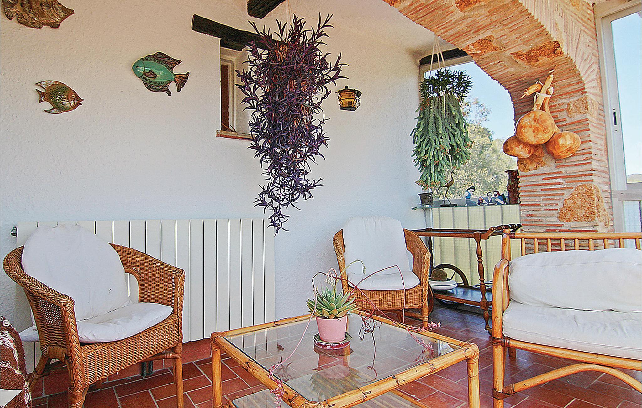 Alle vil finne sitt favorittsted i dette herlige feriehuset med en allsidig atmosfære. I den sjarmerende hagen finner du et vakkert basseng og solsenger, samt et område omkranset av vinranker med steinbenker for koselige sammenkomster. Det er også en veranda med lenestoler og en annen med et stort bord hvor du kan spise sammen mens du nyter utsikten over det fjerne havet. I tillegg er det en mursteinsgrill og en innglasset terrasse hvor du kan nyte den vakre utsikten selv når du er beskyttet mot været. Huset ligger i en bosetning midt i fjellene og ligger bare 1 km fra stranden. Eieren, som bor i samme hus, har en hund.