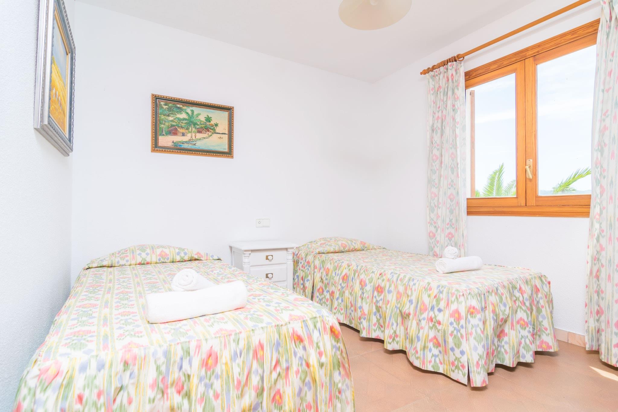Start dagen med en forfriskende svømmetur i saltvannsbassenget (8 x 4 m, 1,5 m dypt), og nyt deilige grillmåltider under verandaen med utsikt over bassenget. Slapp av på en av seks solsenger i den inngjerdede hagen omgitt av rolige naboer. Denne enetasjes boligen har gass-sentralvarme, en koselig stue med satellitt-TV og vedovn for kaldere dager, og en åpen spisestue med et solid bord. Det uavhengige kjøkkenet har gasskomfyr, pantry og frokostbord. Vaskefasiliteter inkluderer vaskemaskin, strykejern og brett. Det er tre soverom, hver med to enkeltsenger, klimaanlegg og garderober. Badet har badekar. Barneseng og barnestol er tilgjengelig. Ligger like utenfor Palma sentrum med enkel tilgang til motorveien og en bussholdeplass 800 meter unna. Illetes-stranden ligger 10 km unna. Parkering for 4 biler. Kjæledyr og arrangementer er ikke tillatt.