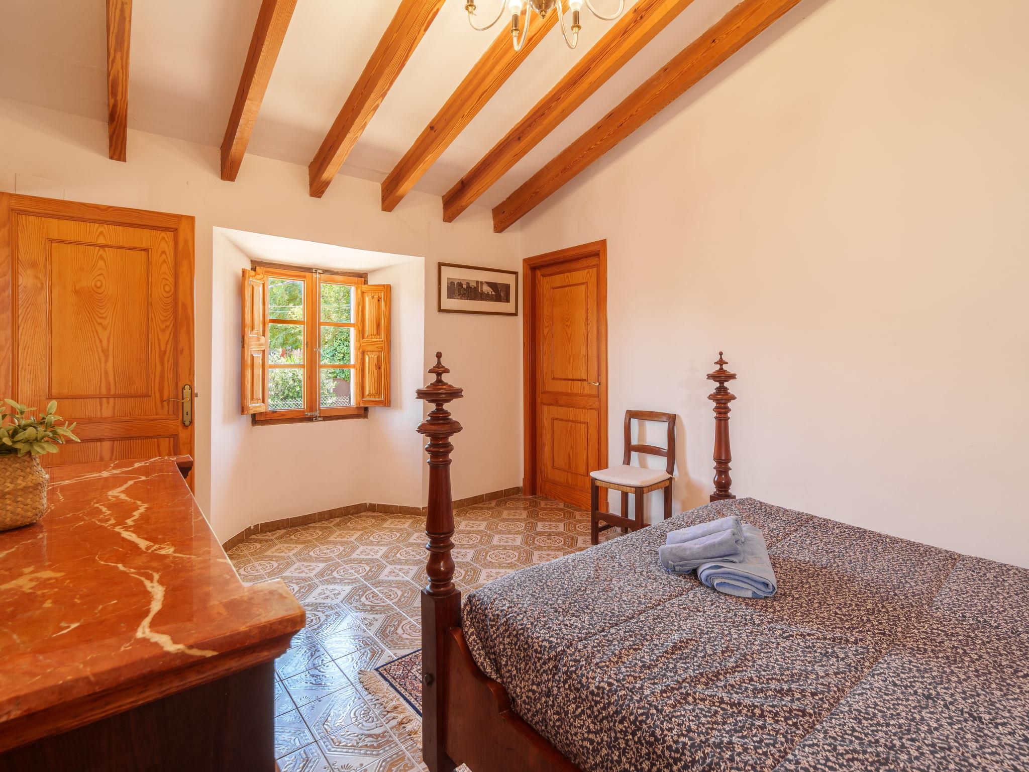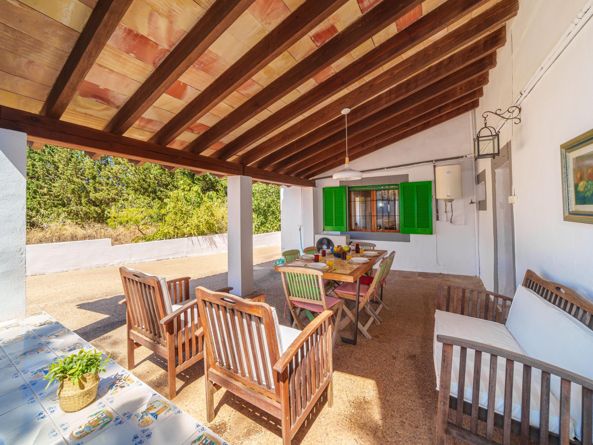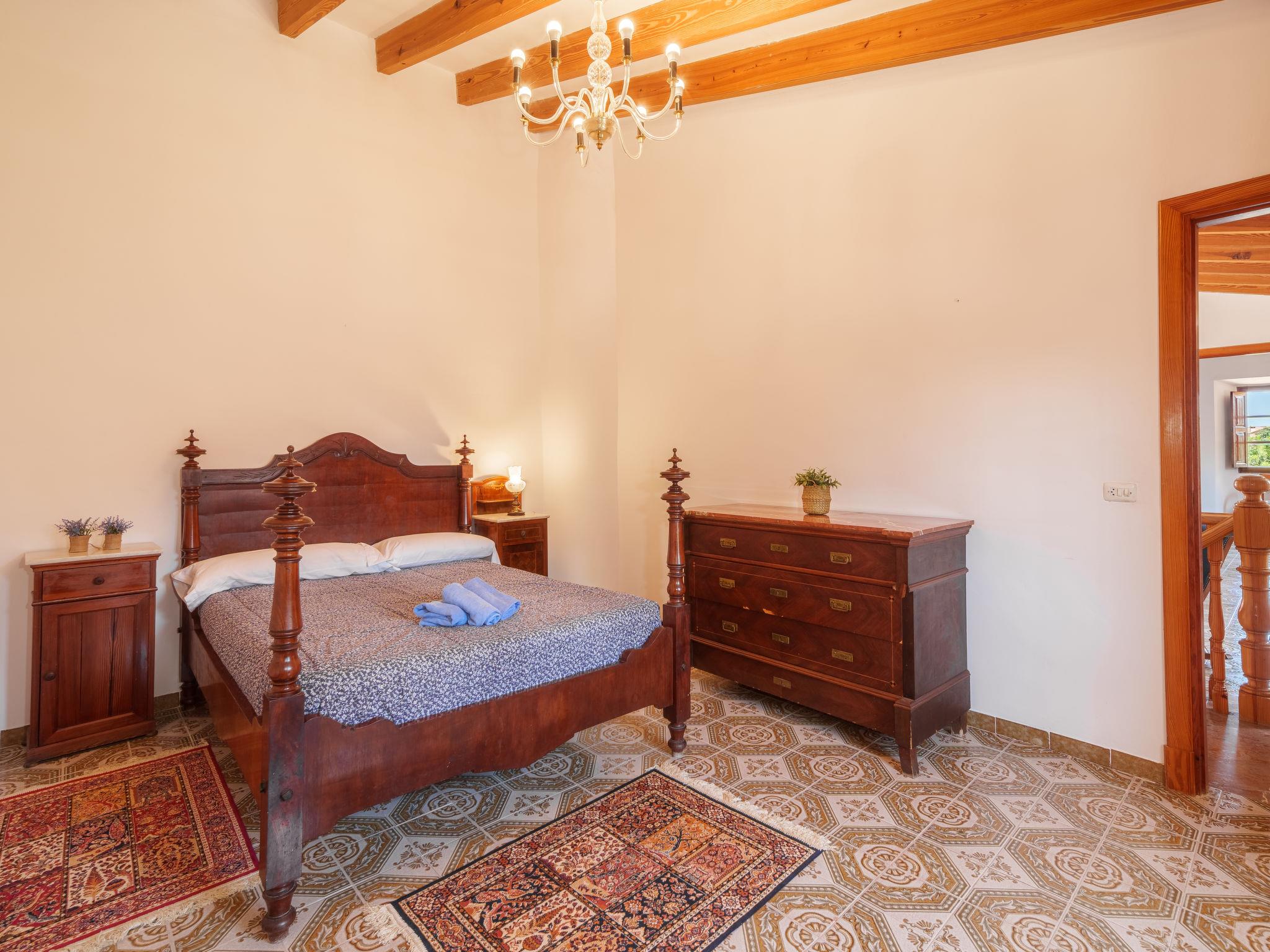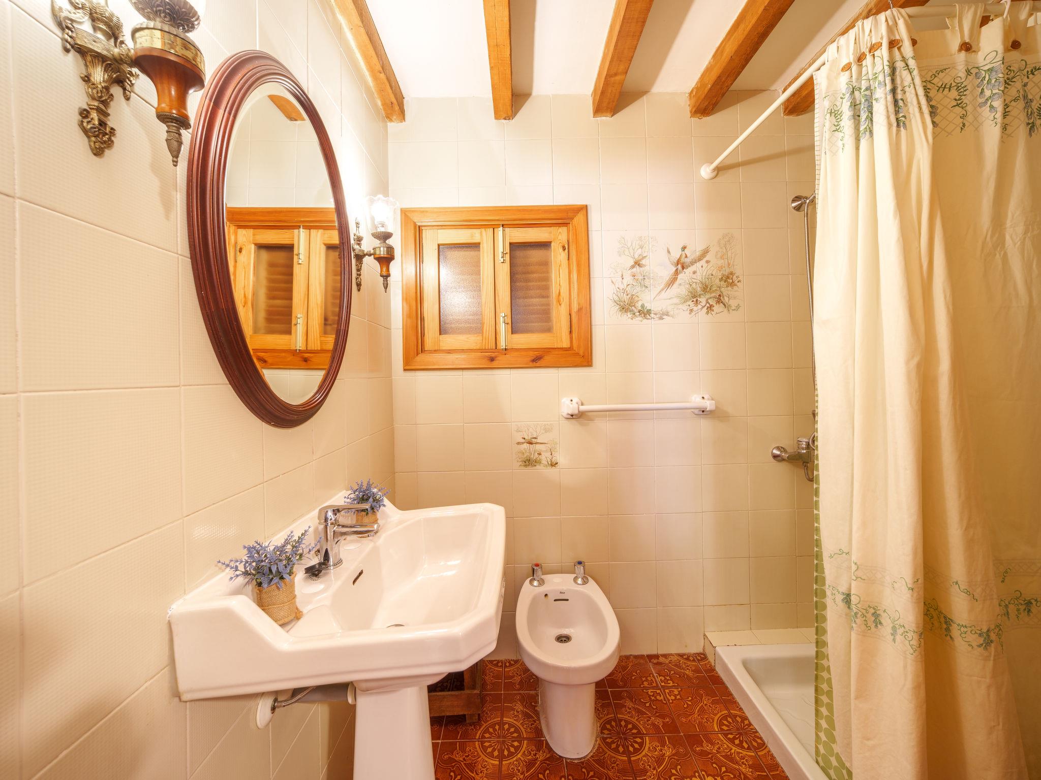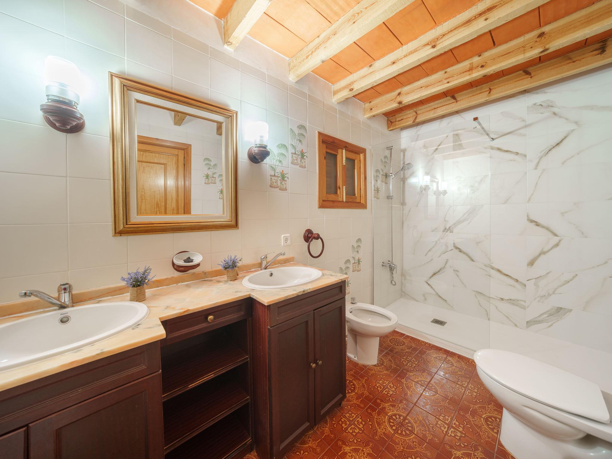 "Es Muntant", 6-room house 200 m2 on 2 levels. Object suitable for 8 adults. Spacious and bright, rustic and cosy furnishings: open large living/dining room with satellite TV, digital TV, international TV channels, air conditioning and forced-air heating. Exit to the patio. 1 double bedroom with 1 double bed (160 cm, length 200 cm). Large kitchen (4 hot plates, oven, dishwasher, microwave, freezer) with dining table. Exit to the patio, to the swimming pool. Bath/bidet/WC, shower/WC, double hand-basin. Upper floor: 1 double bedroom with 1 french bed (150 cm, length 190 cm). 1 double bedroom with 1 double bed (160 cm, length 200 cm). 1 double bedroom with 1 french bed (150 cm, length 190 cm). Garden, lawn, porch. Terrace furniture, balcony furniture, barbecue, deck chairs, covered balcony. Beautiful view of the mountains, the swimming pool, the garden, the countryside and the forest. Facilities: washing machine, iron, children's high chair, baby cot for up to 2 year olds, hair dryer. Internet (WiFi, free). Parking (fenced). ETV/6267 // Reg. Nr.: ESFCTU00000702400071679500000000000000000000ETV/62671