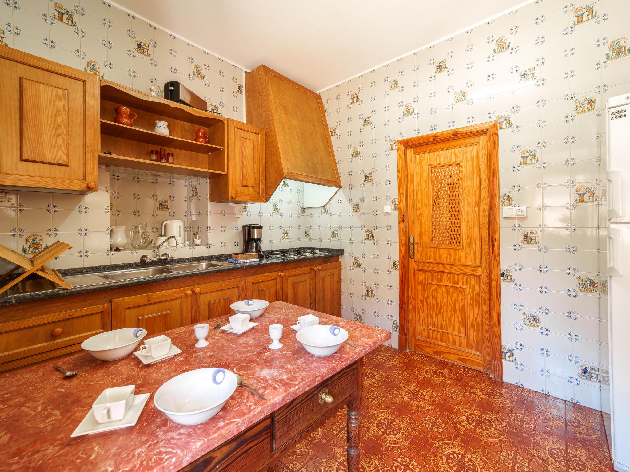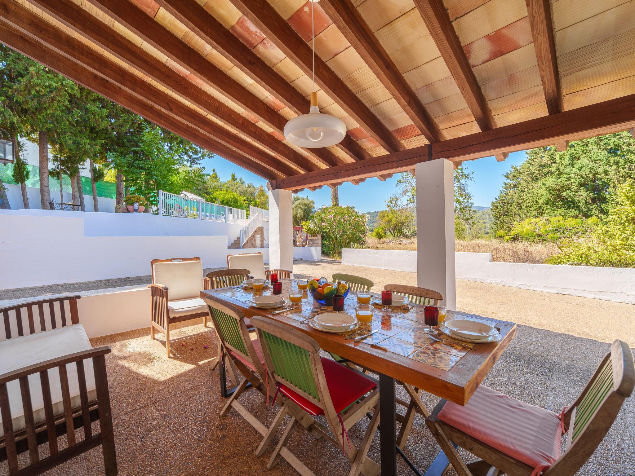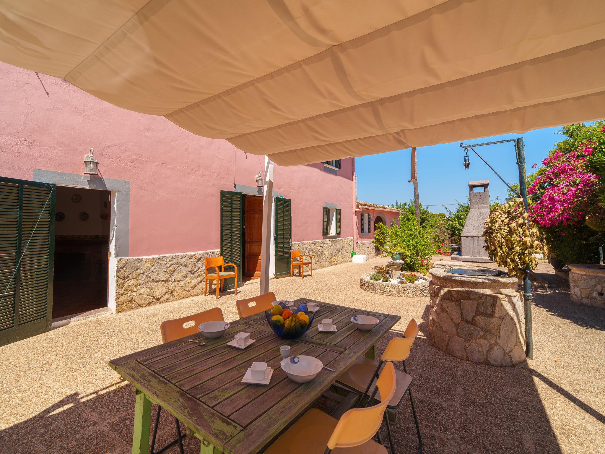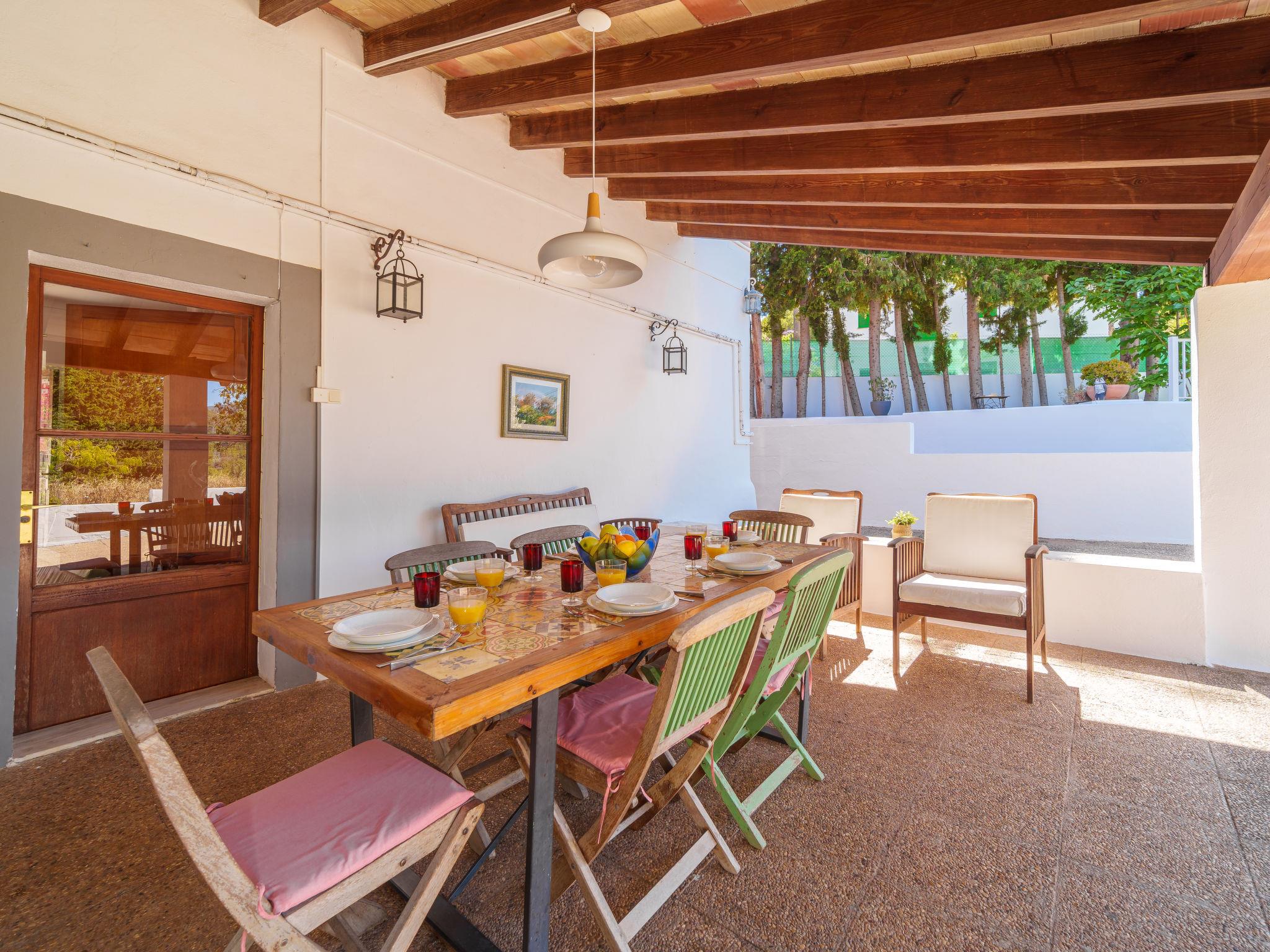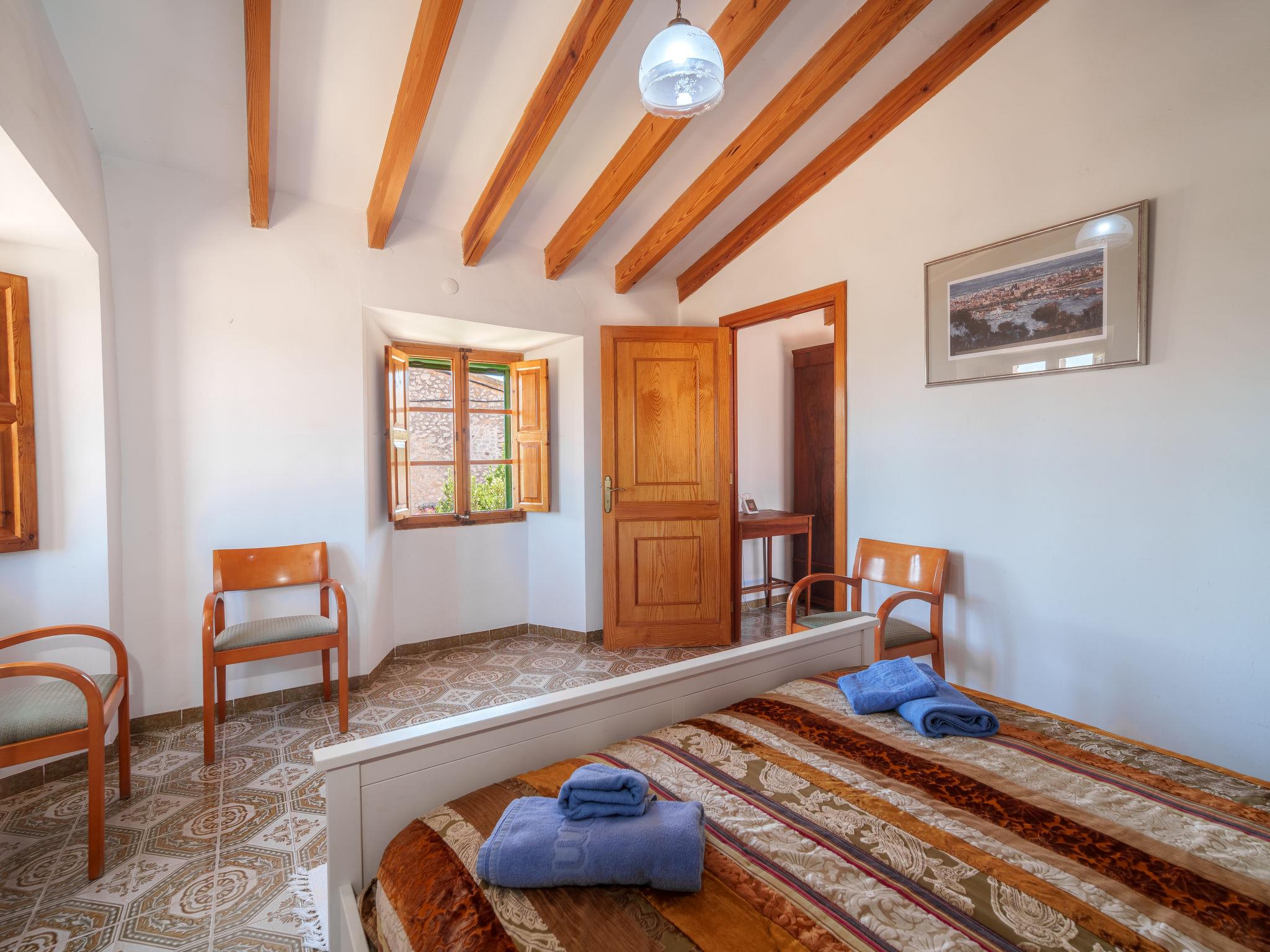 "Es Muntant", 6-room house 200 m2 on 2 levels. Object suitable for 8 adults. Spacious and bright, rustic and cosy furnishings: open large living/dining room with satellite TV, digital TV, international TV channels, air conditioning and forced-air heating. Exit to the patio. 1 double bedroom with 1 double bed (160 cm, length 200 cm). Large kitchen (4 hot plates, oven, dishwasher, microwave, freezer) with dining table. Exit to the patio, to the swimming pool. Bath/bidet/WC, shower/WC, double hand-basin. Upper floor: 1 double bedroom with 1 french bed (150 cm, length 190 cm). 1 double bedroom with 1 double bed (160 cm, length 200 cm). 1 double bedroom with 1 french bed (150 cm, length 190 cm). Garden, lawn, porch. Terrace furniture, balcony furniture, barbecue, deck chairs, covered balcony. Beautiful view of the mountains, the swimming pool, the garden, the countryside and the forest. Facilities: washing machine, iron, children's high chair, baby cot for up to 2 year olds, hair dryer. Internet (WiFi, free). Parking (fenced). ETV/6267 // Reg. Nr.: ESFCTU00000702400071679500000000000000000000ETV/62671