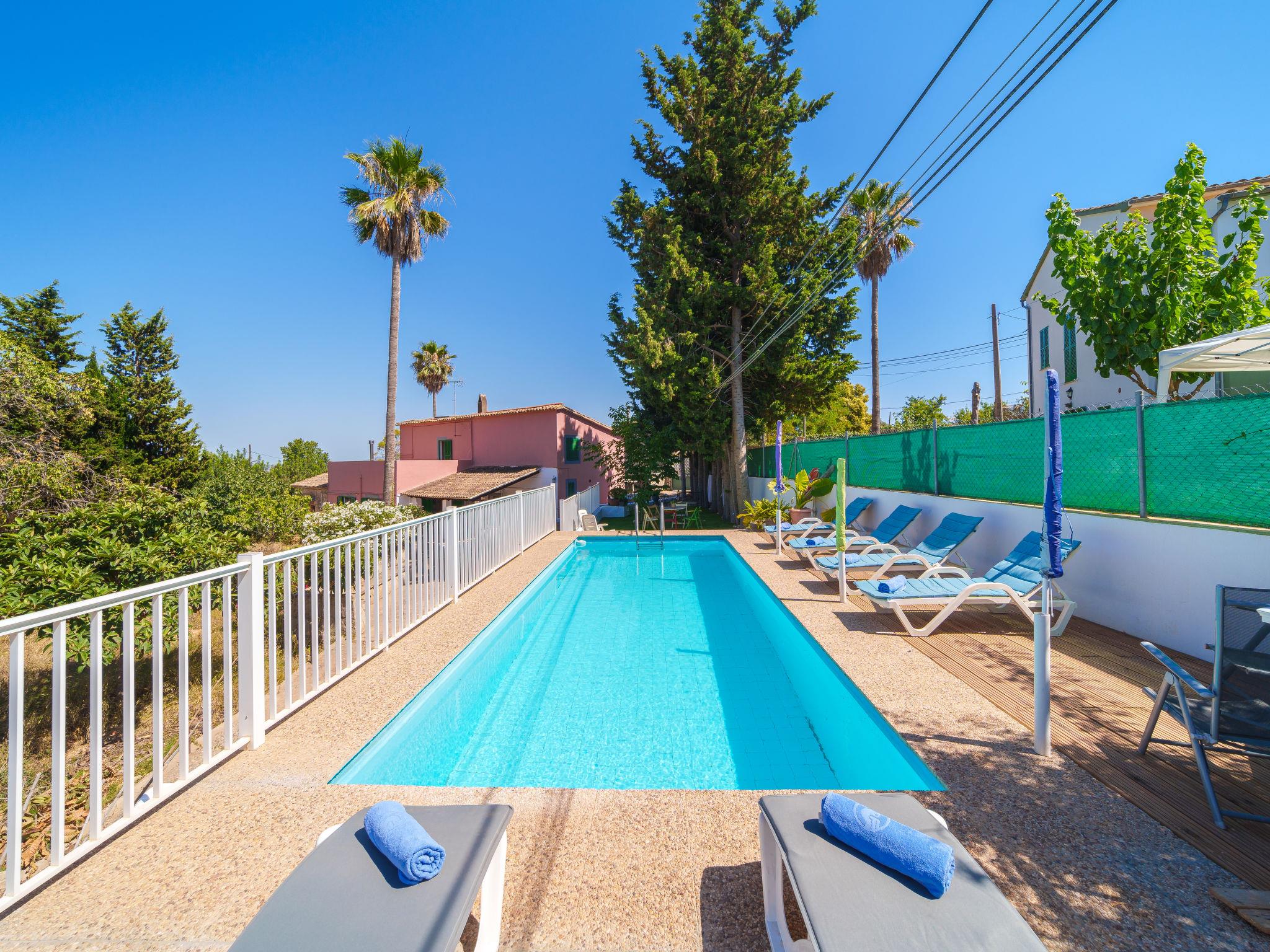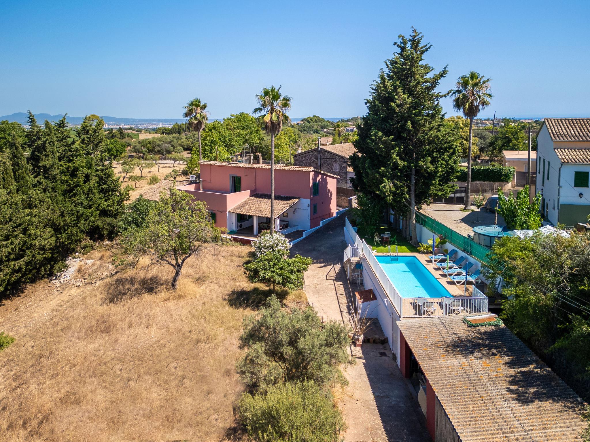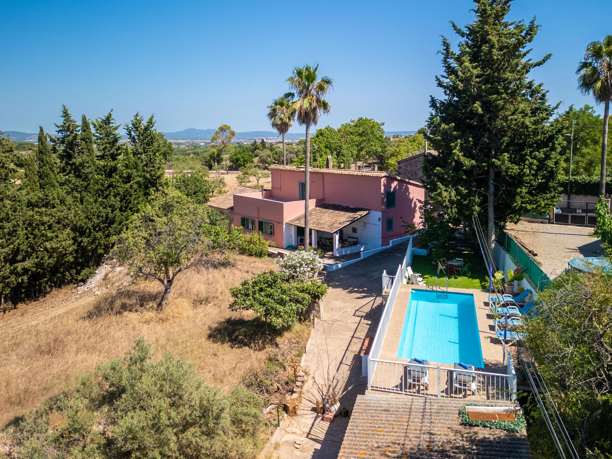Establiments 4 km from Palma: Very large, cosy farm estate "Es Muntant", 2 storeys, surrounded by trees and fields. In the district of Establiments, outside the resort, 4.5 km from the centre of Palma de Mallorca, in a sunny position residential area (villas), 1 km from the edge of the forest, 12 km from the sea, 12 km from the beach. Private: natural state property, garden with wildlife garden and trees, swimming pool angular (4 x 10 m, depth 100 - 160 cm, seasonal availability: 01.Jan. - 31.Dec.). Outdoor shower, patio, arbour, pergola, garden furniture, barbecue. In the house: internet access, WiFi, storage room for bicycles, air conditioning, washing machine. Parking at the house on the premises. Grocery 1.9 km, supermarket 2.2 km, shopping centre 5 km, restaurant 10 m, bar, bakery 2.1 km, bicycle rental 5 km, bus stop 150 m, railway station 6.5 km, sandy beach 12 km. Sports harbour 13 km, golf course (18 hole) 6 km. Nearby attractions: Esporles, Bunyola, Soller. Palma de Mallorca, Playa de Palma, Serra de Tramuntana, Lluc. Escorca, Restaurante Es Muntant 15 m. Please note: car recommended. Object suitable for 8 adults. The owner does not accept any youth groups. Loading and unloading of baggage is possible at the holiday house. Main road close by. Airfield 18 km from the property.
