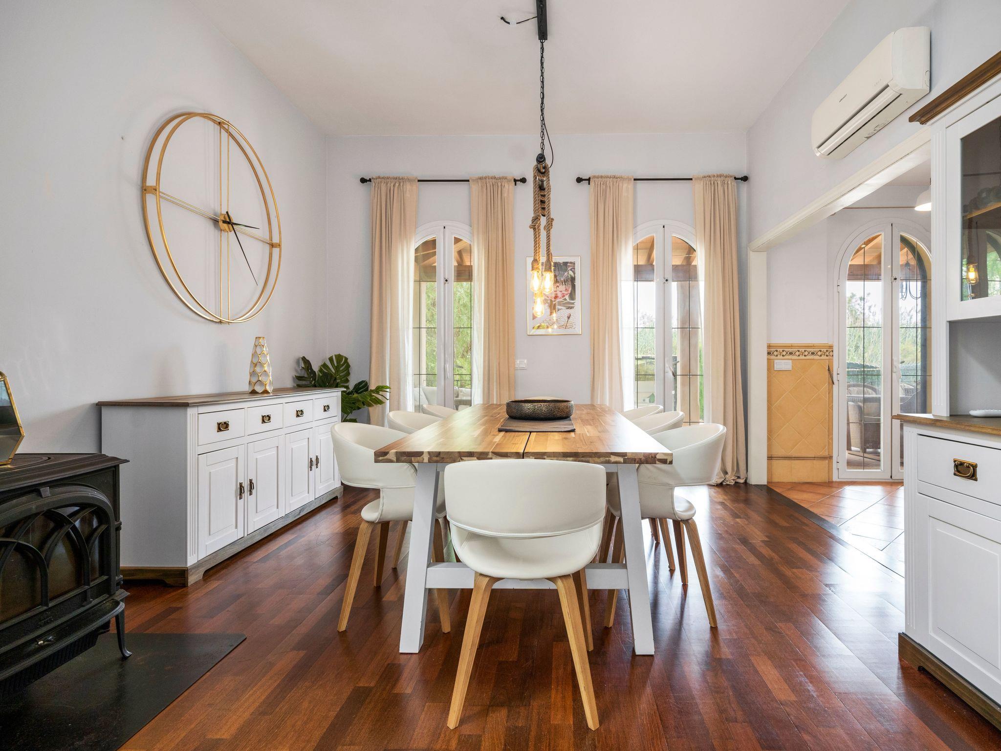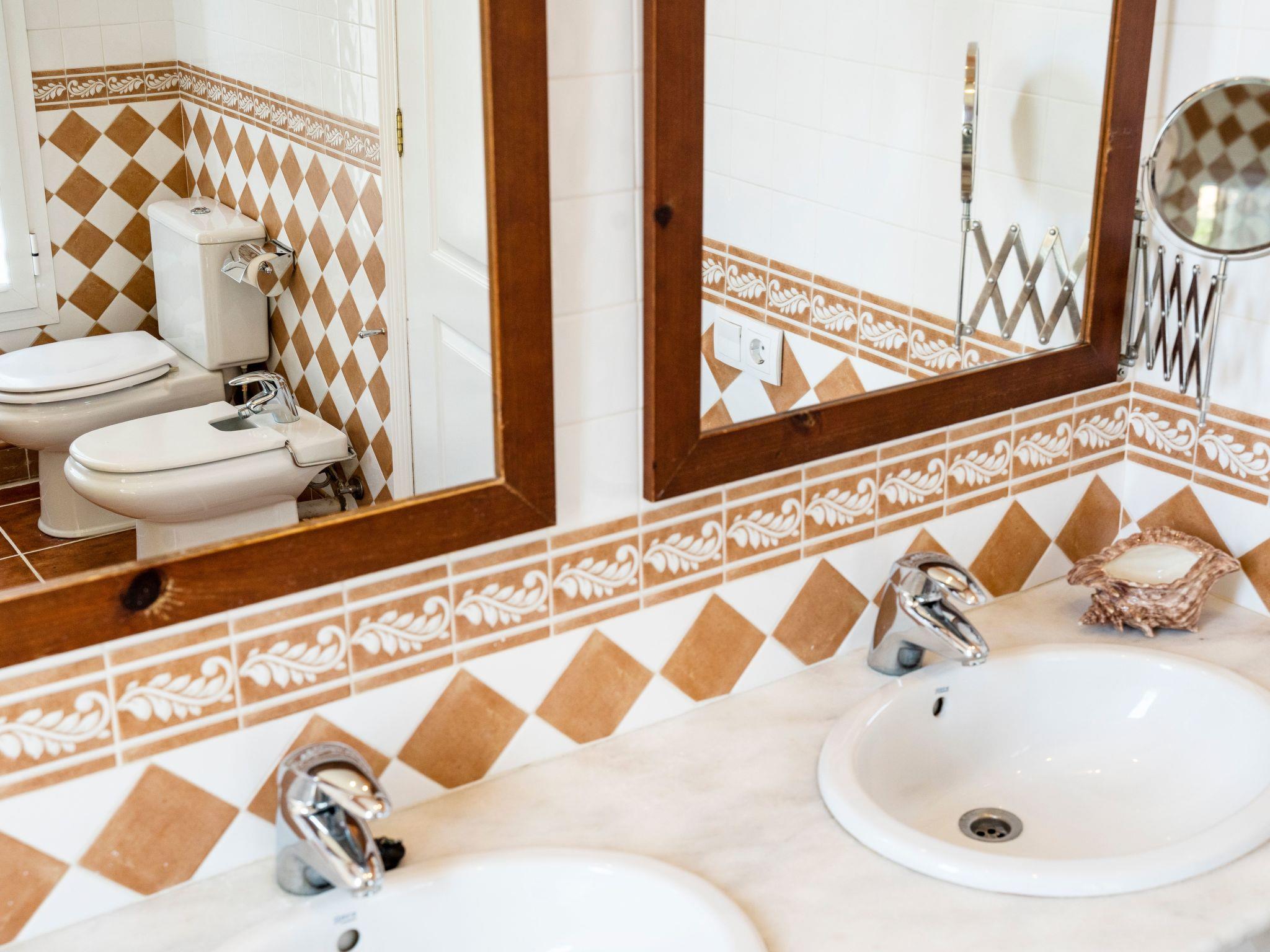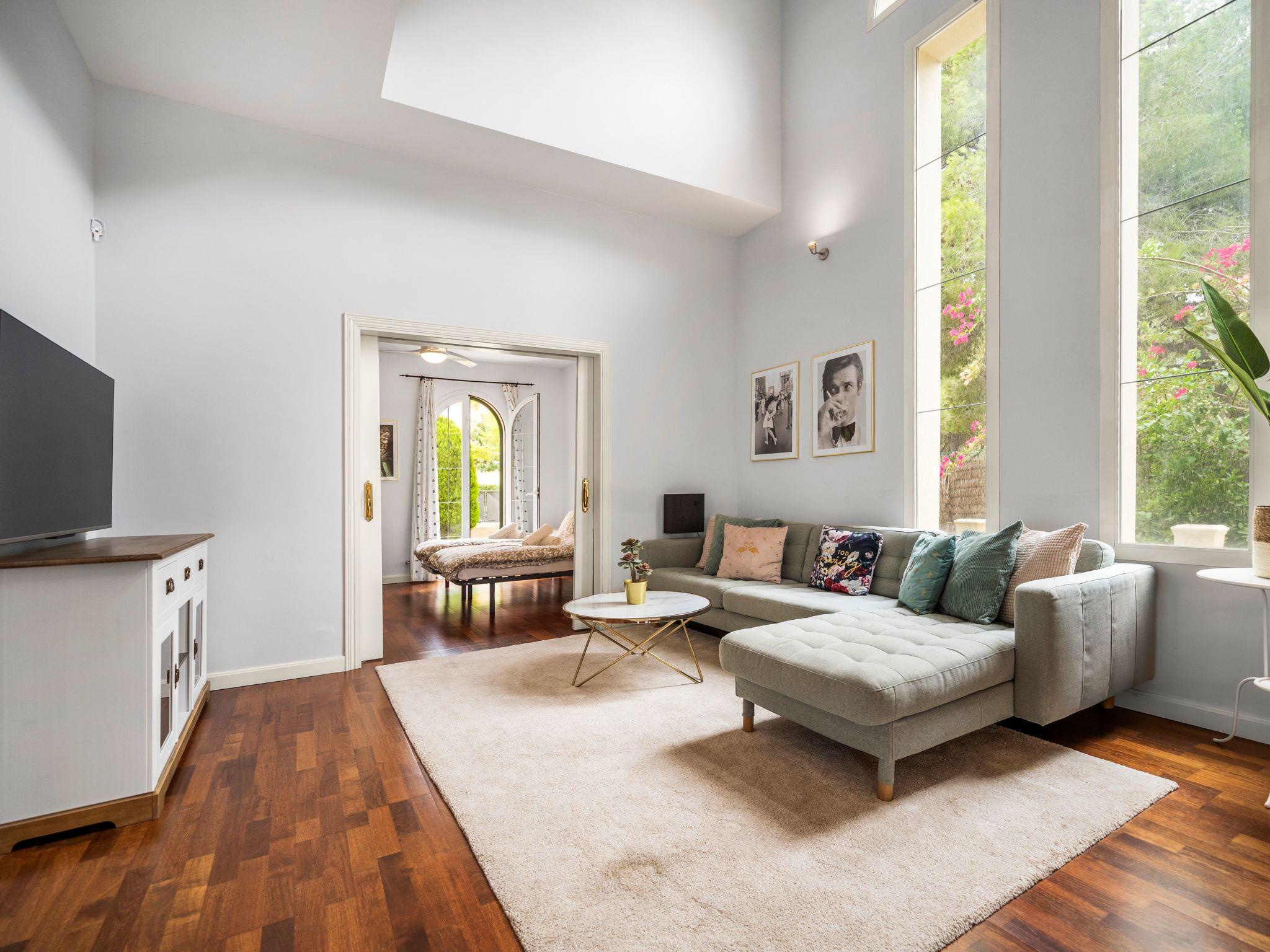 The house is divided into 2 floors, the lower floor consists of a living room (Smart TV) with living/dining area, a fully equipped kitchen, a bedroom with double bed and very large, modern wardrobe, a small bedroom with sofa bed and a bathroom with shower. On the first floor there are 3 bedrooms with double beds, all three with en suite bathrooms (i.e. with direct access to their own bathroom), so you can enjoy a lot of privacy. Outside there is a beautiful pool with a chilli out area, sun loungers and hammocks, as well as a barbecue. Here you can spend Mallorcan nights by candlelight and enjoy dinners or barbecues together on the veranda.