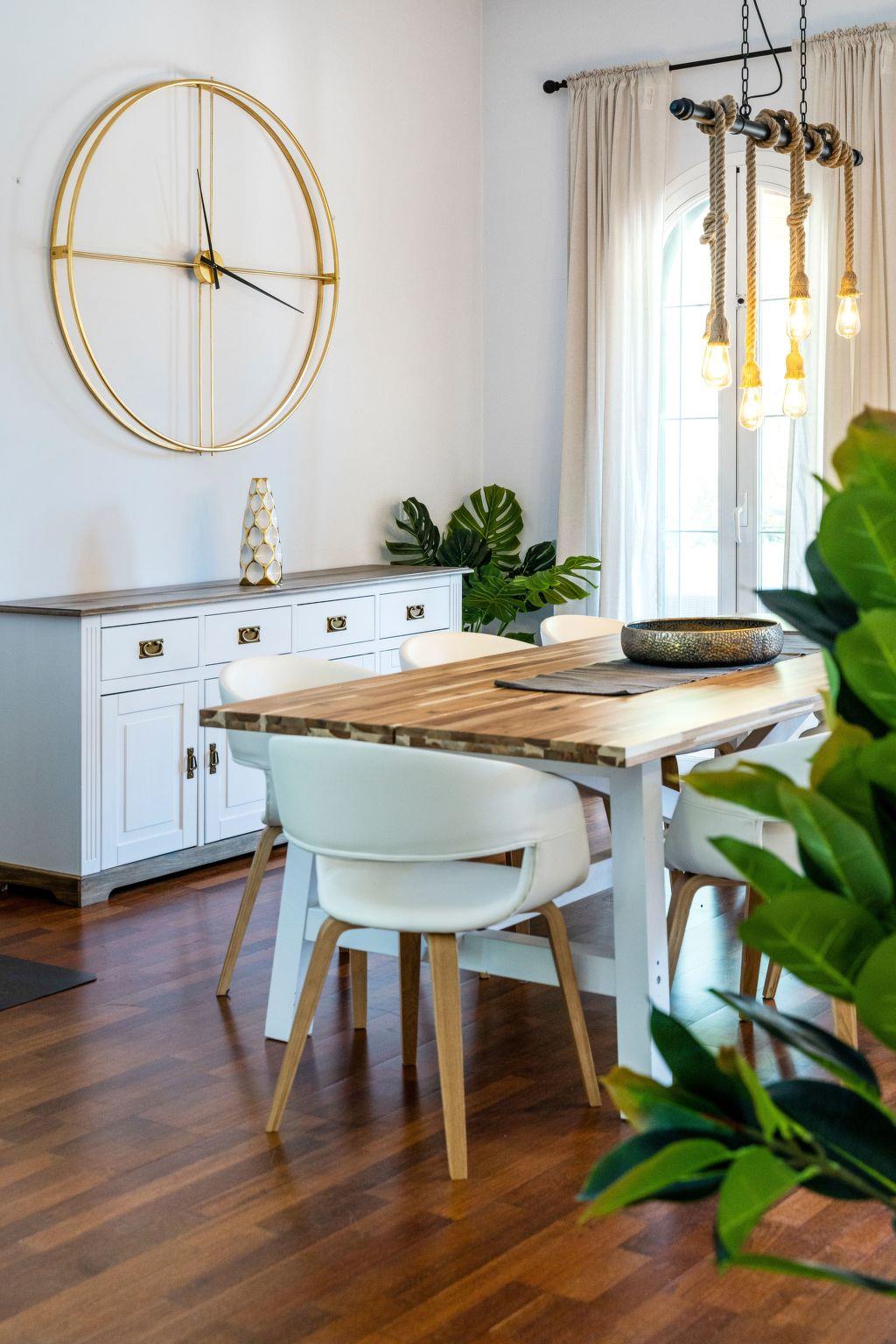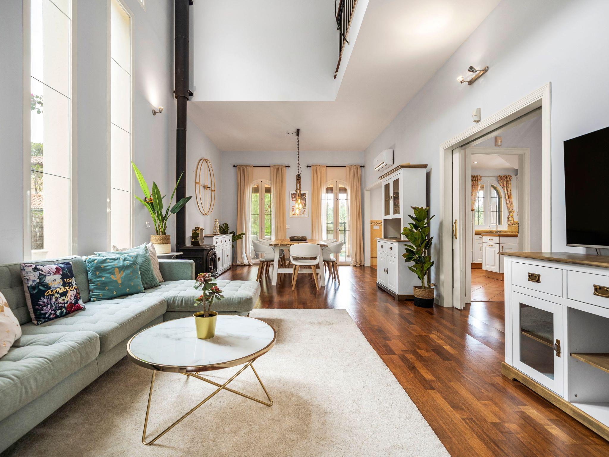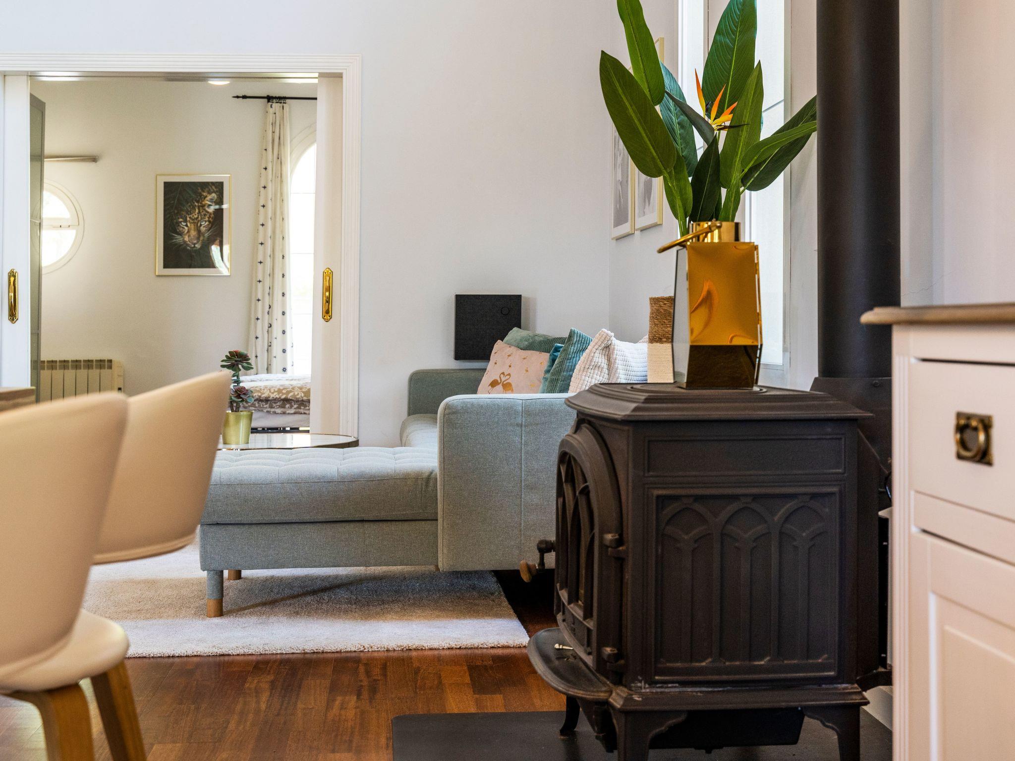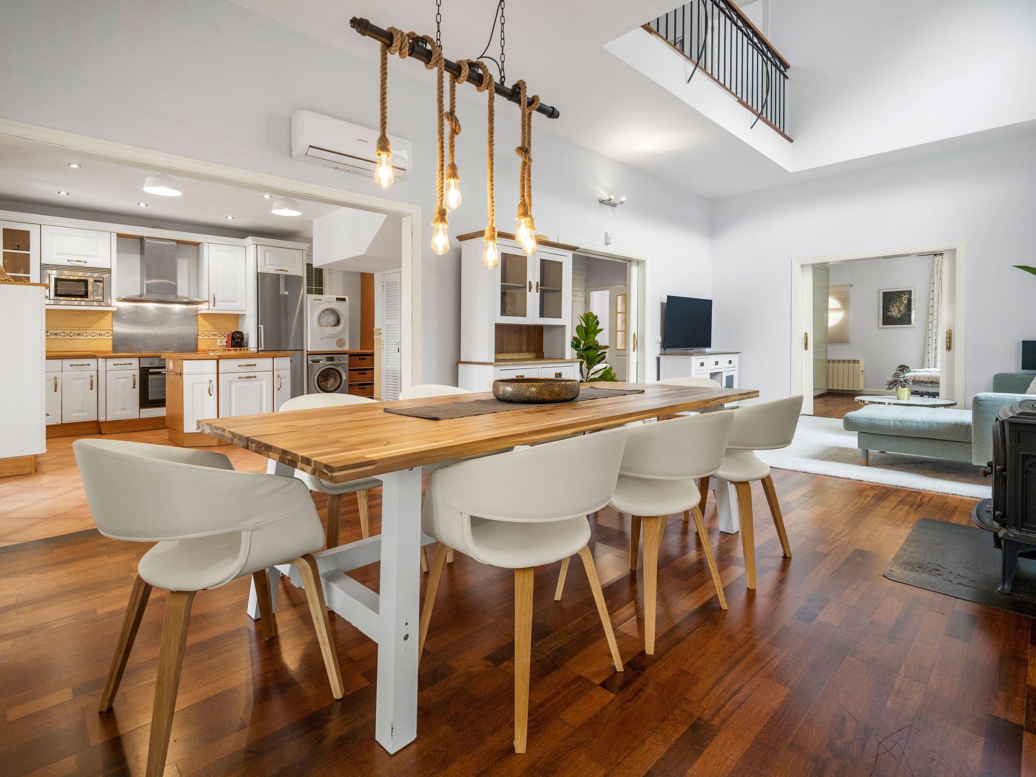 The house is divided into 2 floors, the lower floor consists of a living room (Smart TV) with living/dining area, a fully equipped kitchen, a bedroom with double bed and very large, modern wardrobe, a small bedroom with sofa bed and a bathroom with shower. On the first floor there are 3 bedrooms with double beds, all three with en suite bathrooms (i.e. with direct access to their own bathroom), so you can enjoy a lot of privacy. Outside there is a beautiful pool with a chilli out area, sun loungers and hammocks, as well as a barbecue. Here you can spend Mallorcan nights by candlelight and enjoy dinners or barbecues together on the veranda.