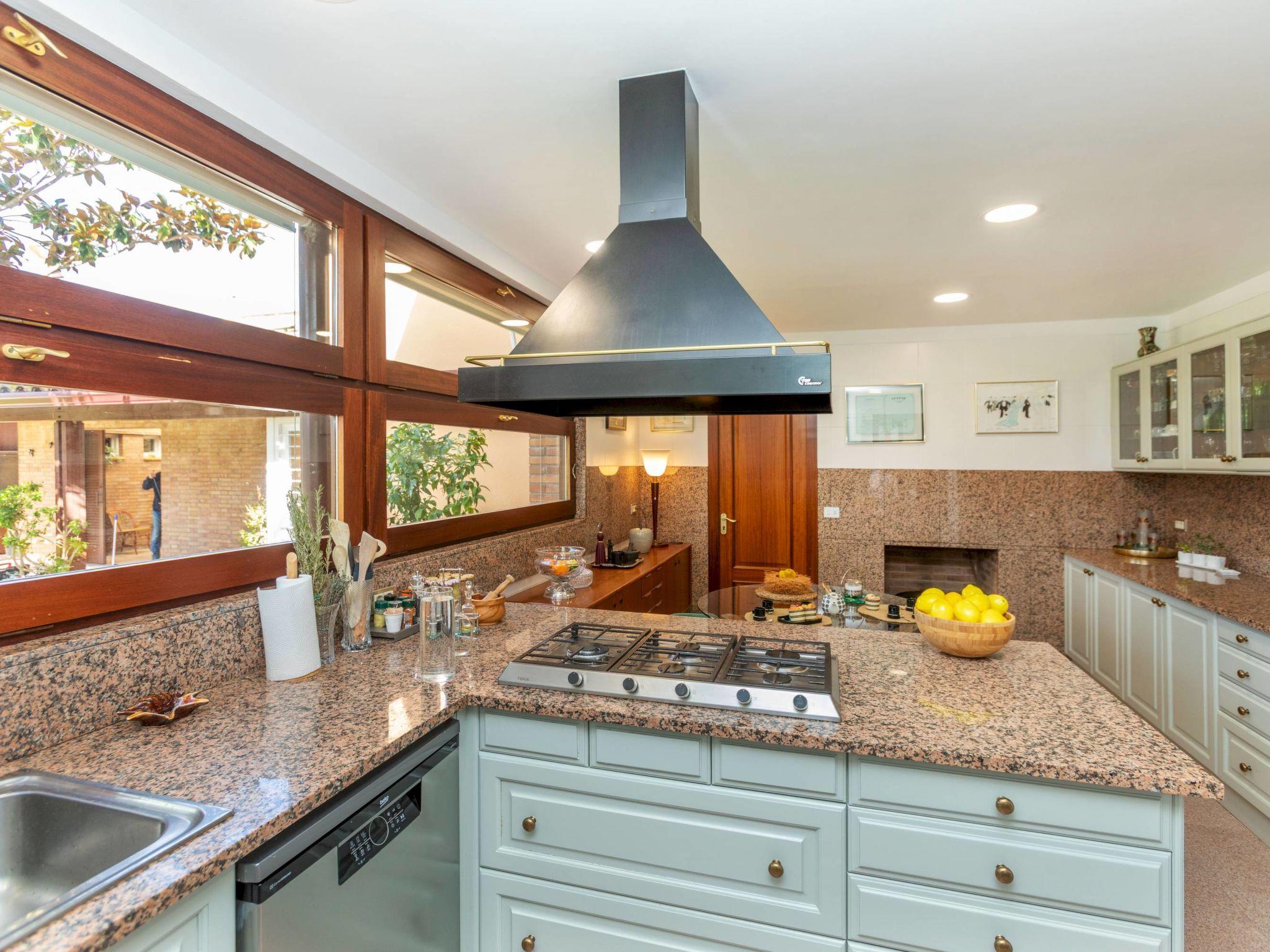 "Villa Chantal", 7-room house 576 m2. Spacious and bright, comfortable and stylish furnishings: living/dining room with digital TV and air conditioning. Exit to the garden, to the swimming pool. 1 room with 1 french bed (140 cm, length 190 cm), shower/WC. Exit to the garden. Large, open kitchen (5 hot plates, oven, dishwasher, toaster, kettle, microwave, electric coffee machine). Upper floor: 1 room with 2 beds (90 cm, length 190 cm), shower/WC and air conditioning. 1 room with 1 french bed (160 cm, length 190 cm), shower/WC and air conditioning. Exit to the terrace. 1 room with 1 french bed (160 cm, length 190 cm), bath/WC and air conditioning. 1 room with 1 double bed (2 x 90 cm, length 190 cm), shower/WC and air conditioning. 1 room with 1 double bed (2 x 90 cm, length 190 cm), shower/WC and air conditioning. Large patio. Terrace furniture, barbecue, covered balcony. View of the town. Facilities: washing machine, iron, children's high chair, baby cot for up to 2 year olds, hair dryer. Internet (WiFi, free). Garage space n 1 coche. Please note: maximum 1 pet/ dog allowed. TV only ES. HUTG-049098 // Reg. Nr.: ESFCTU00001700700002972700000000000000000HUTG-0490985