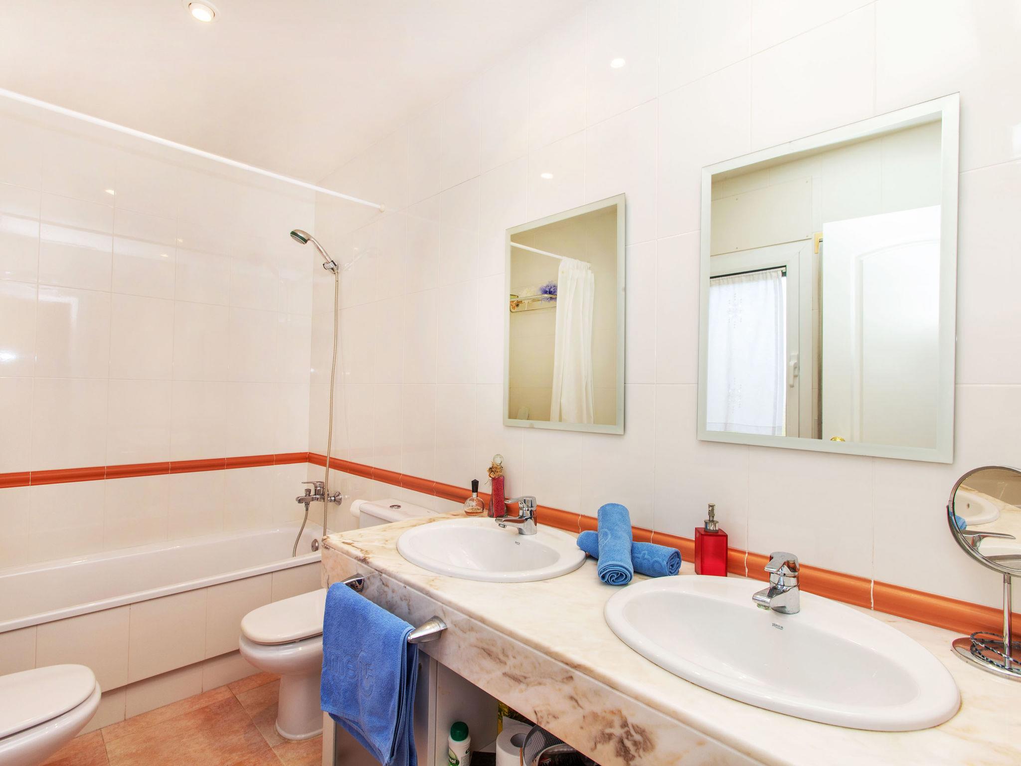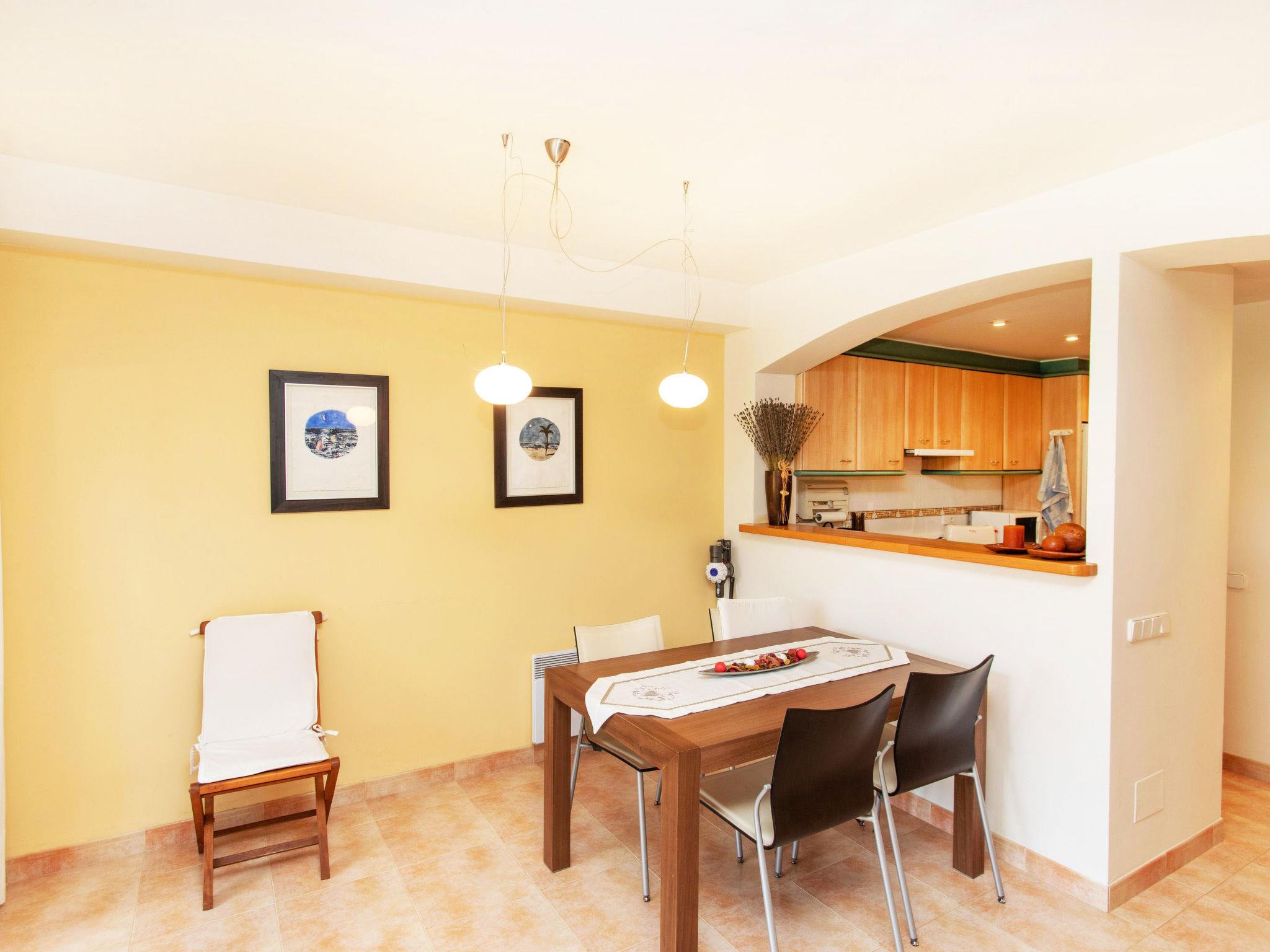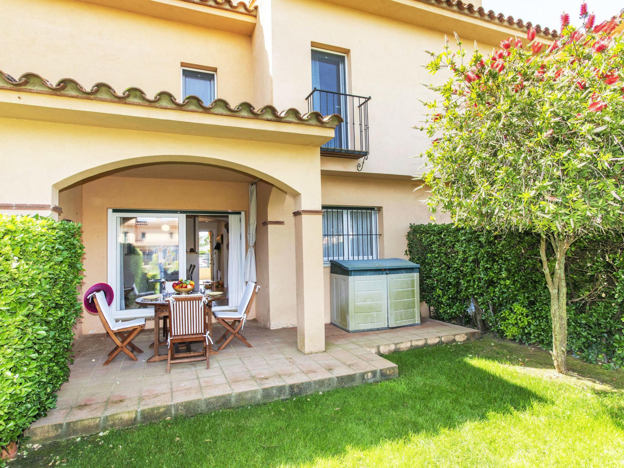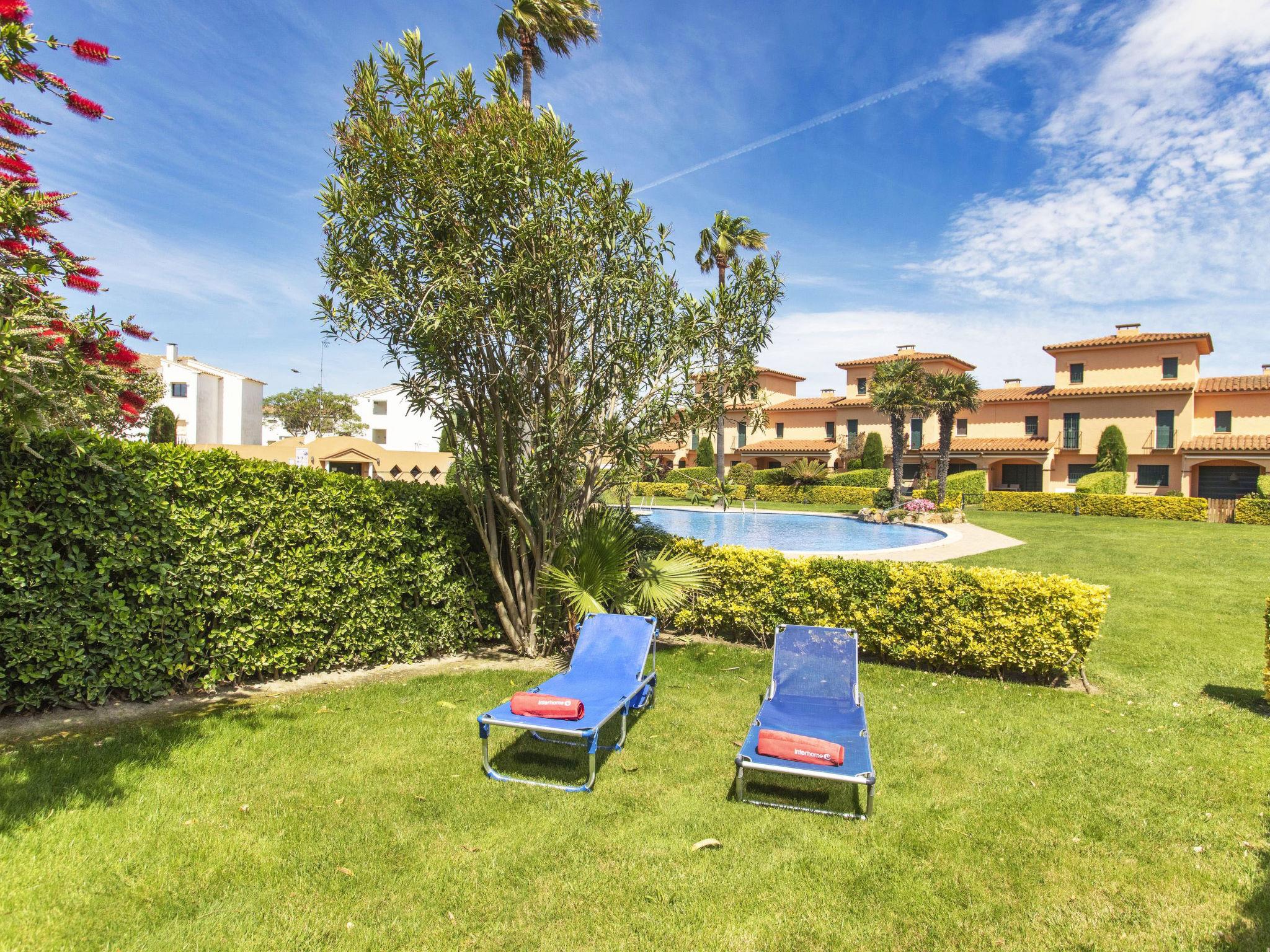 "Port Pals Village", 4-room terraced house 150 m2 on 3 levels. Practical furnishings: living/dining room with digital TV. Exit to the terrace. Kitchen (4 ceramic glass hob hotplates, toaster, kettle, microwave, freezer, electric coffee machine). Sep. WC. No heating option. Upper floor: 1 room with 1 french bed (135 cm, length 190 cm), bath/WC. 1 room with 1 french bed (135 cm, length 190 cm). 1 room with 2 beds (90 cm, length 190 cm). Bath/WC. Patio. Terrace furniture. View of the swimming pool. Facilities: washing machine, iron, children's high chair, baby cot, hair dryer. Internet (WiFi, free). Parking space n Num 20 exterior (1 car). Please note: TV only ES. HUTG-058499 // Reg. Nr.: ESFCTU00001700700022603400000000000000000HUTG-0584998