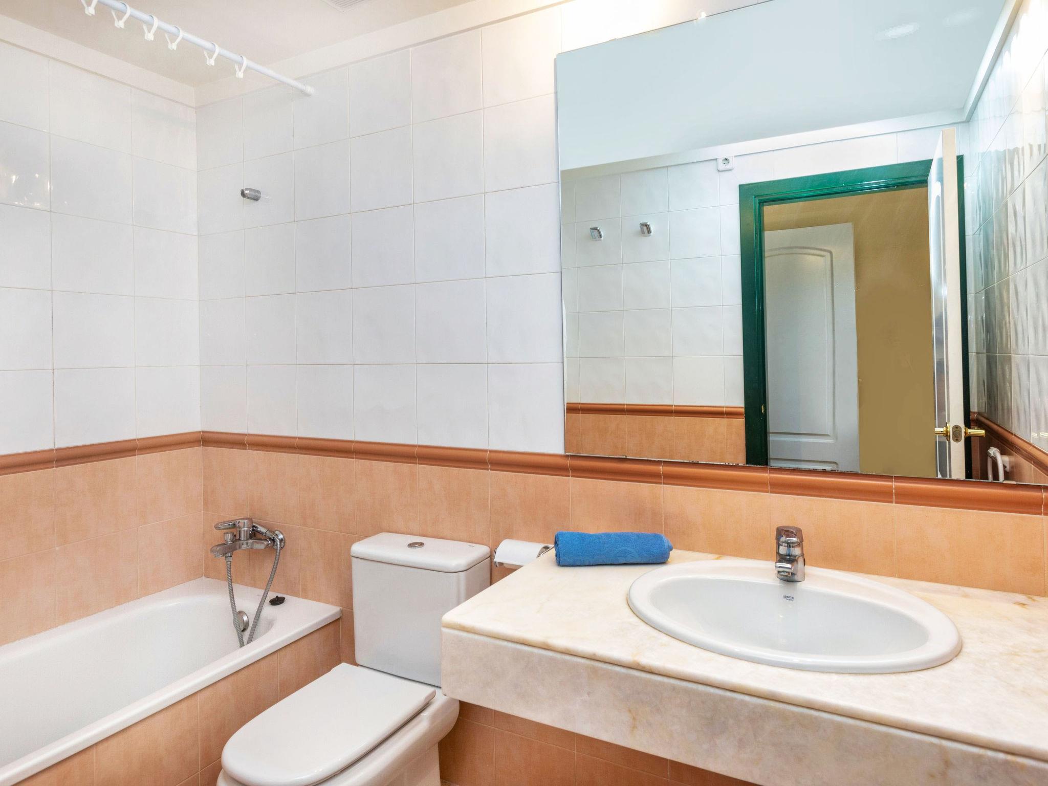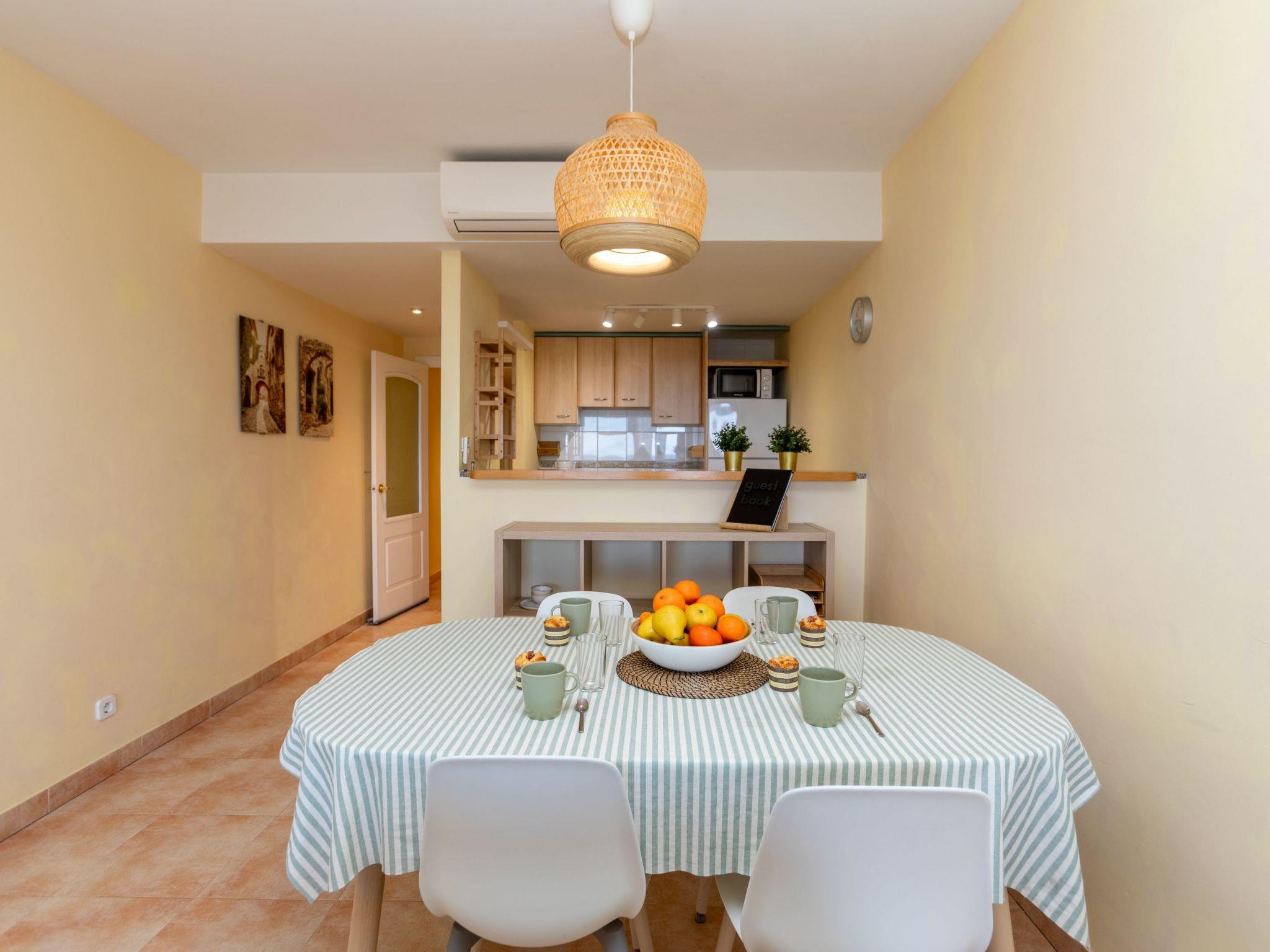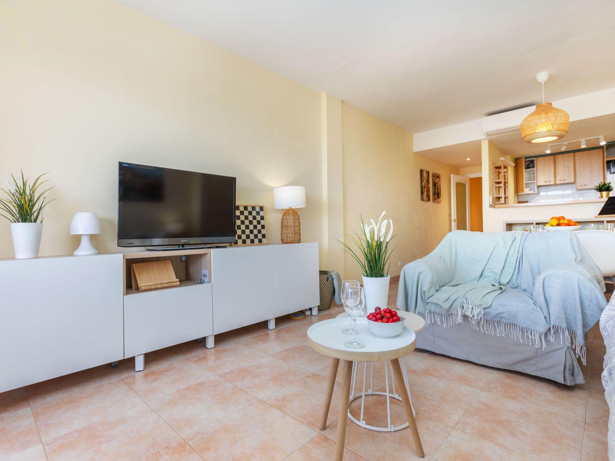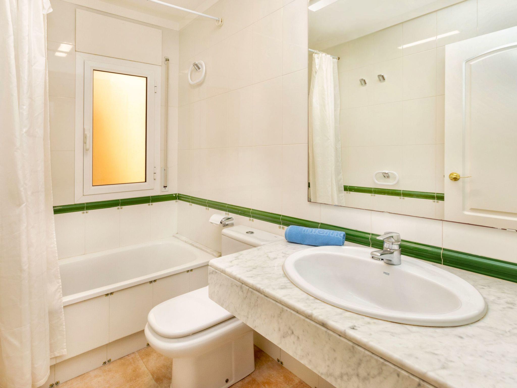 "Port Pals Sunrise & Sunset", 3-room apartment 70 m2. Living/dining room with dining table, digital TV, air conditioning and forced-air heating. Exit to the terrace. 1 room with 1 french bed (2 x 80 cm, length 200 cm). 1 room with 2 beds (90 cm, length 190 cm). Open kitchen (oven, dishwasher, 4 ceramic glass hob hotplates, microwave, electric coffee machine). 2 baths/WC. Air-conditioning, forced-air heating. 2 large terraces. Terrace furniture. Very beautiful view of the sea and the swimming pool. Facilities: washing machine, iron, children's high chair, baby cot, hair dryer. Internet (WiFi, free). Parking space n 7 exterior (1 car). Please note: TV only ES. The air conditioning is located in the dining room and in the hallway of the rooms. HUTG-063547 // Reg. Nr.: ESFCTU00001700700018976600000000000000000HUTG-0635478