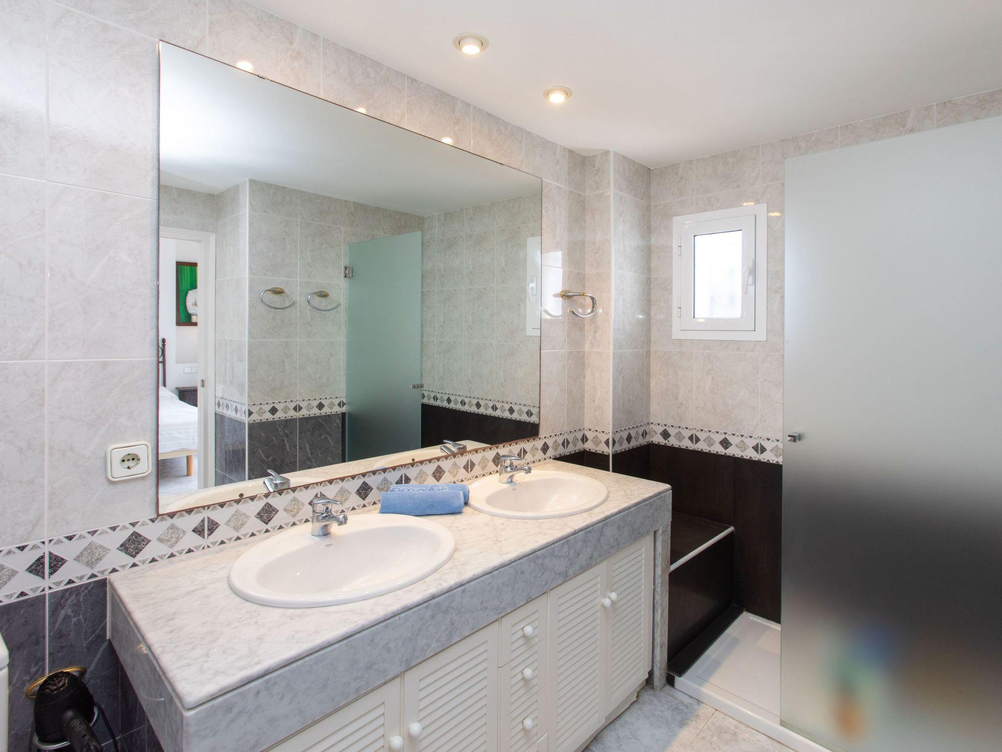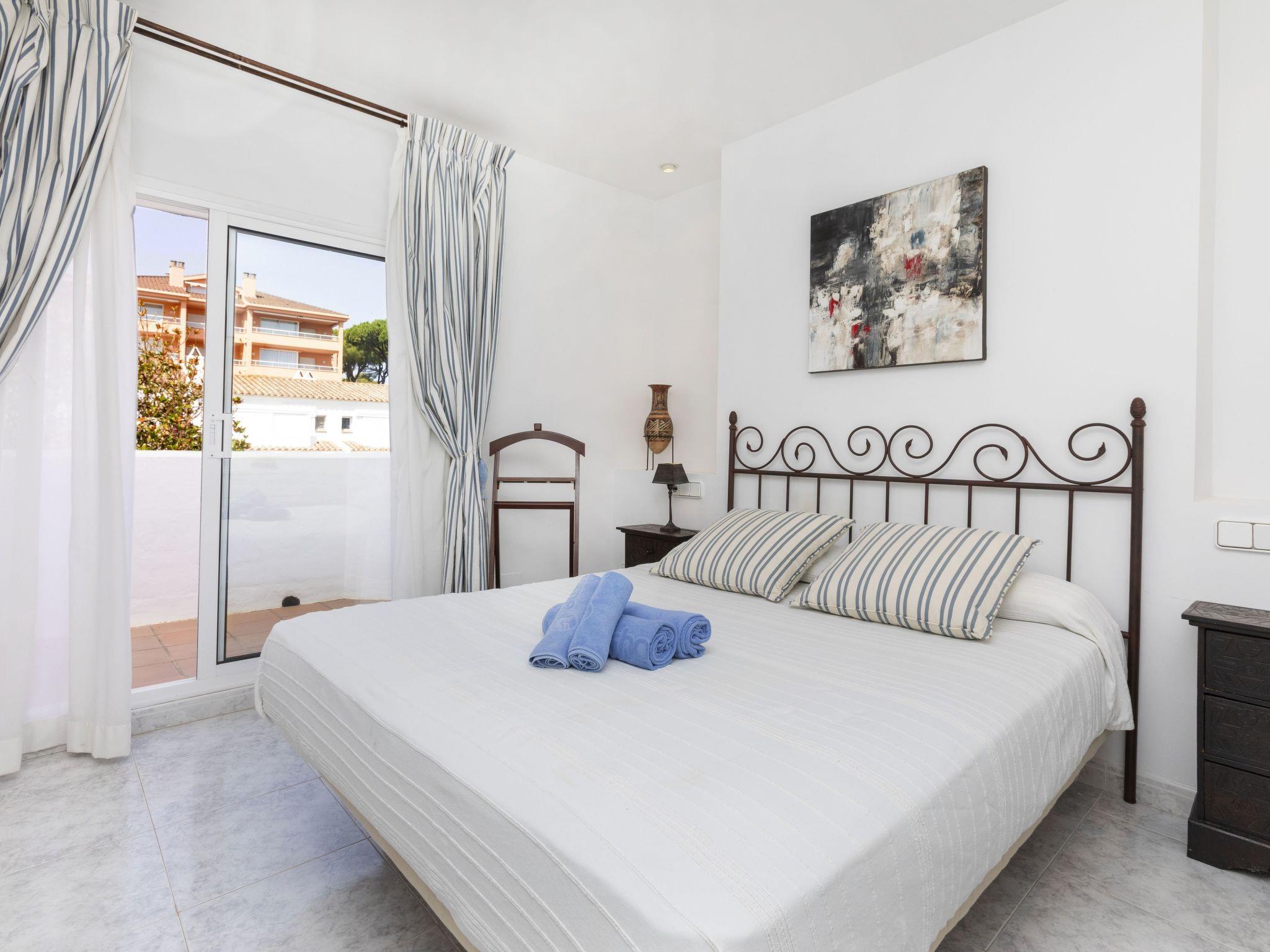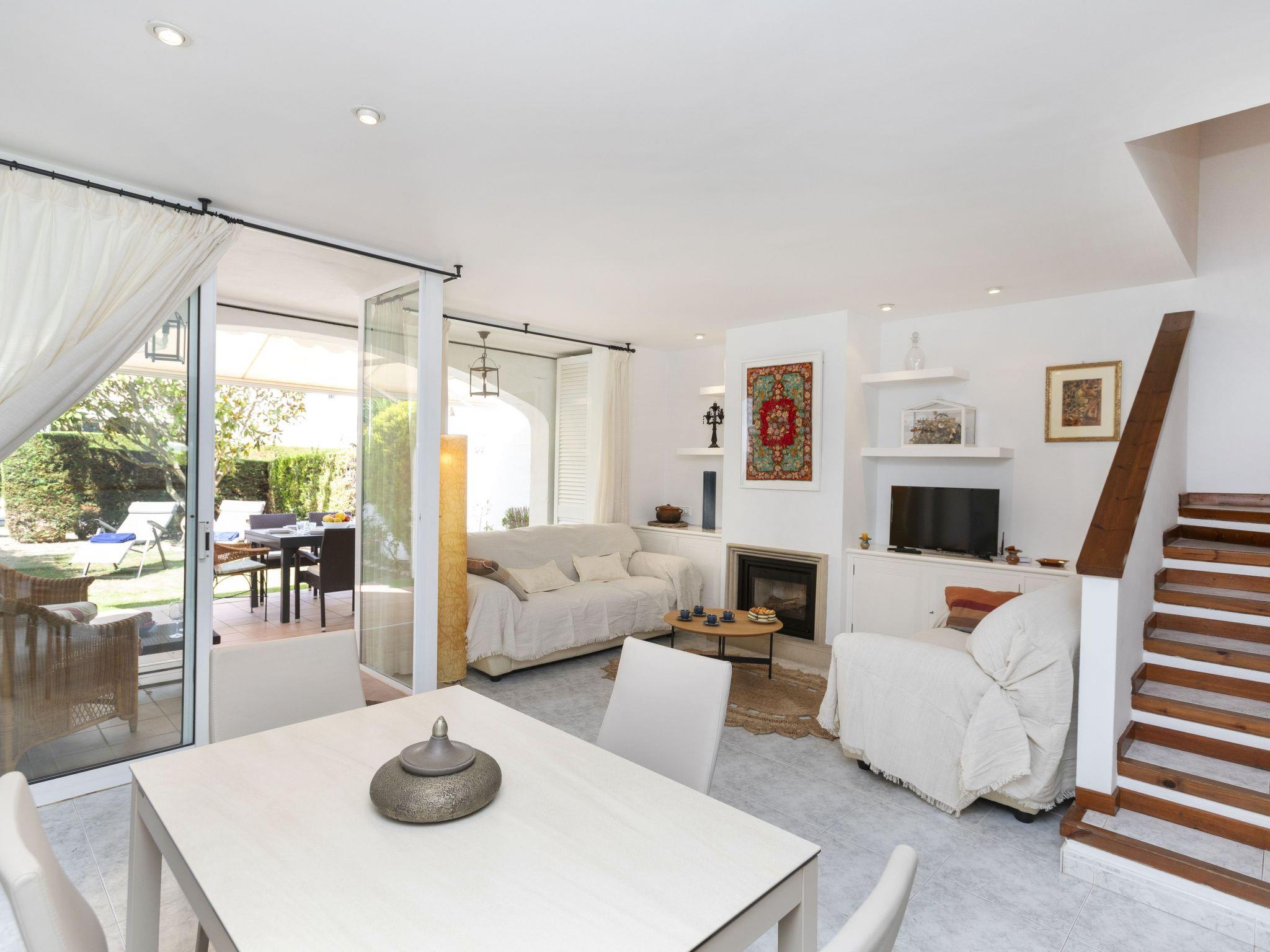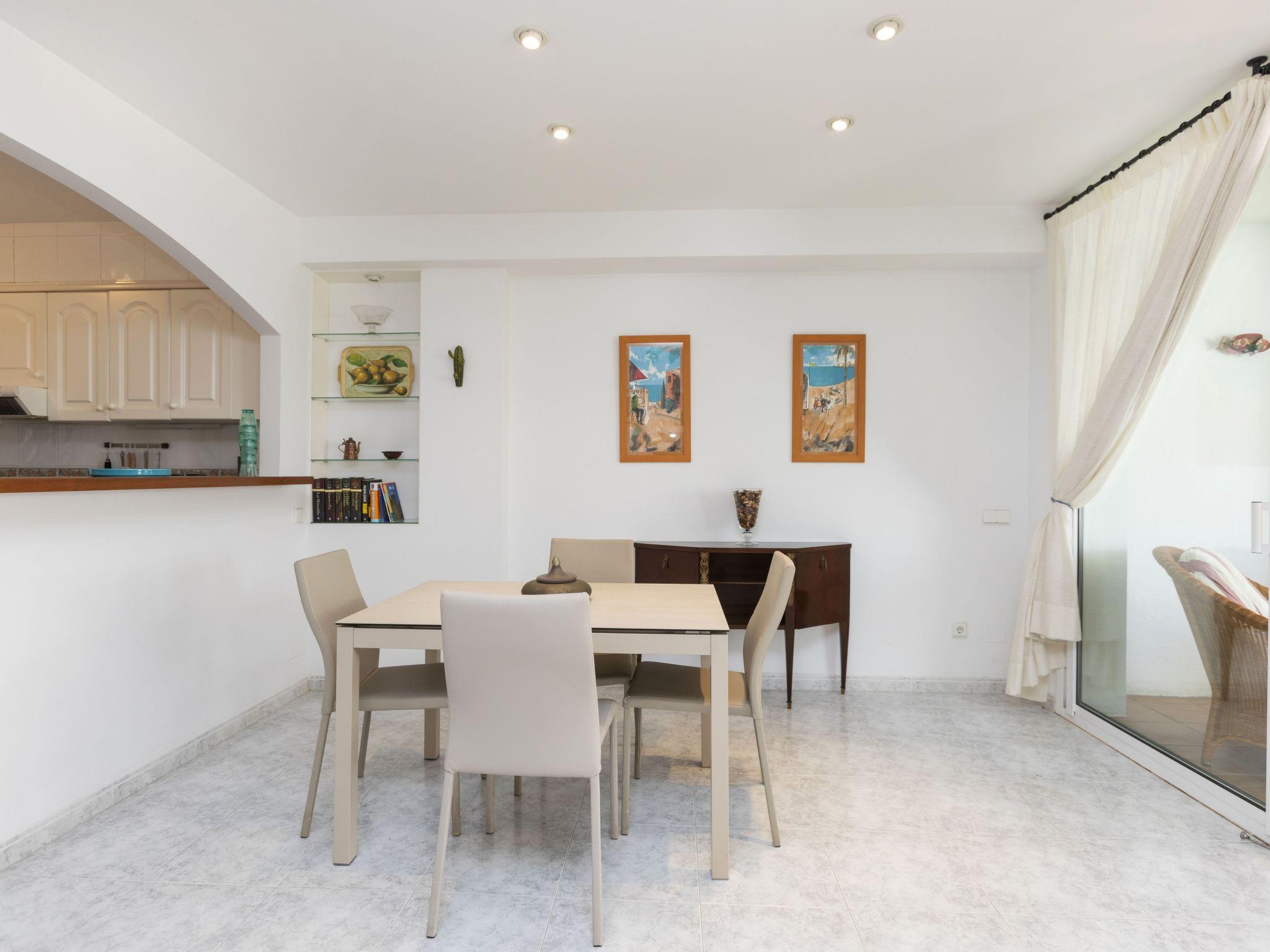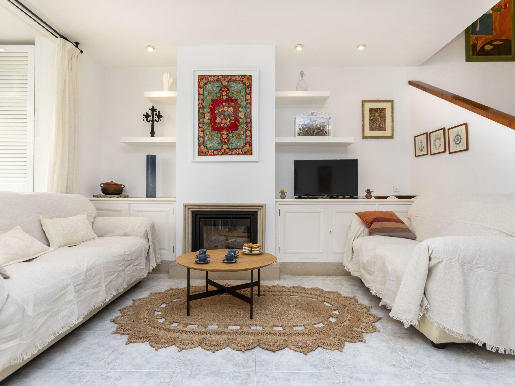 "Reserva V", 4-room terraced house 120 m2 on 2 levels. Practical and comfortable furnishings: living/dining room with digital TV. Exit to the patio. Open kitchen (oven, dishwasher, 4 ceramic glass hob hotplates, microwave, electric coffee machine) with hatch. Sep. WC. No heating option. Upper floor: 1 room with 1 french bed (135 cm, length 190 cm), shower/WC. 1 room with 2 beds (90 cm, length 190 cm). 1 children's room with 1 pull-out bed (2 pers. 2 x 85 cm, length 185 cm). Shower/WC. Very beautiful view of the garden. Facilities: washing machine, iron, children's high chair, baby cot for up to 2 year olds, hair dryer. Internet (WiFi). Parking at the house. Please note: suitable for families. TV only ES. HUTG-061962 // Reg. Nr.: ESFCTU00001700700016407700000000000000000HUTG-0619629