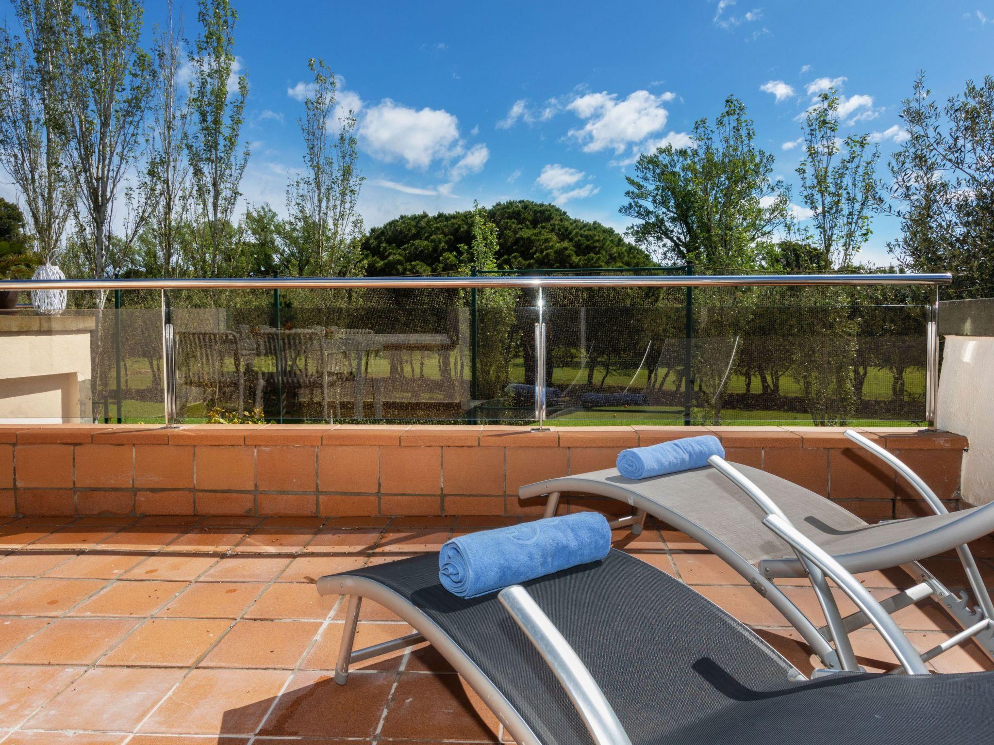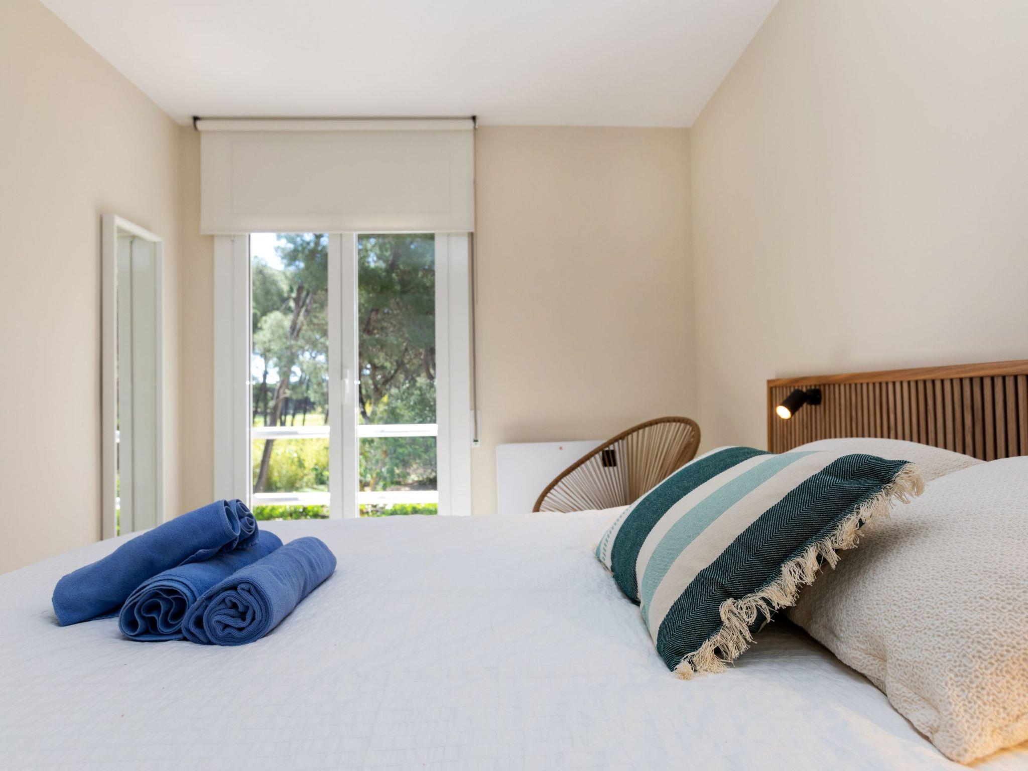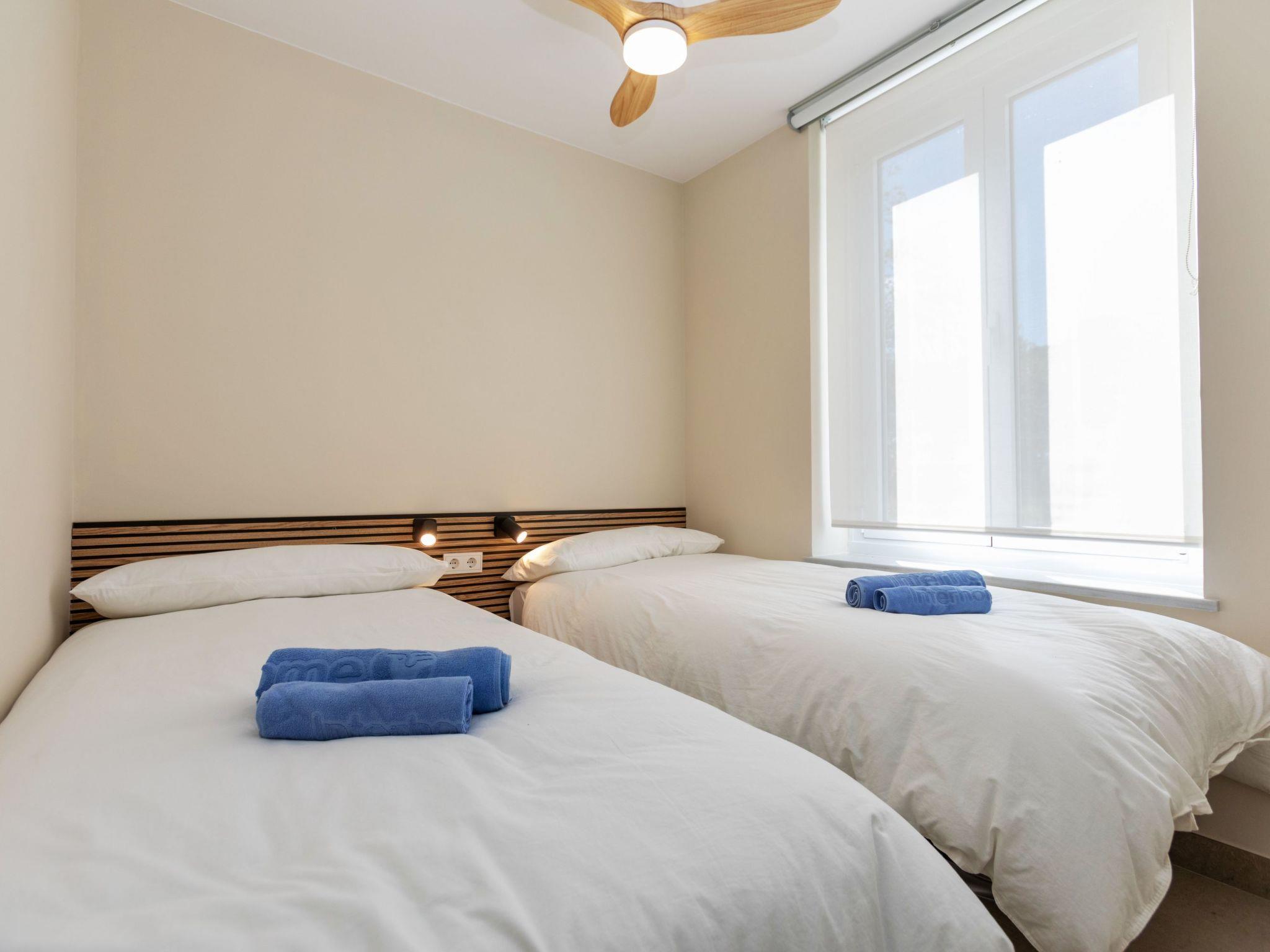 "Inpals Beach & Golf", 3-room apartment 58 m2 on 2nd floor. Renovated in 2024, practical furnishings: living/dining room with digital TV and air conditioning. Exit to the terrace. 1 room with 1 french bed (150 cm, length 200 cm). 1 room with 2 beds (90 cm, length 200 cm). Kitchen-/living room (oven, dishwasher, 4 induction hot plates, toaster, kettle, microwave, freezer, electric coffee machine). Shower/WC. Heating. Small terrace 22 m2. Terrace furniture, deck chairs (2). View of the countryside and golf course. Facilities: washing machine, iron, children's high chair, baby cot, hair dryer. Internet (WiFi, free). Parking space n 16. Please note: parking space for small car only. TV only ES. HUTG-075163 // Reg. Nr.: ESFCTU00001700700036571900000000000000HUTG-075163-385