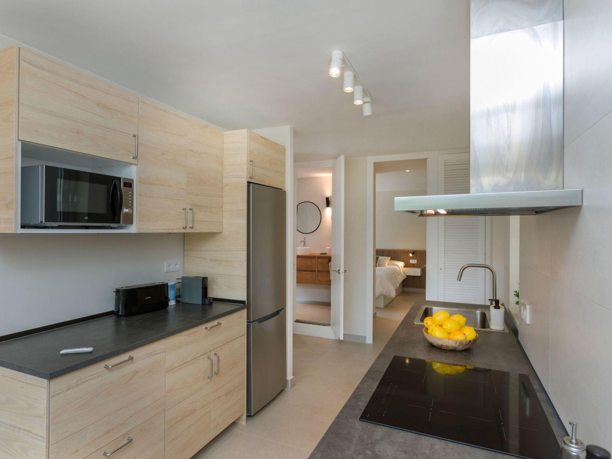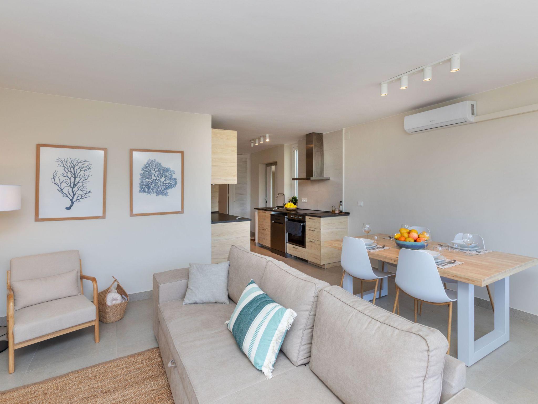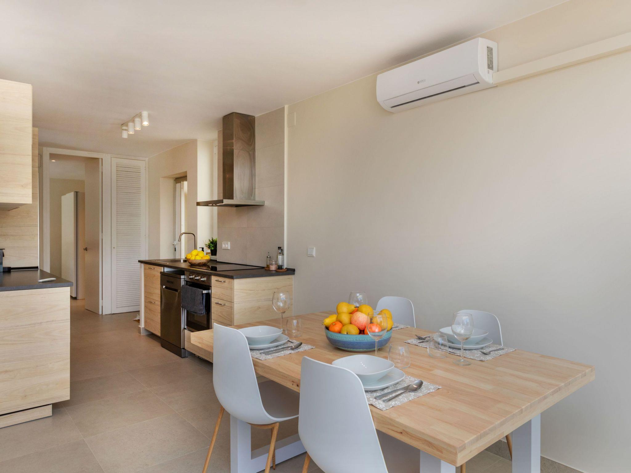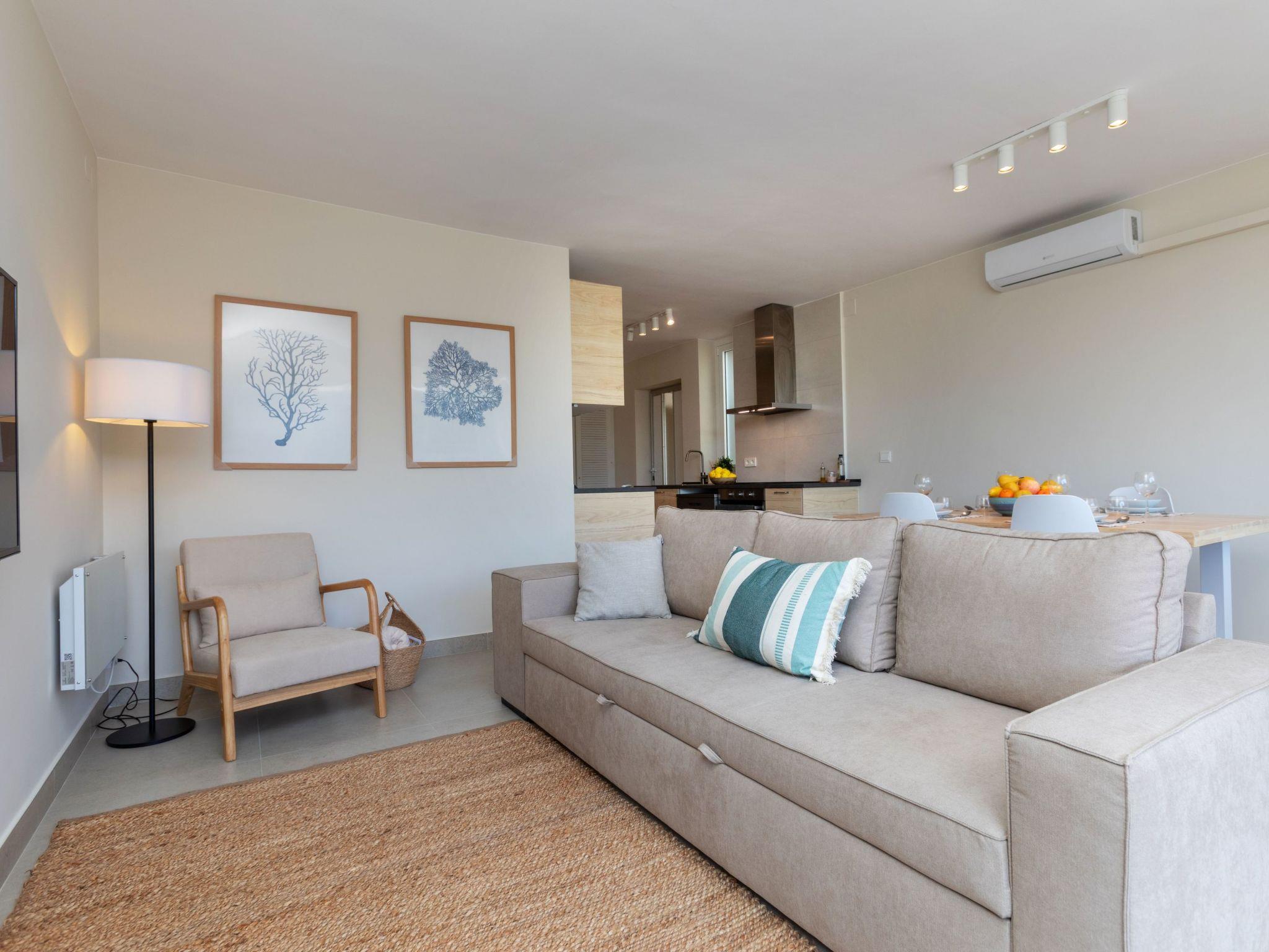 "Inpals Beach & Golf", 3-room apartment 58 m2 on 2nd floor. Renovated in 2024, practical furnishings: living/dining room with digital TV and air conditioning. Exit to the terrace. 1 room with 1 french bed (150 cm, length 200 cm). 1 room with 2 beds (90 cm, length 200 cm). Kitchen-/living room (oven, dishwasher, 4 induction hot plates, toaster, kettle, microwave, freezer, electric coffee machine). Shower/WC. Heating. Small terrace 22 m2. Terrace furniture, deck chairs (2). View of the countryside and golf course. Facilities: washing machine, iron, children's high chair, baby cot, hair dryer. Internet (WiFi, free). Parking space n 16. Please note: parking space for small car only. TV only ES. HUTG-075163 // Reg. Nr.: ESFCTU00001700700036571900000000000000HUTG-075163-385
