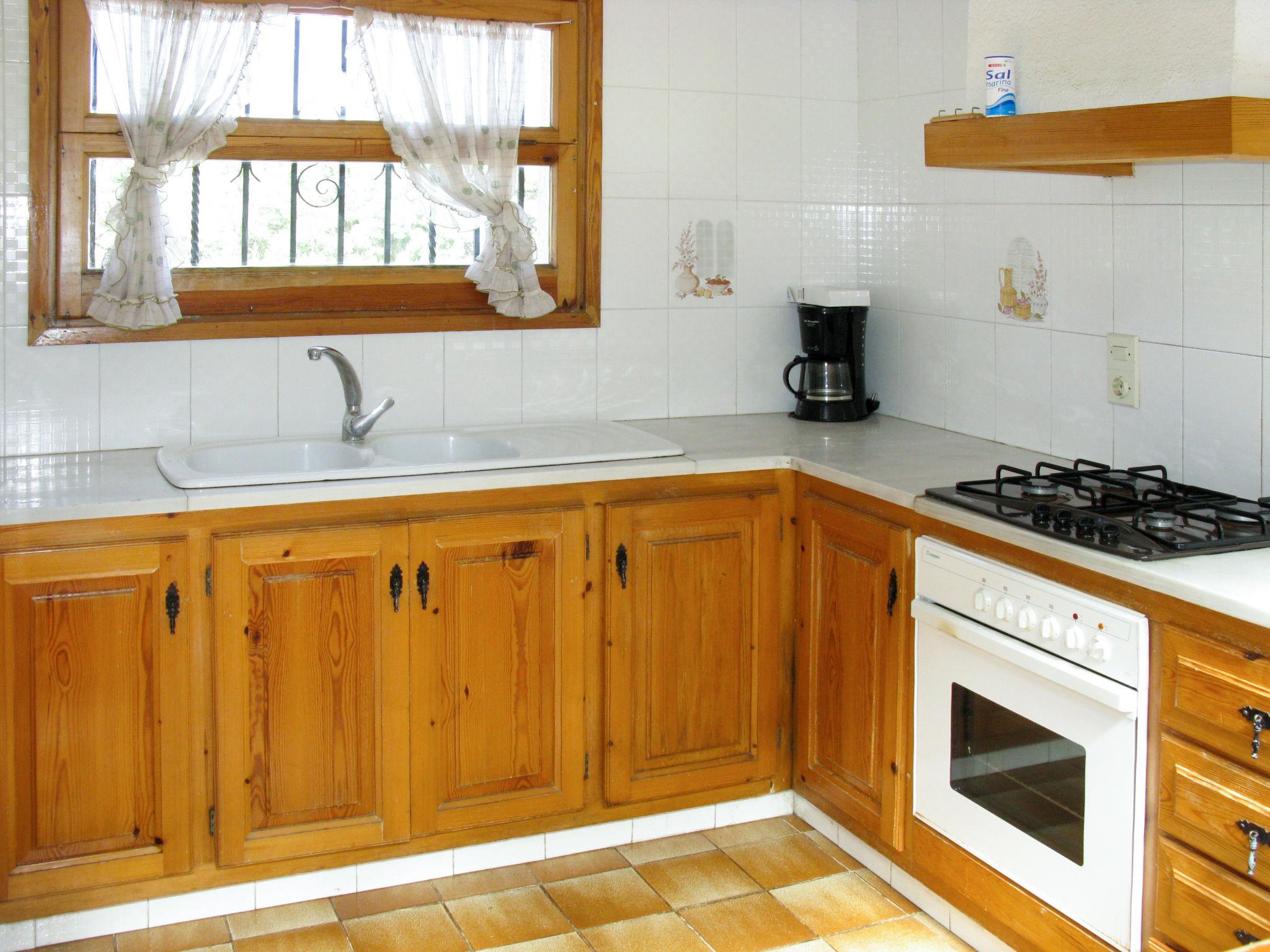 "Golf Pals", 6-room house 90 m2 on 2 levels. Cosy furnishings: living/dining room with open-hearth fireplace, dining table and satellite TV. Exit to the terrace. 1 room with 1 french bed (135 cm, length 180 cm). 1 room with 1 double bed (2 x 90 cm, length 190 cm). 1 room with 1 x 2 bunk beds (90 cm, length 190 cm). Open kitchen (4 hot plates, oven, dishwasher, 4 gas rings, toaster, electric coffee machine) with bar. Bath/WC, shower/WC, double hand-basin. Upper floor: (exterior staircase), 1 room with 1 double bed (2 x 80 cm, length 190 cm), shower/WC. No heating option. Terrace roofed. Terrace furniture, barbecue, deck chairs (6). Facilities: washing machine, baby cot. Please note: one double bedroom is outside the apartment. Maximum 2 pets/ dogs allowed. HUTG-024646 // Reg. Nr.: ESFCTU00001700700009289900000000000000HUTG-024646-233