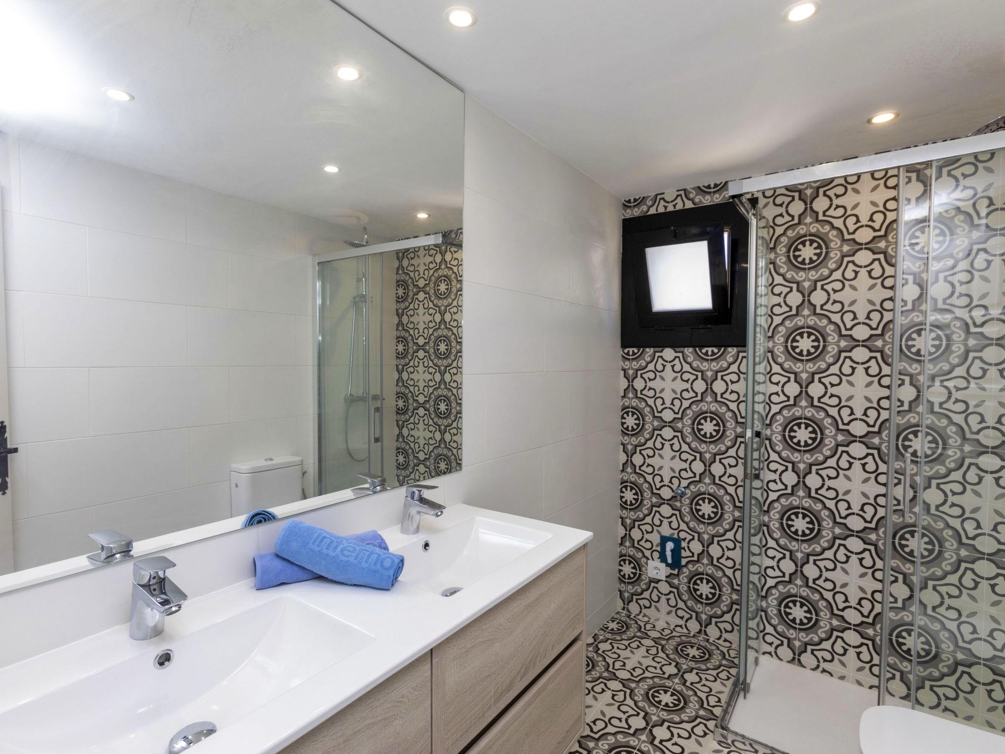 "Ducado Golf B II", 2-room apartment 50 m2 on 2nd floor. Practical furnishings: living/dining room with 1 double sofabed (1 x 140 cm, length 200 cm), dining table and digital TV. Exit to the terrace. 1 room with 1 french bed (135 cm, length 190 cm). Open kitchen (oven, dishwasher, 3 ceramic glass hob hotplates, microwave). Bath/WC. Boiler (75 litres). No heating option. Terrace. Terrace furniture. View of the swimming pool. Facilities: washing machine, iron, children's high chair, baby cot for up to 2 year olds, hair dryer. Internet (WiFi, free). Parking space n exterior. Please note: non-smokers only. TV only ES. HUTG-002899 // Reg. Nr.: ESFCTU00001700700023375900000000000000000HUTG-0028999
